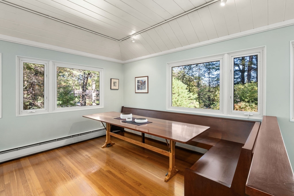 Rare opportunity to own a stunning contemporary home with a spectacular pool, nestled in one of Weston’s premier neighborhoods near the Weston Golf Club and town center. Thoughtfully renovated with exquisite details throughout, this 5-bedroom, 4-bathroom home is perfect for entertaining. The living room features a striking fireplace, while the elegant dining room boasts custom built-ins and a 19th-century Japanese warehouse door. The gourmet kitchen includes an Aga stove, center island, and French doors that open to a sunroom. A cozy family room off the kitchen offers built-in bookshelves and a gas fireplace. The lower level includes a spacious playroom with fireplace and picture window, plus a private guest suite with full bath, walk-in closet, and second kitchen—ideal for extended stays. Privately sited on over an acre, this exceptional home offers beauty, comfort, and sophistication for the most discerning buyer.
