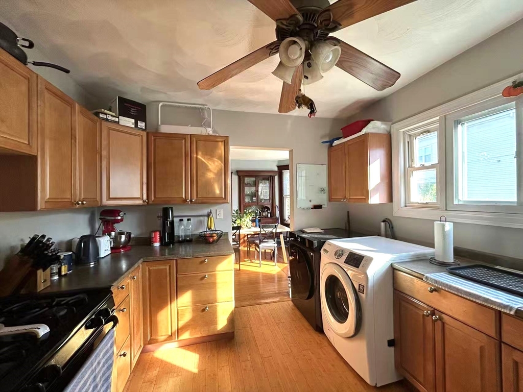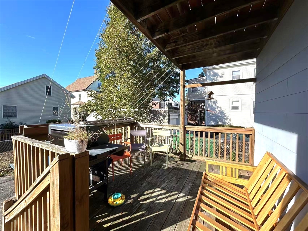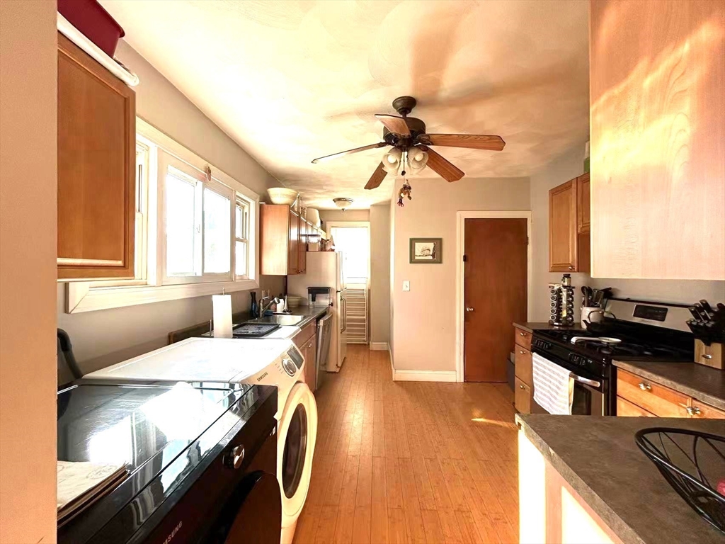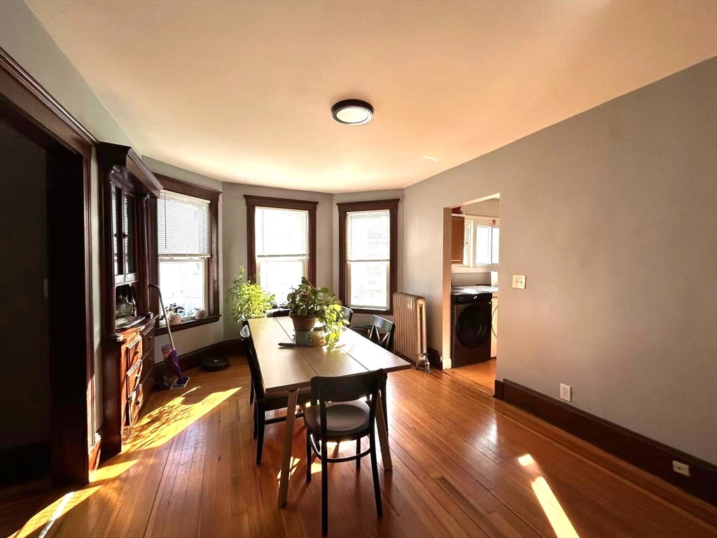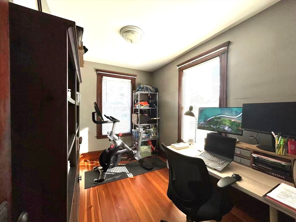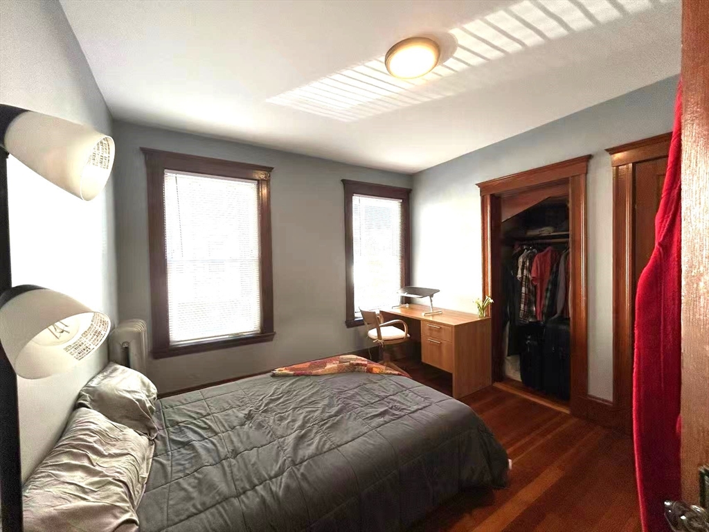 A spacious renovated 2-bedroom apartment with an office, a dining room, a living room, 1 full bathroom and a kitchen located on the first floor in a two-family house in Medford for rent. Kitchen features cabinets, countertop and SS appliances. Hardwood floor throughout. Free Laundry in the unit. A front enclosed porch and a patio just outside of backdoor. Off-street parking or Driveway parking. Good location. Close to 93 Highway, public transportation. Walking distance to restaurants, stores, parks. Tenants need to take care of lawn and snow removal with 2nd floor tenants. First month and security deposit are required. No smokers. Looking for mature/responsible tenant(s). Background, credit check, and income verification required. Available 1/1/2026.