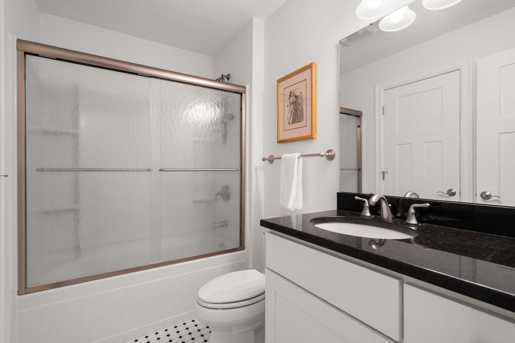 Turnkey unit featuring one of the community’s most desirable floor plans with sought-after one-floor living.The main level offers a dramatic vaulted great room with gas fireplace, abundant natural light, and custom built-ins, a formal dining room with French slider to a lovely deck, and a bright kitchen with stainless-steel appliances.The first-floor primary suite includes an ensuite bath, organized walk-in closet, and custom built-in cabinetry, while the private office showcases detailed millwork and additional built-ins.Upstairs features a loft area, ensuite bedroom, and an additional bonus room ideal for guests or a second office.The finished lower level with luxury vinyl flooring and full bath provides space for a media room, gym, or extra living area, plus ample storage in the unfinished basement and attic.Quietly set back from Old Sudbury Road, close to the town center, rail trail, and new senior center, this home offers easy, low-maintenance living in a central Wayland location.