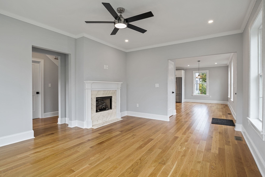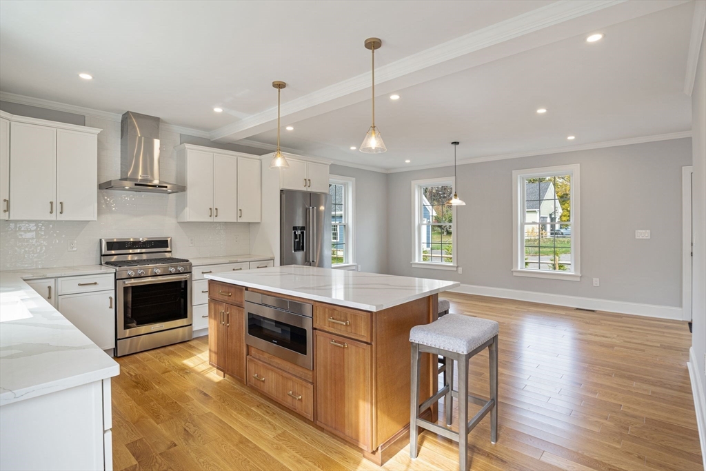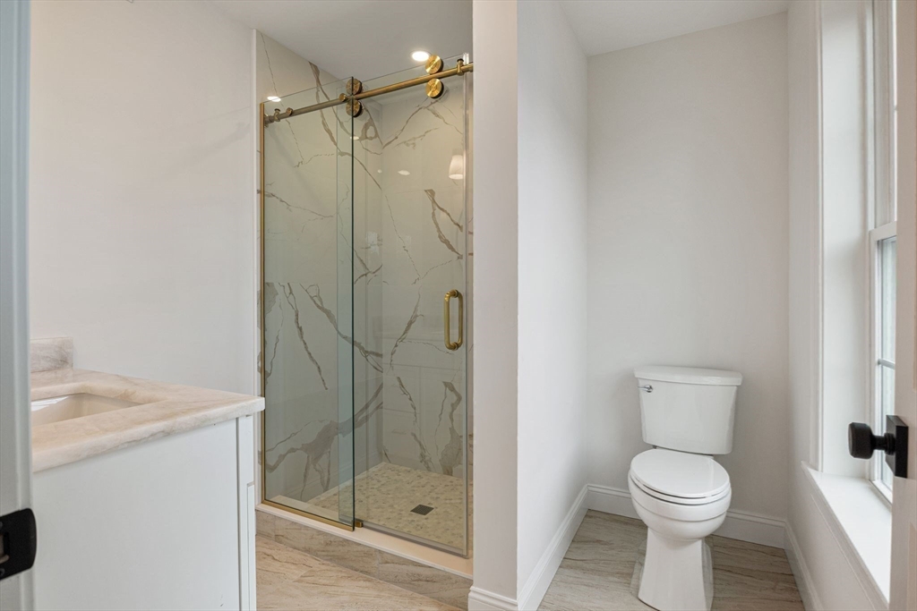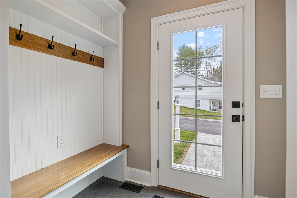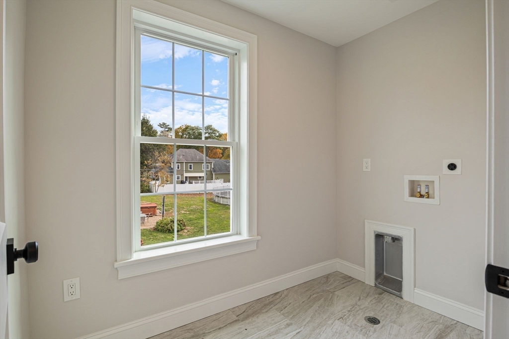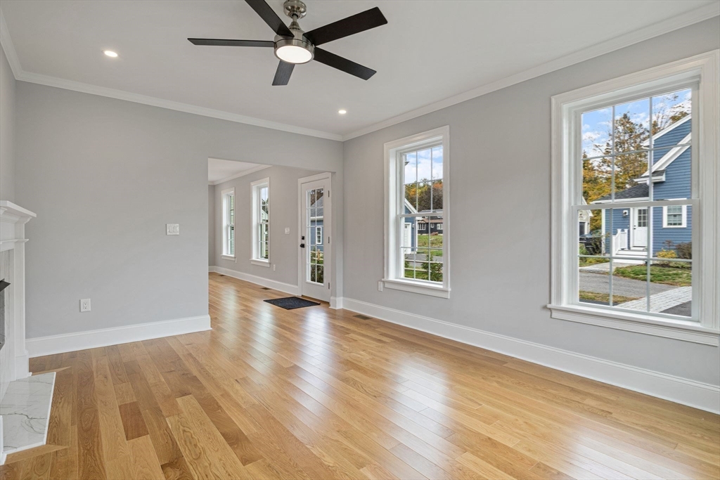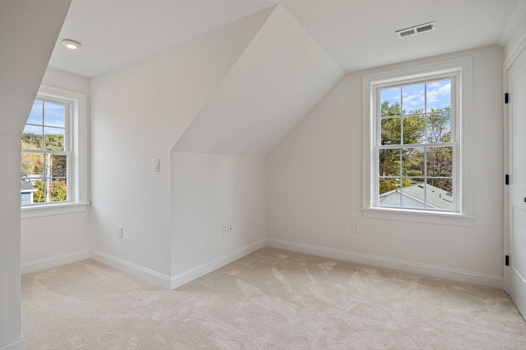 Brand-new 2,274 sqft single-family condex nestled at the end of a quiet street. This 4-bed, 3.5-bath home offers luxury selections combined with flexible living spaces. Enter through the mudroom with custom built-ins into the living room with great natural light and cozy fireplace. The modern kitchen & dining offers an oversized island, quartz countertops & tile backsplash w/ access to the oversized deck. Up the hardwood stairs the primary suite features a spa-like bath with soaking tub, tile shower & double vanity. The 2nd floor also features another bedroom with en-suite bath & tile shower and a separate laundry room. The 3rd floor has two bedrooms and a full bath. The walkout lower level provides expansion potential with walkout slider access to the patio and yard. 1 car detached garage. This home blends timeless style with modern comfort. Enjoy peaceful surroundings while less than 0.5 miles to Amesbury Town Park and schools & 1 mile to vibrant downtown restaurants and shops.