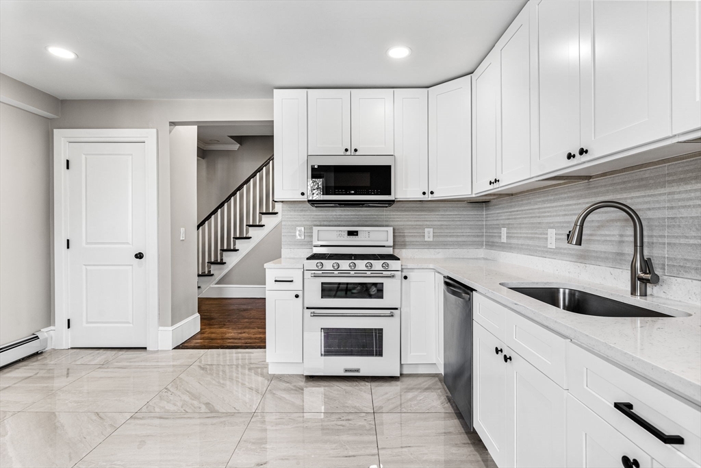 Welcome to this beautifully renovated, turn-key 3-bedroom, 2-bathroom townhome! Step into a bright and inviting space featuring a stunning white kitchen with stainless steel appliances and gleaming hardwood floors, all seamlessly open to the spacious family room and optional dining area—perfect for entertaining or everyday living. Upstairs, enjoy a thoughtfully designed layout with a private primary suite, two additional generously sized bedrooms, and two full bathrooms. Additional highlights include ample storage, three deeded parking spaces, efficient gas heating, and a convenient location close to all major routes.This move-in ready home truly has it all—don’t miss your chance to make it yours!