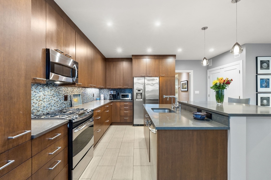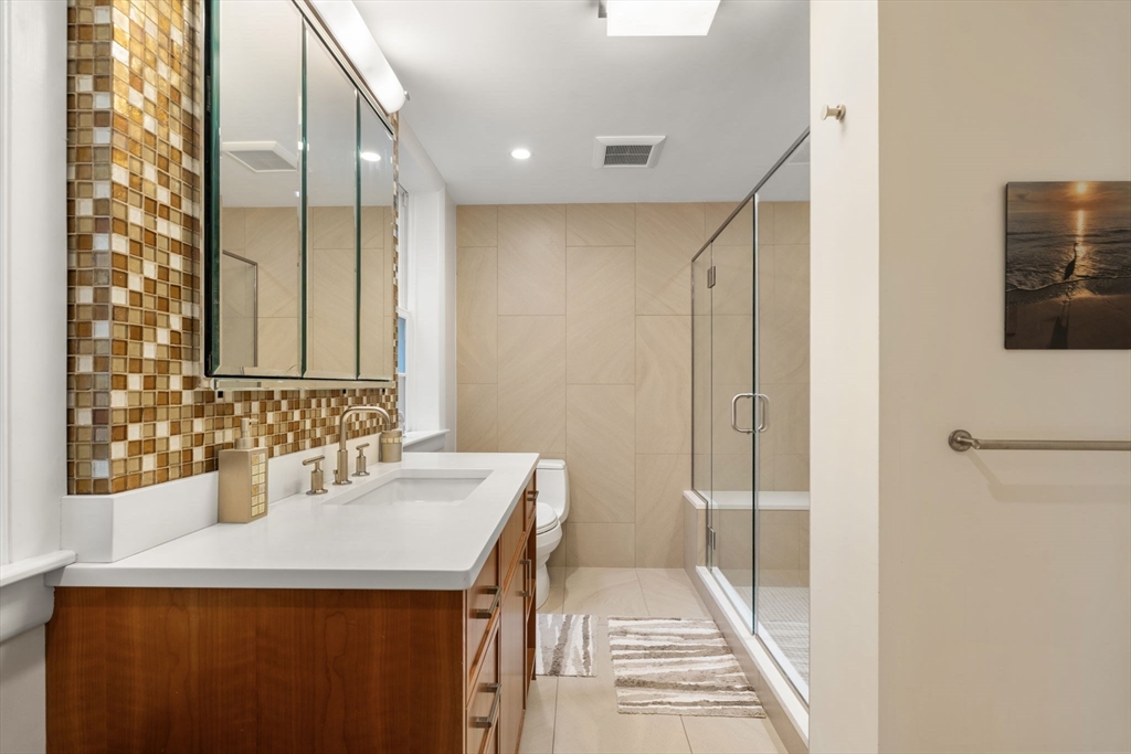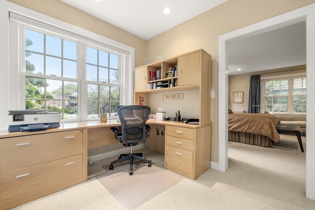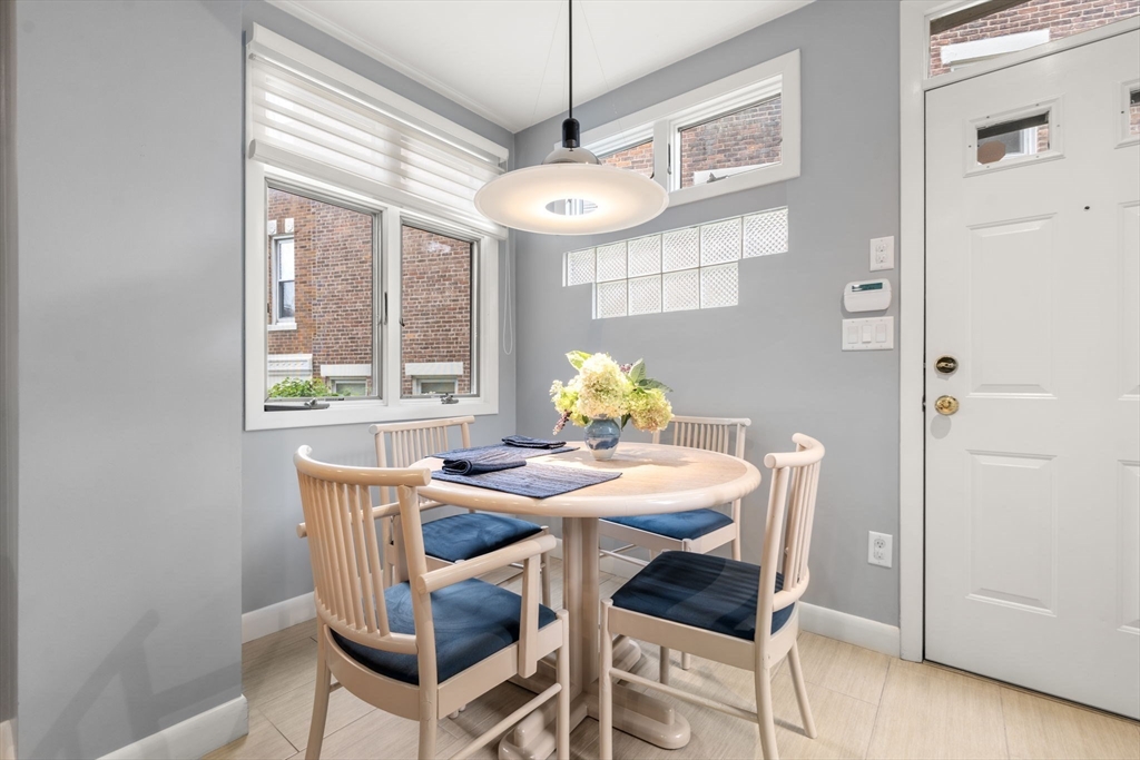 In the heart of Coolidge Corner, this elegant 3-bedroom, 2-bath residence blends timeless architecture with modern comfort. A gracious foyer leads to a sun-filled living and dining area with soaring ceilings, custom built-ins, and gleaming hardwoods—perfect for refined entertaining. The expansive eat-in kitchen offers a welcoming start to the day, while three spacious bedrooms include a serene primary suite with a sleek glass-enclosed rain shower. A versatile home office sits nearby. Step outside to a landscaped common patio oasis, ideal for evening relaxation. Additional features include central air, in-unit laundry, exclusive storage, and off-street parking. With unmatched access to Coolidge Corner’s shops and dining, the Longwood Medical Area, and both the C & D lines, this home offers the best of Brookline living. Seller open to offers with buyer concessions.