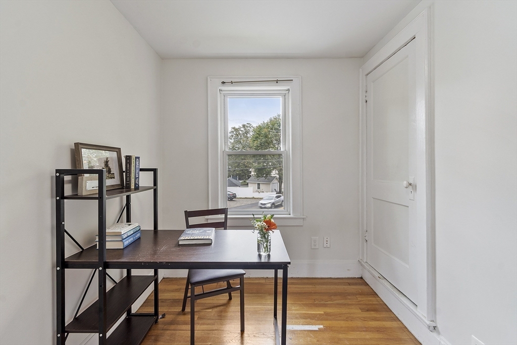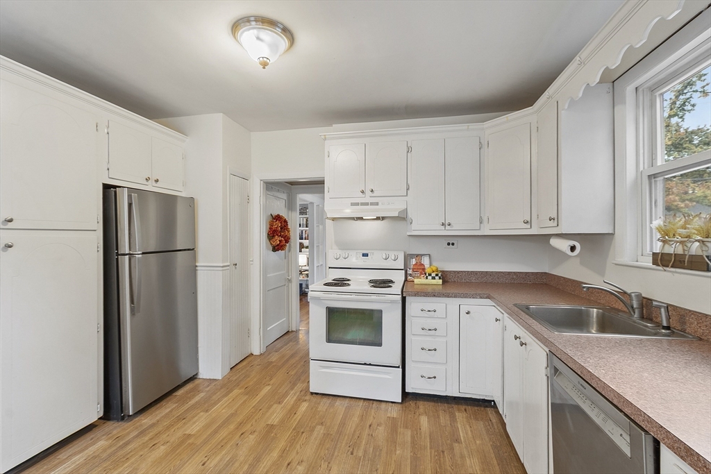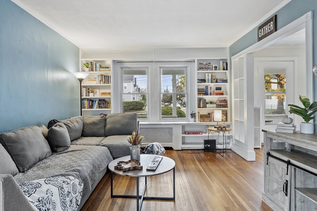 Charming four-bedroom Colonial in a convenient Lowell location! This well-maintained home offers timeless character with mostly hardwood floors and classic details throughout. The spacious living room features a built-in, perfect for books or display, and flows nicely into a bright dining area and kitchen. The home includes 1.5 baths, a walk-up attic providing excellent storage or potential expansion space, and a large basement ideal for hobbies or a workshop. Enjoy outdoor living on the inviting front porch or the private back patio. A two-car detached garage and newer siding add great curb appeal and practicality. Conveniently located near shopping, parks, and commuter routes.