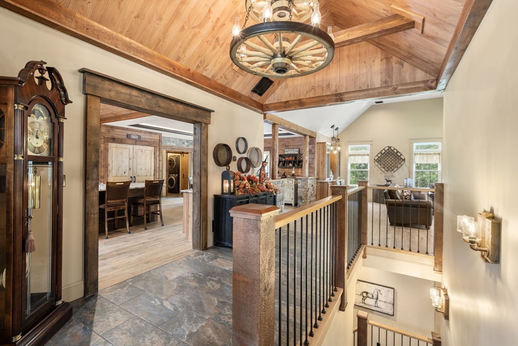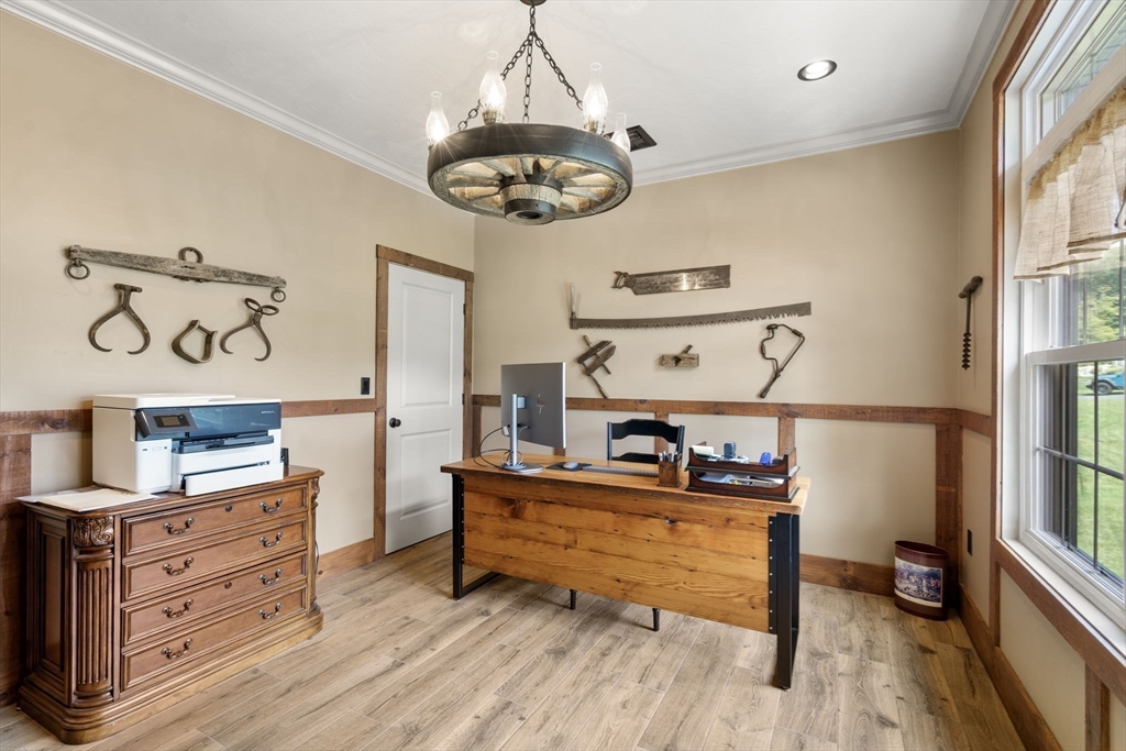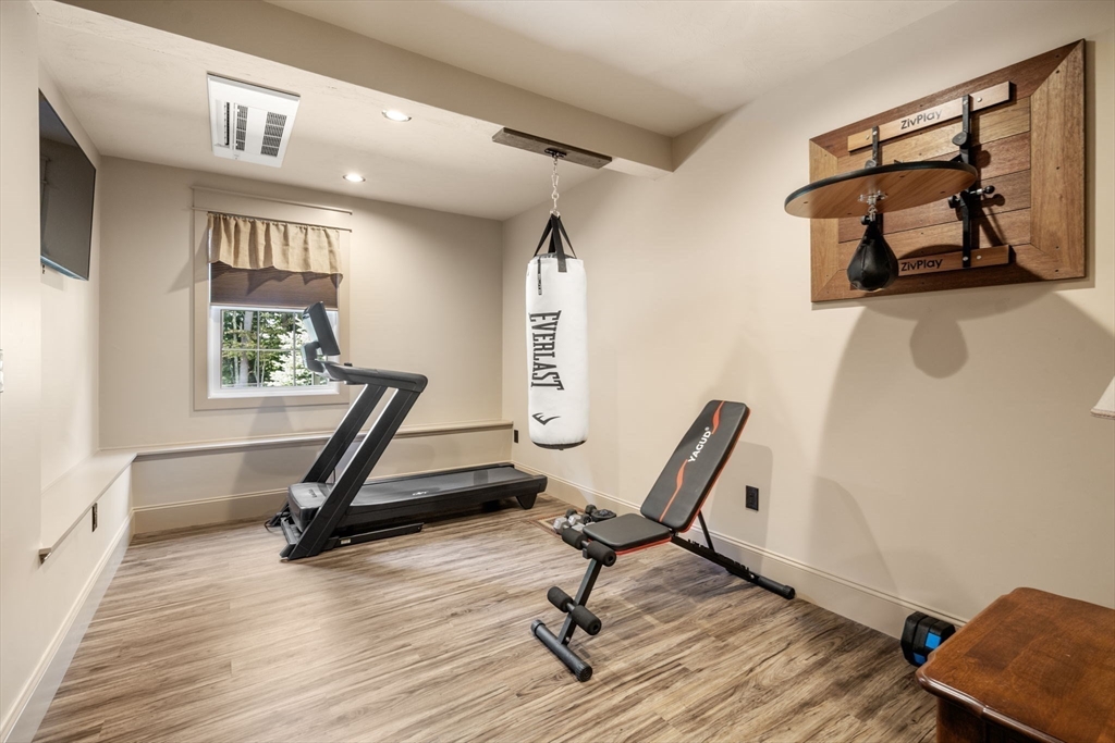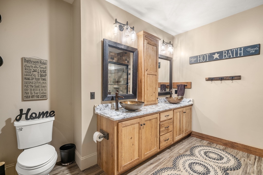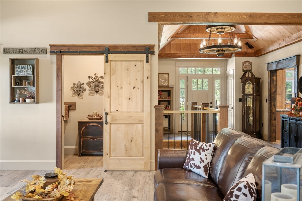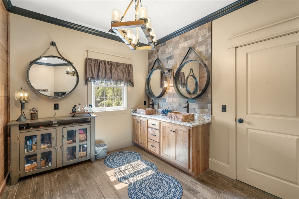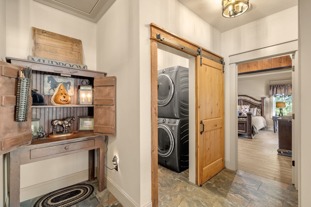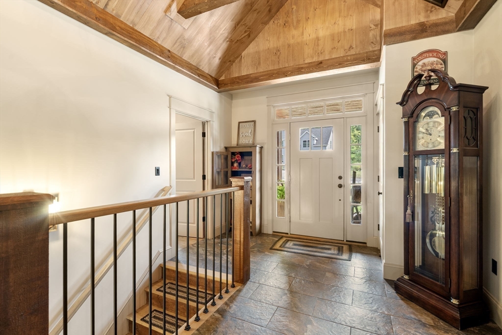Step into this beautifully designed Craftsman-inspired colonial, showcasing over 4,100 sq ft of expansive, light-filled living space. Rich character flows throughout, from wood-like tile floors to a gourmet kitchen outfitted with a statement island and premium appliances. The airy living room boasts a dramatic fireplace and lofty ceilings, creating a warm and welcoming ambiance. Entertaining is effortless with a seamless layout connecting the dining area and main gathering spaces. The first-floor primary suite offers a serene retreat with dual walk-in closets and a spa-like bath featuring a walk-in shower and elegant double vanity. A versatile main-level office doubles as a fourth bedroom. The finished lower level feels like an extension of the home, complete with large windows and a sliding door, a generous family room with wet bar, dining nook, two more bedrooms, and a full bath. A dual-level garage adds convenience, while the covered patio opens to a private, fenced backyard oasis.