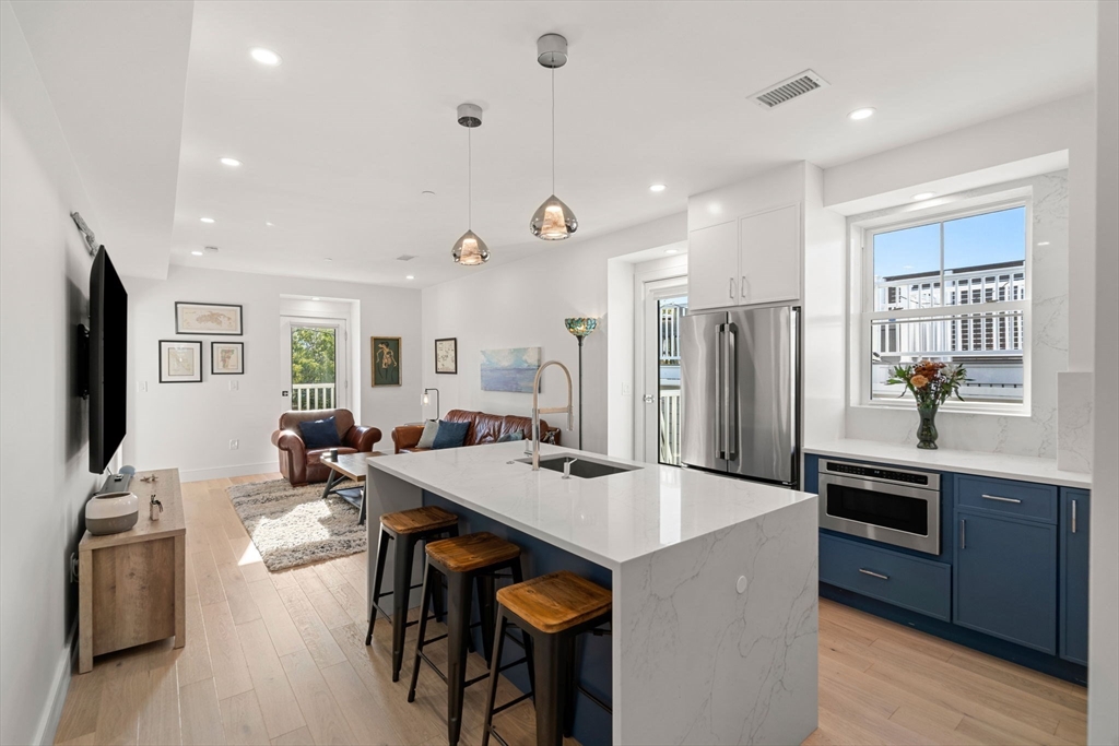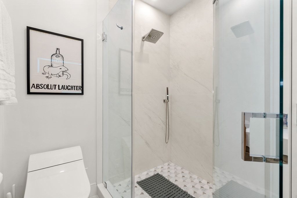 Luxury Penthouse living in East Boston’s Hottest Neighborhood with panoramic views of Boston Harbor and city skyline. Welcome to Penthouse 1 at 106 Webster Street, a truly one of a kind stunning 3 bedroom, 2 bath luxury residence nestled in the heart of Jeffries Point. Step into modern elegance with Porcelanosa designer flooring, custom Japanese bidet toilets in every bathroom, a private elevator offering seamless access from the basement all the way to your deeded private roof deck + common roof deck, private wet bar, Deeded Garage parking with EV charger hookup, high end gym in the basement, and deeded storage. The thoughtfully designed open-concept floor plan features a chef’s kitchen with white quartz countertops, & a spacious living area bathed in natural light. Walking distance to Maverick Train station, Piers park, the water taxi, and local restaurants makes this unit a commuters dream. Be sure to stop by the open house or schedule a private showing as this one won't last!