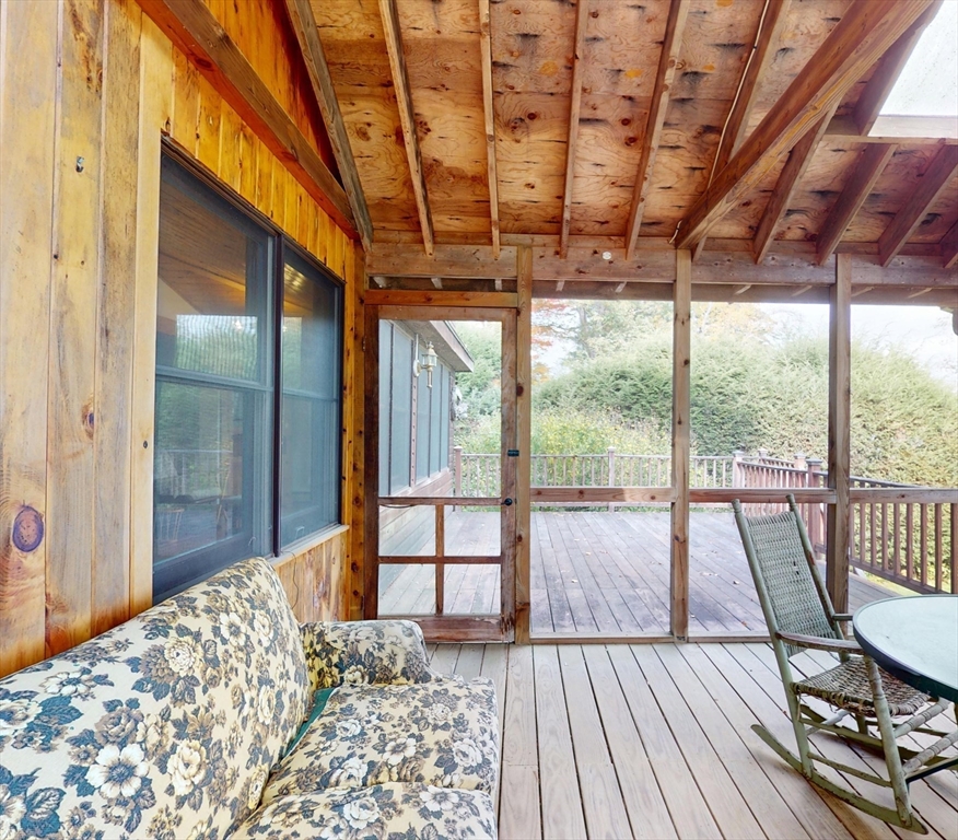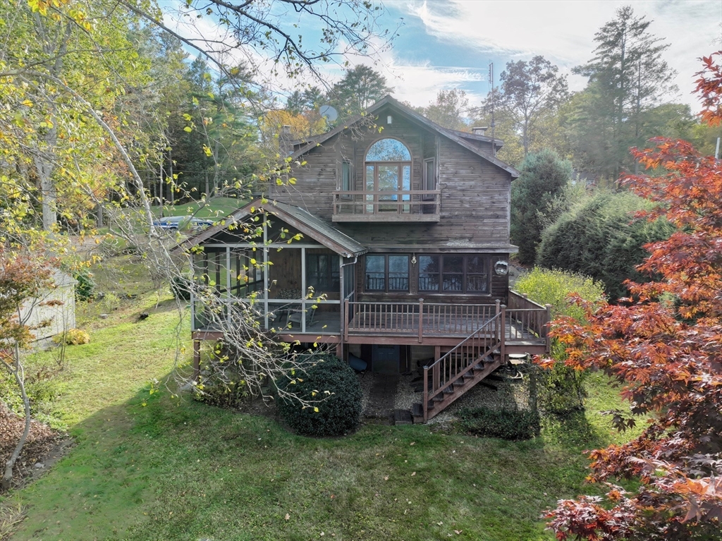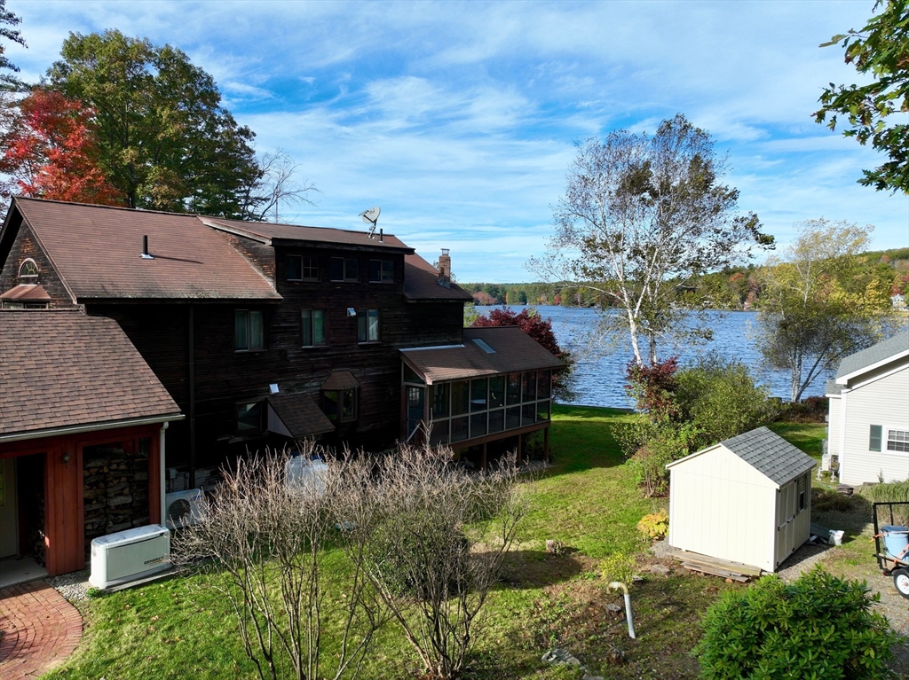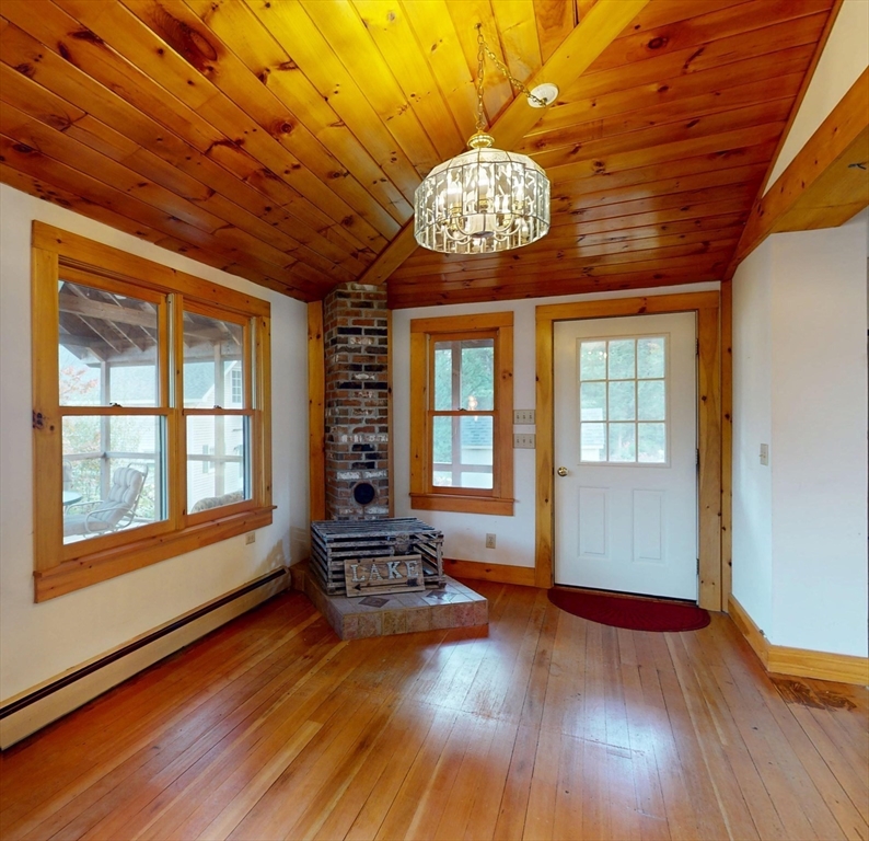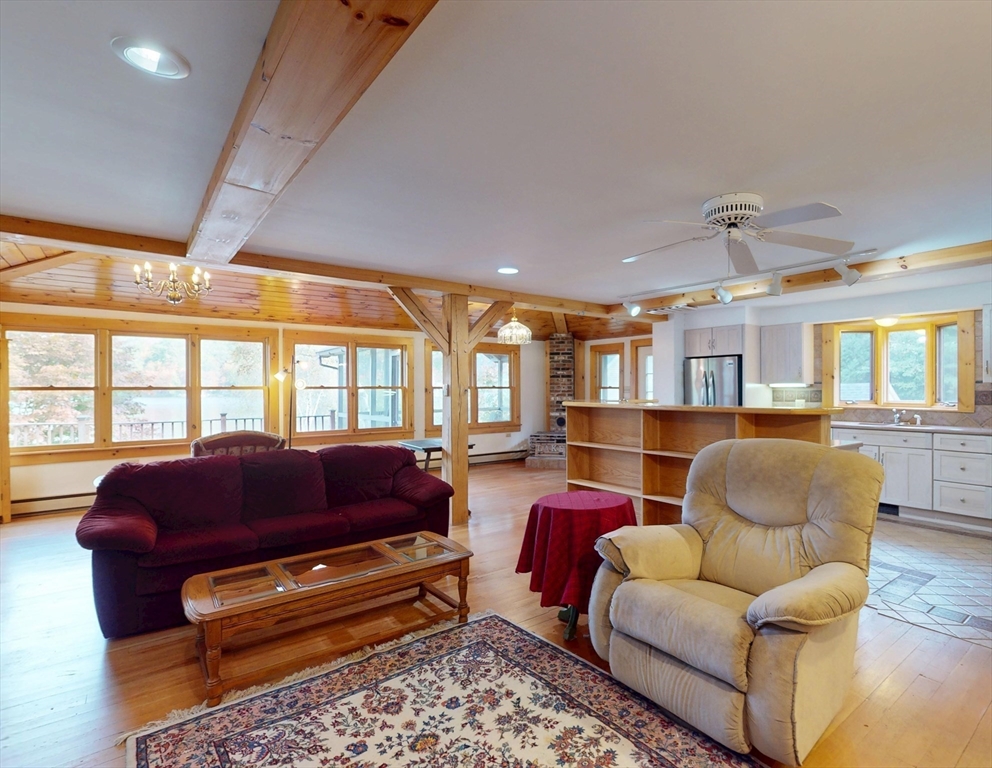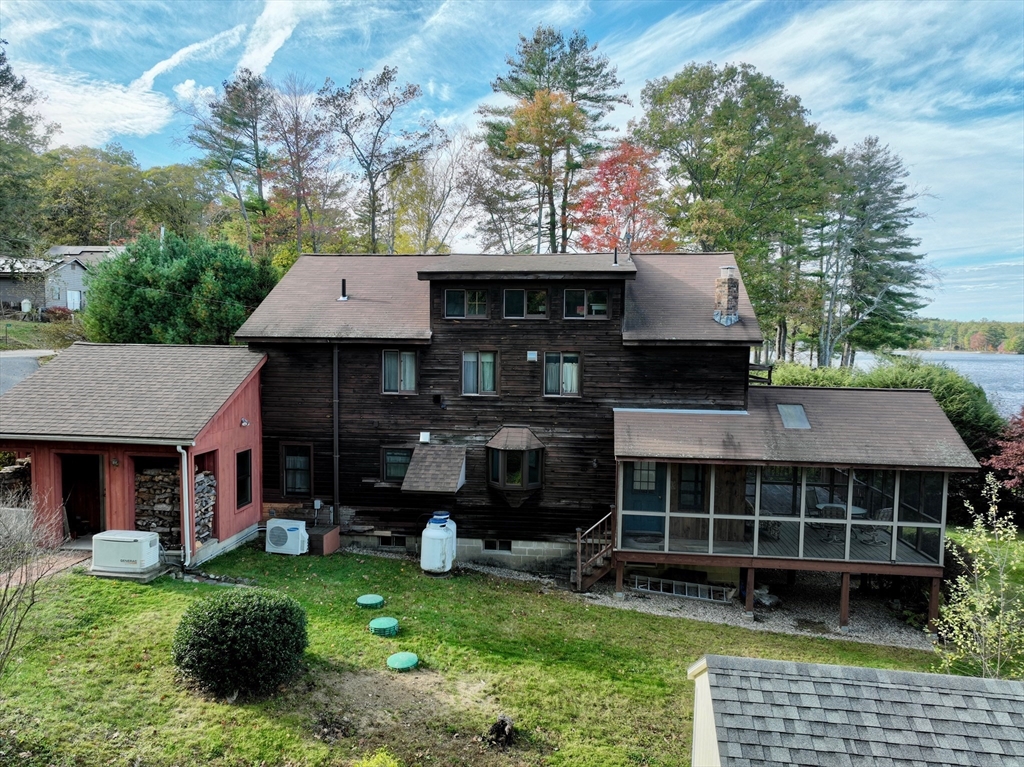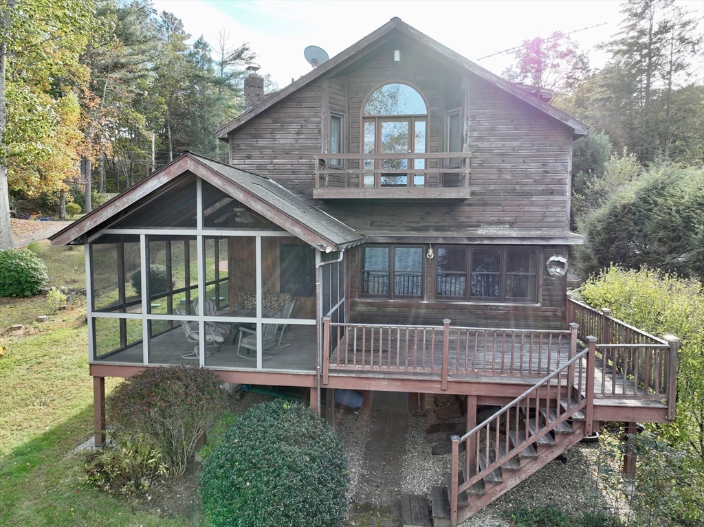 Life by the lake is always better. Enjoying the great outdoors is easy here with decks, a fully screened porch, your own lake access and space for gardens. Just minutes from beautiful conservation land with miles of hiking or biking trails. This home has a gracious entry and upon entering you will notice the open concept first floor with kitchen, living room and dining room all having a spectacular view of the water. On the colder months you can be kept cozy with the lovely wood stove. The layout is versatile with a first-floor bedroom and full bath and laundry. The second floor has an open feel with spaces available for an office, sitting room or library. The main suite has a walk-in closet and a private balcony overlooking the lake. The third floor, previously used as a painting studio, can also be another bedroom. This sweet home is ready for its next chapter, so come see everything it has to offer.