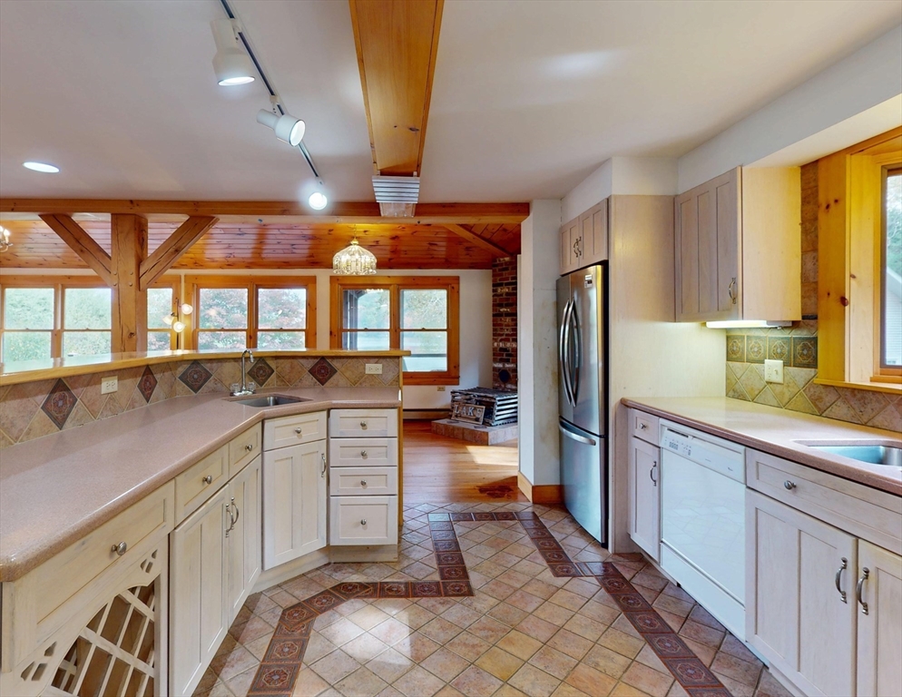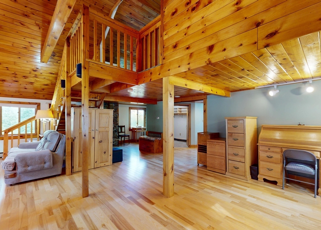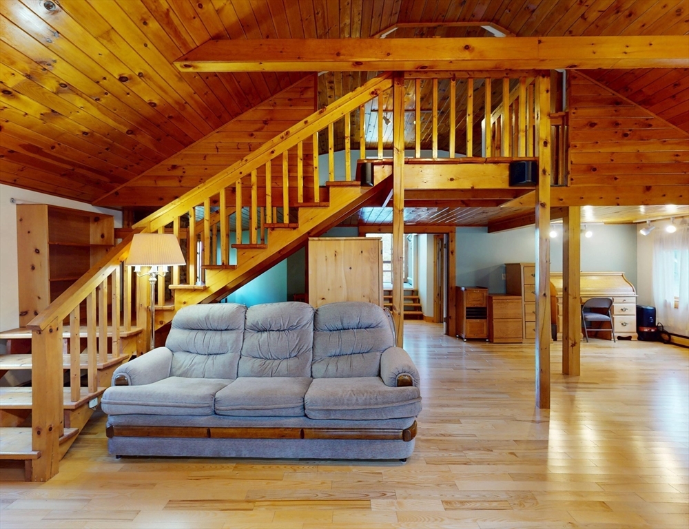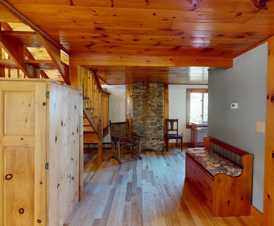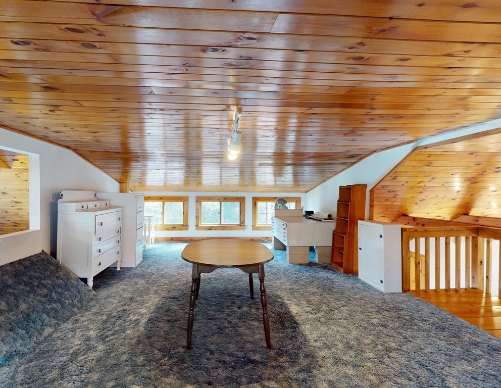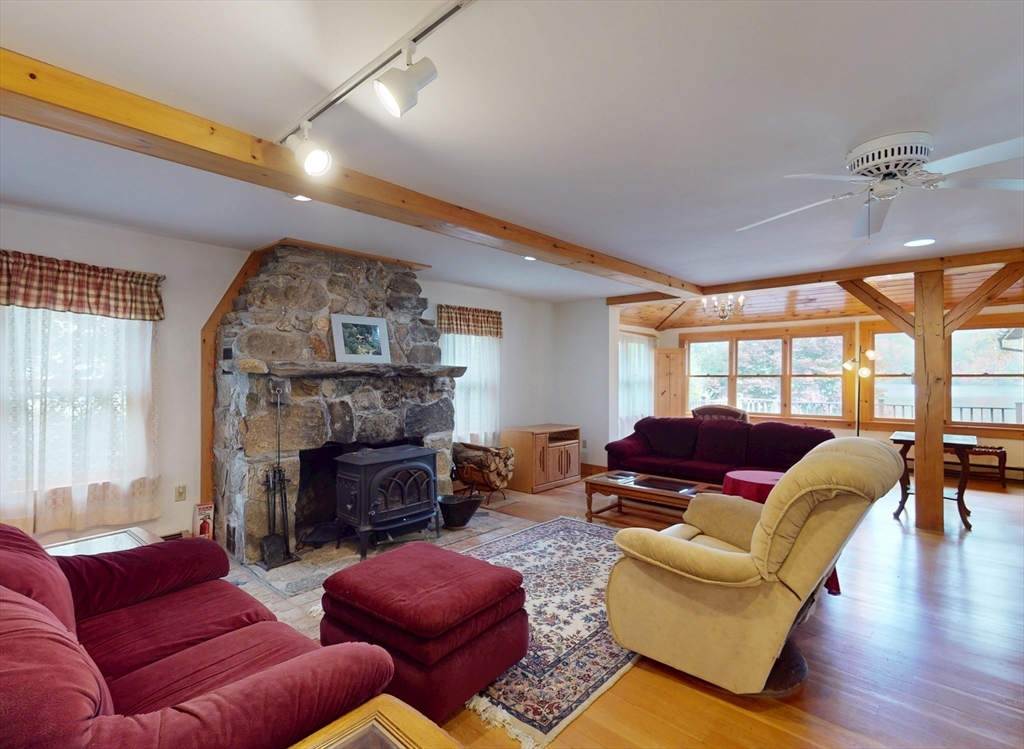 Life by the lake is always better. Enjoying the great outdoors is easy here with decks, a fully screened porch, your own lake access and space for gardens. Just minutes from beautiful conservation land with miles of hiking or biking trails. This home has a gracious entry and upon entering you will notice the open concept first floor with kitchen, living room and dining room all having a spectacular view of the water. On the colder months you can be kept cozy with the lovely wood stove. The layout is versatile with a first-floor bedroom and full bath and laundry. The second floor has an open feel with spaces available for an office, sitting room or library. The main suite has a walk-in closet and a private balcony overlooking the lake. The third floor, previously used as a painting studio, can also be another bedroom. This sweet home is ready for its next chapter, so come see everything it has to offer.