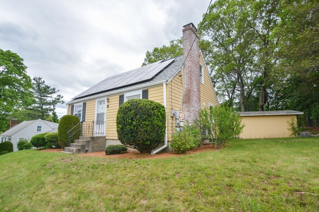 Welcome to this charming and inviting Cape nestled on a quiet street in a desirable Ashland neighborhood. Enter through the sunroom into a beautifully renovated kitchen (2023), opened up to the dining room ideal for entertaining, spacious living room with fireplace, and the option of a first-floor bedroom or home office, plus a full bath. Upstairs offers two generous bedrooms and another full bathroom recently remodeled (2024). Hardwood floors run throughout, with a finished basement adding extra space. Enjoy a private backyard with a storage shed, perfect for outdoor fun. Many other major updates such as mini splits (2024) for heating and cooling, new windows throughout (2024), and chimney repointed and capped (2023). Conveniently located near Ashland and Framingham commuter rails, Routes 9, 495, and the Pike, with quick access to parks, trails, shopping, and dining. Solar panels keep electric bills low – see agent for details!