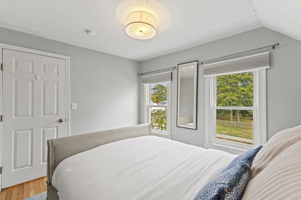 Welcome to coastal living at its finest in the heart of Brant Rock village, where the spirit of community meets the beauty of the sea. Steps from the beach & local dining, this home invites you to savor morning coffee with ocean breezes & sunset strolls by the shore Set back from the main road, the property features a private driveway & a fully fenced yard with a spacious shed for all your storage needs. Inside, the open floor plan includes an updated kitchen with granite countertops, stainless steel appliances, a center island, & abundant cabinet space. The kitchen flows into the dining area & a cozy sitting room with a fireplace, plus a separate living room for added comfort. Upstairs, you’ll find 2 bedrooms & a spacious full bath with a jacuzzi tub, walk-in shower, & laundry. The primary suite features a tray ceiling, walk-in closet, and en suite bath. A spiral staircase leads to a third-floor bonus room with cathedral ceilings and a private deck- offering panoramic views.