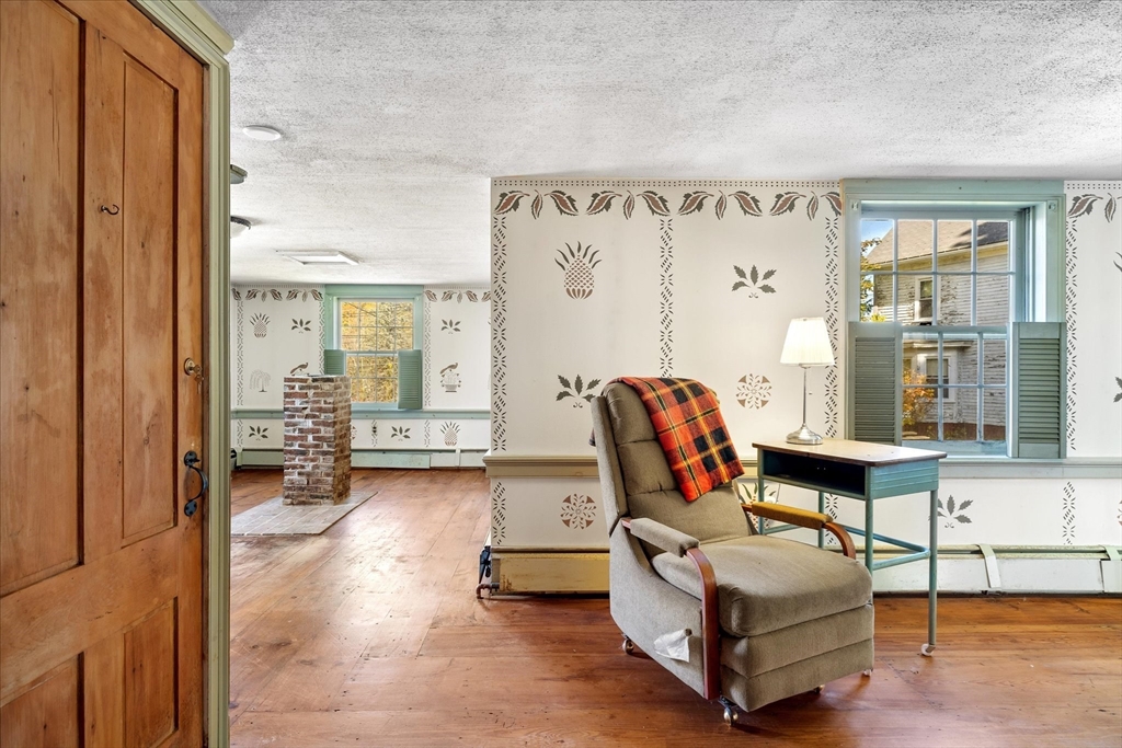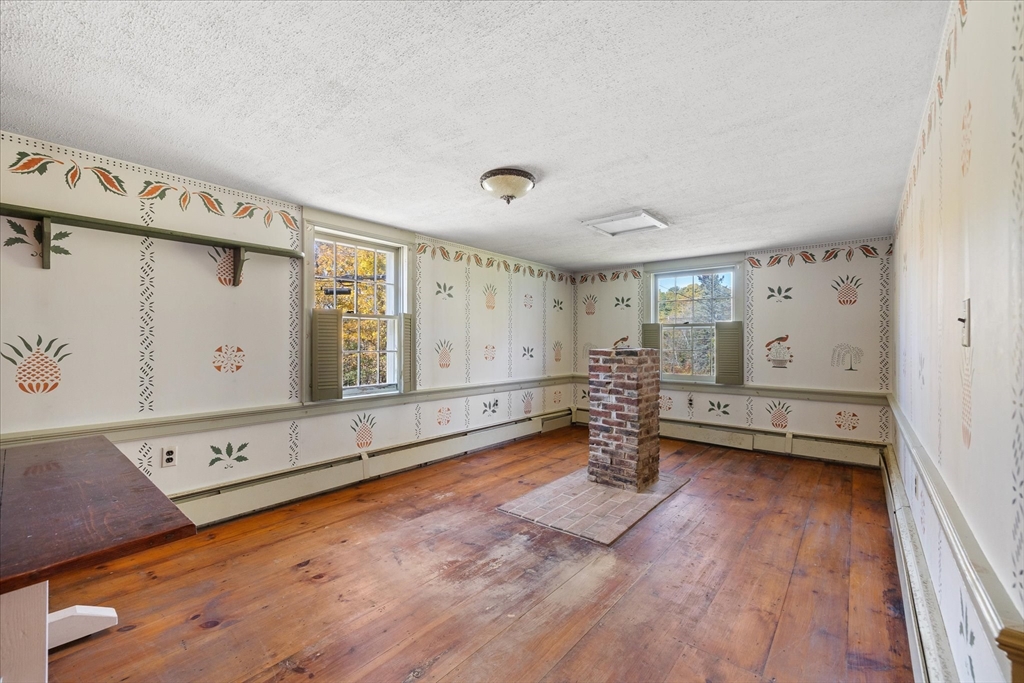 Step back in time with this 1790 New England home offering over 3,000 sq ft of warmth, character, and potential. Set on a level 1.1-acre lot with fruit trees and a storage shed, the property combines historic charm with a convenient location near Route 20, shopping, and highway access. Inside, you’ll find wide-plank floors, a spacious first-floor layout with the primary bedroom, full bath, and additional rooms ideal for an office, guests, pantry, etc. Upstairs are two bedrooms sharing a Jack-and-Jill closet, a bonus room, a half bath, and charming details like a built-in cabinet and fireplace. A home filled with timeless appeal and endless possibilities.Please note: No laundry hook-up, no oven, new oil tank, and the property is located close to the road.