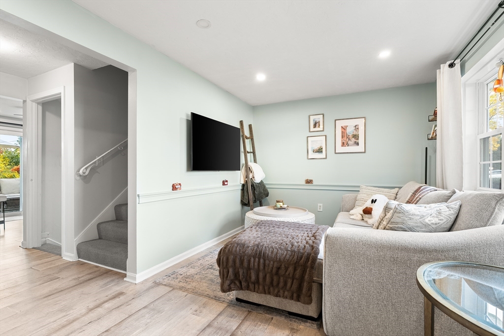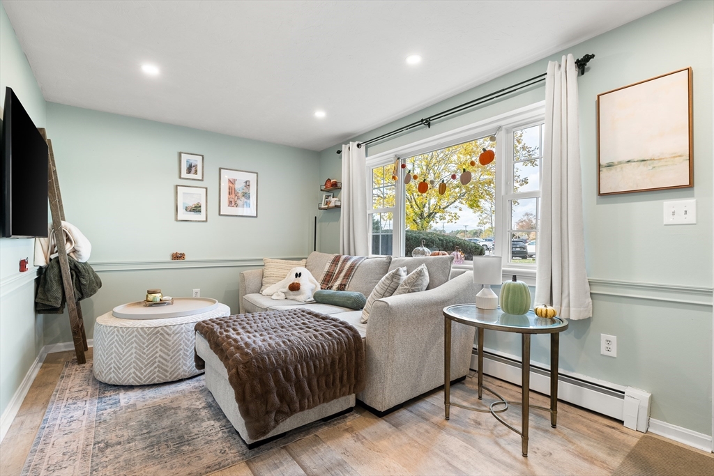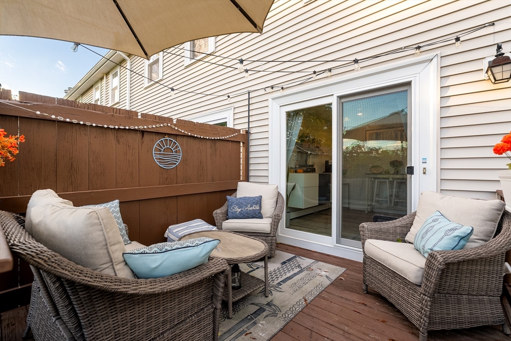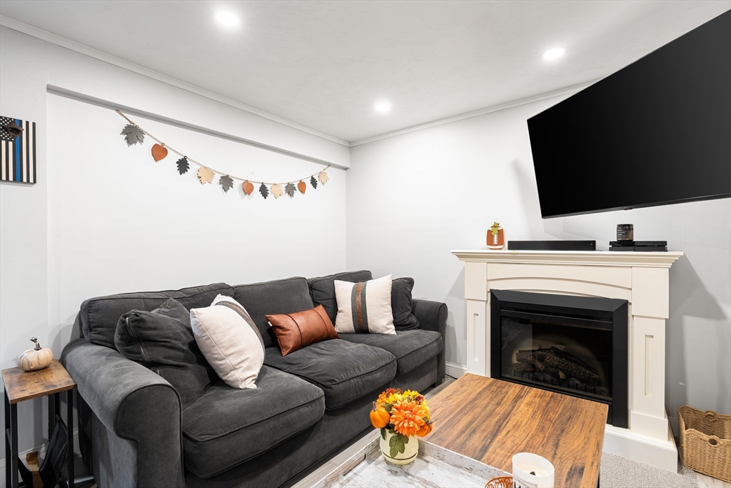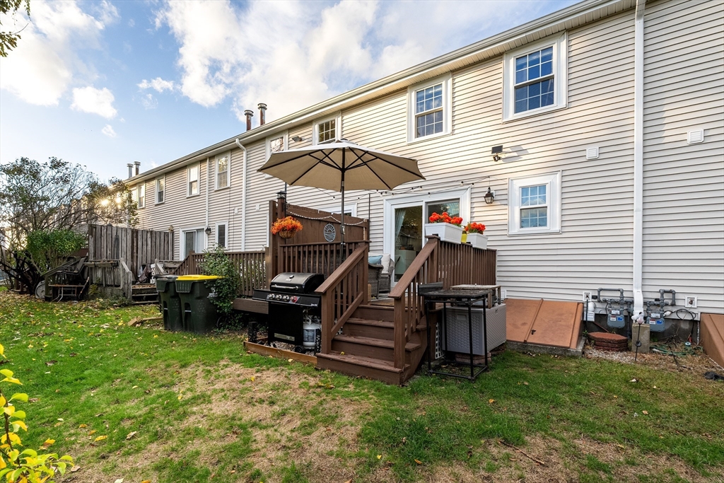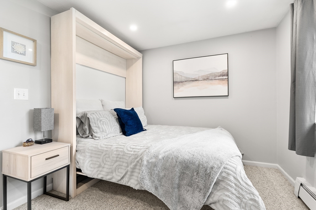 Welcome to Halifax Meadow Condominiums. This move-in-ready 2 bed, 1.5 bath home has been beautifully refreshed with new paint, new rugs, new toilets, new lighting and ceiling fans. Plus a new whole-house water filtration system and water pump, along with a new furnace! The kitchen comes with stainless steel appliances and a floor plan opening right onto the private deck, a great space for grilling or enjoying morning coffee. The finished basement features another living space perfect for relaxing or entertaining, while the unfinished side offers ample storage and in-unit laundry. Upstairs the built-in Murphy bed frame will stay, adding both style and function. With one assigned parking space, plenty of guest parking, an in-ground pool, clubhouse, and a short drive to the commuter rail, this home offers the perfect blend of comfort, practicality, and location. Simply unpack and enjoy your life!