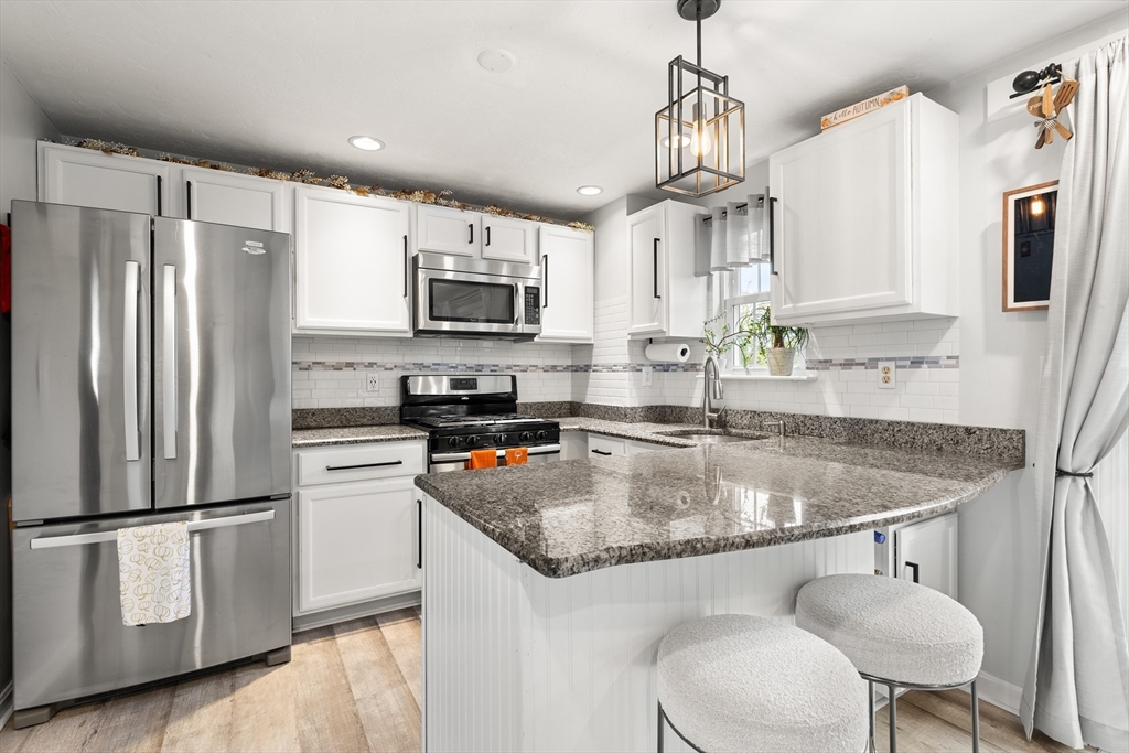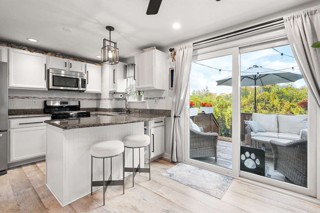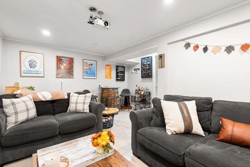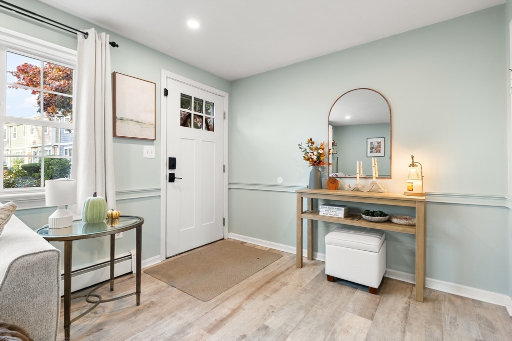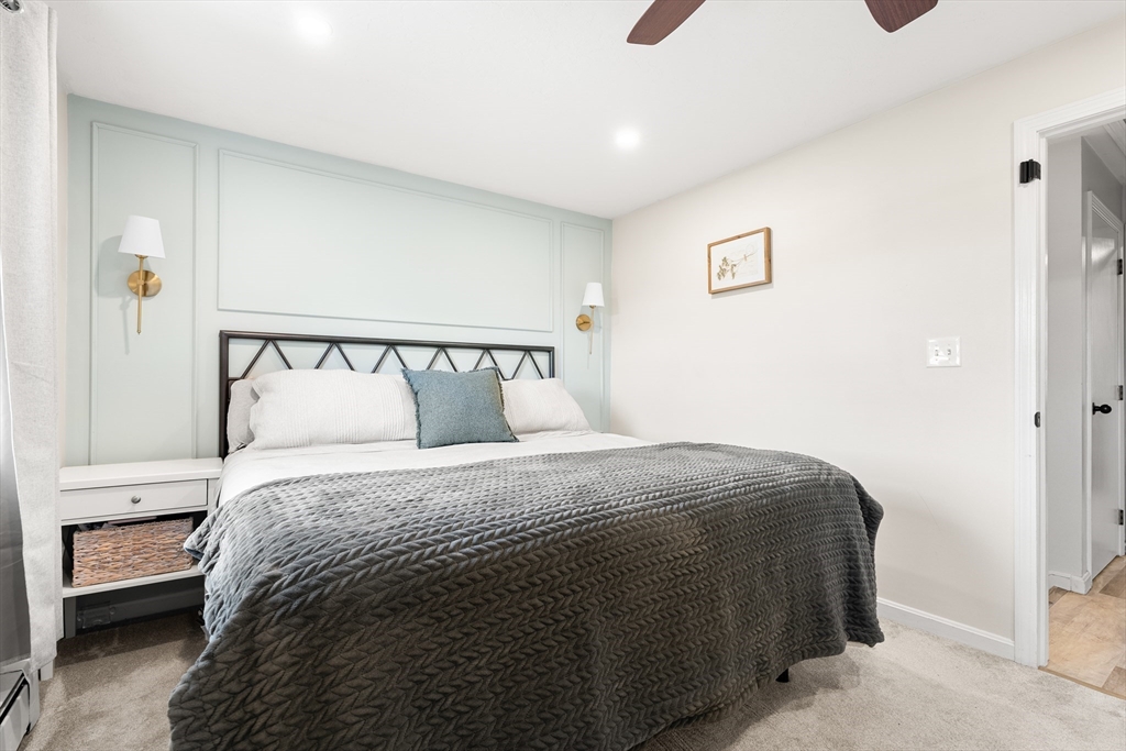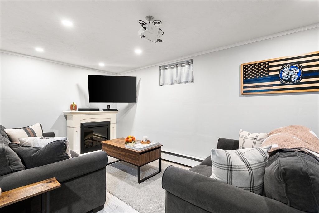 Welcome to Halifax Meadow Condominiums. This move-in-ready 2 bed, 1.5 bath home has been beautifully refreshed with new paint, new rugs, new toilets, new lighting and ceiling fans. Plus a new whole-house water filtration system and water pump, along with a new furnace! The kitchen comes with stainless steel appliances and a floor plan opening right onto the private deck, a great space for grilling or enjoying morning coffee. The finished basement features another living space perfect for relaxing or entertaining, while the unfinished side offers ample storage and in-unit laundry. Upstairs the built-in Murphy bed frame will stay, adding both style and function. With one assigned parking space, plenty of guest parking, an in-ground pool, clubhouse, and a short drive to the commuter rail, this home offers the perfect blend of comfort, practicality, and location. Simply unpack and enjoy your life!