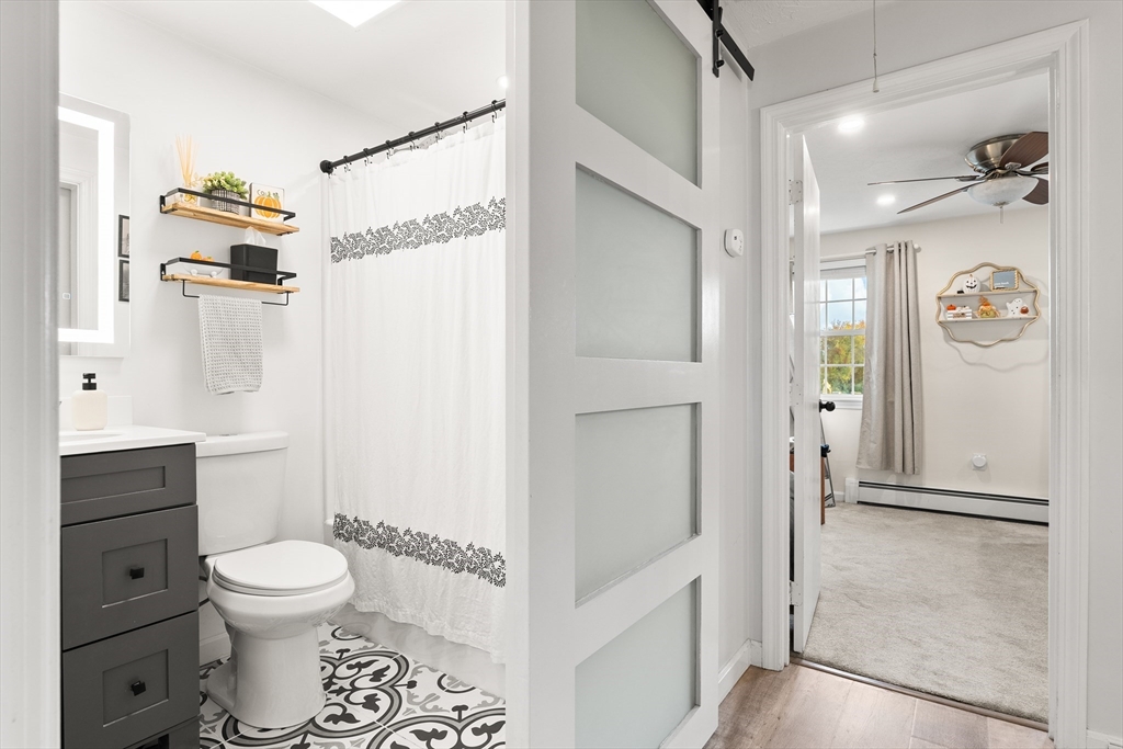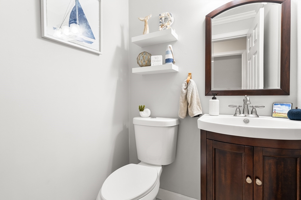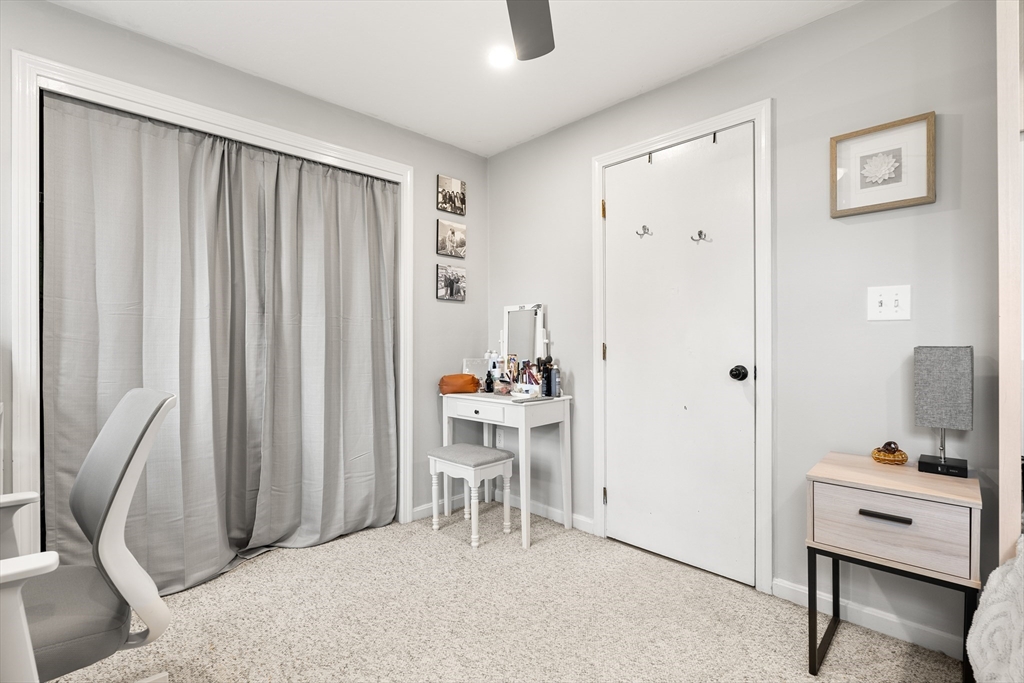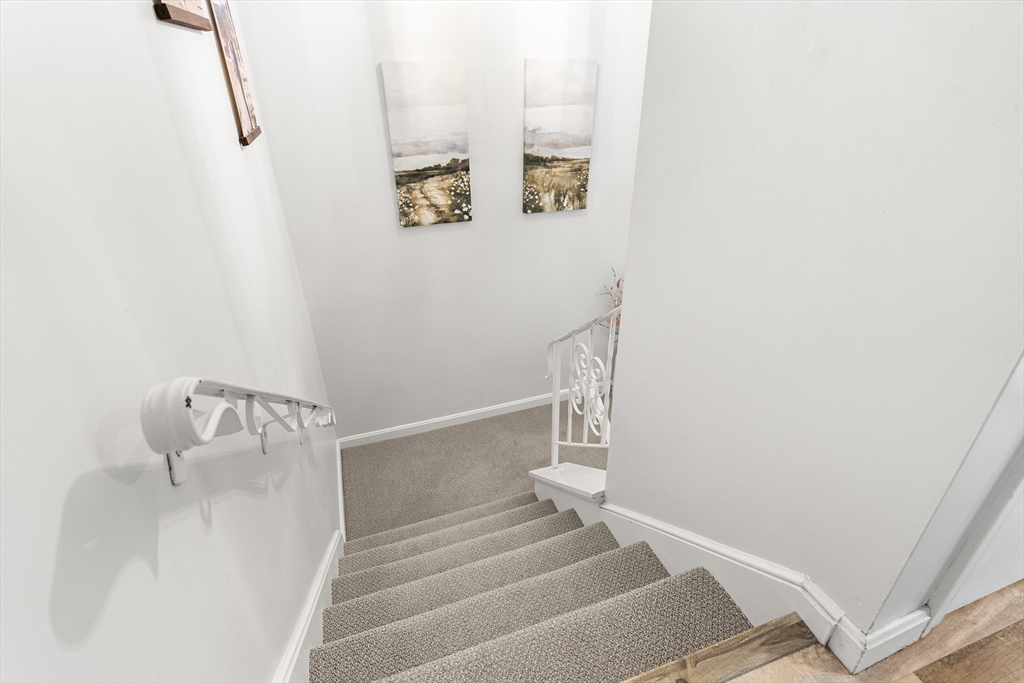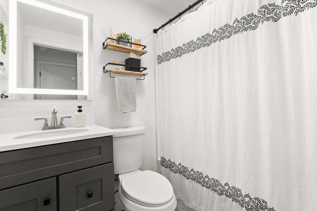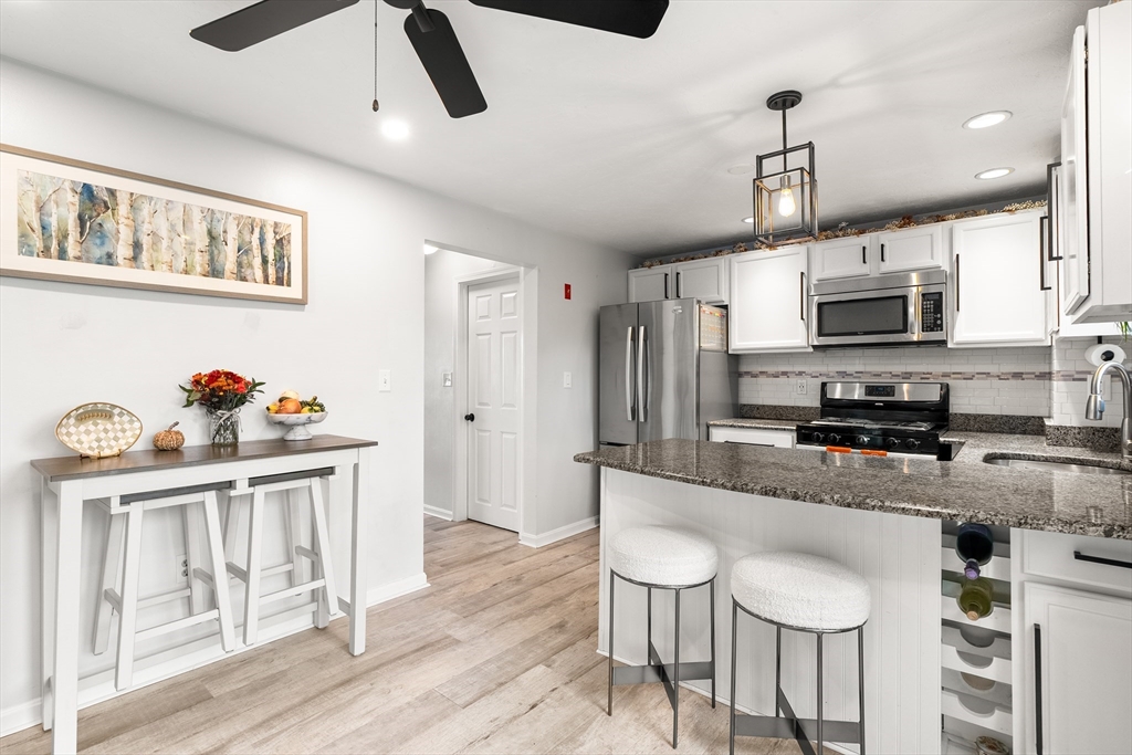 Welcome to Halifax Meadow Condominiums. This move-in-ready 2 bed, 1.5 bath home has been beautifully refreshed with new paint, new rugs, new toilets, new lighting and ceiling fans. Plus a new whole-house water filtration system and water pump, along with a new furnace! The kitchen comes with stainless steel appliances and a floor plan opening right onto the private deck, a great space for grilling or enjoying morning coffee. The finished basement features another living space perfect for relaxing or entertaining, while the unfinished side offers ample storage and in-unit laundry. Upstairs the built-in Murphy bed frame will stay, adding both style and function. With one assigned parking space, plenty of guest parking, an in-ground pool, clubhouse, and a short drive to the commuter rail, this home offers the perfect blend of comfort, practicality, and location. Simply unpack and enjoy your life!