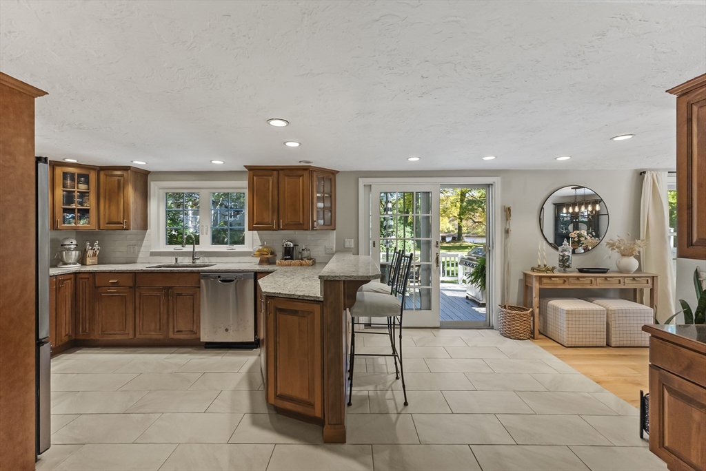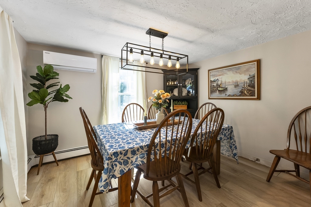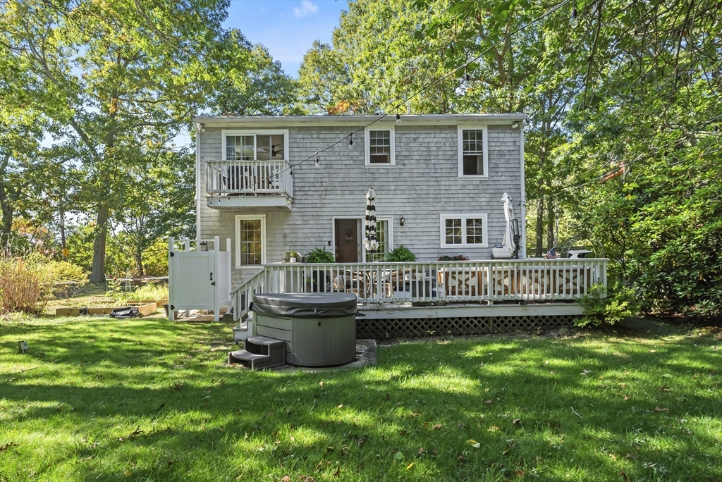 Welcome to your own private pond front retreat in the heart of Plymouth's Manomet Village! Ideally located just 2 miles from White Horse Beach, 7 miles from downtown Plymouth, and across from the Mass Audubon Tidmarsh Wildlife Sanctuary. This charming 3-bedroom, 1.5-bath Cape-style home blends comfort, modern updates, and serene outdoor living. The kitchen was fully remodeled in 2020 along with new windows, Anderson slider, and a brand-new septic system was installed in 2023. Two new mini split systems add year-round efficiency. The first-floor features luxury vinyl flooring, with extra materials to finish remaining rooms. The primary and second bedrooms are located on the 2nd floor. The primary bedroom features an enhanced skylight and Juliet balcony overlooking the water. The finished basement includes a third bedroom and additional living space. Step outside to enjoy a spacious deck, new vinyl outdoor shower, two-person hot tub, and your own floating dock on a peaceful private pond.