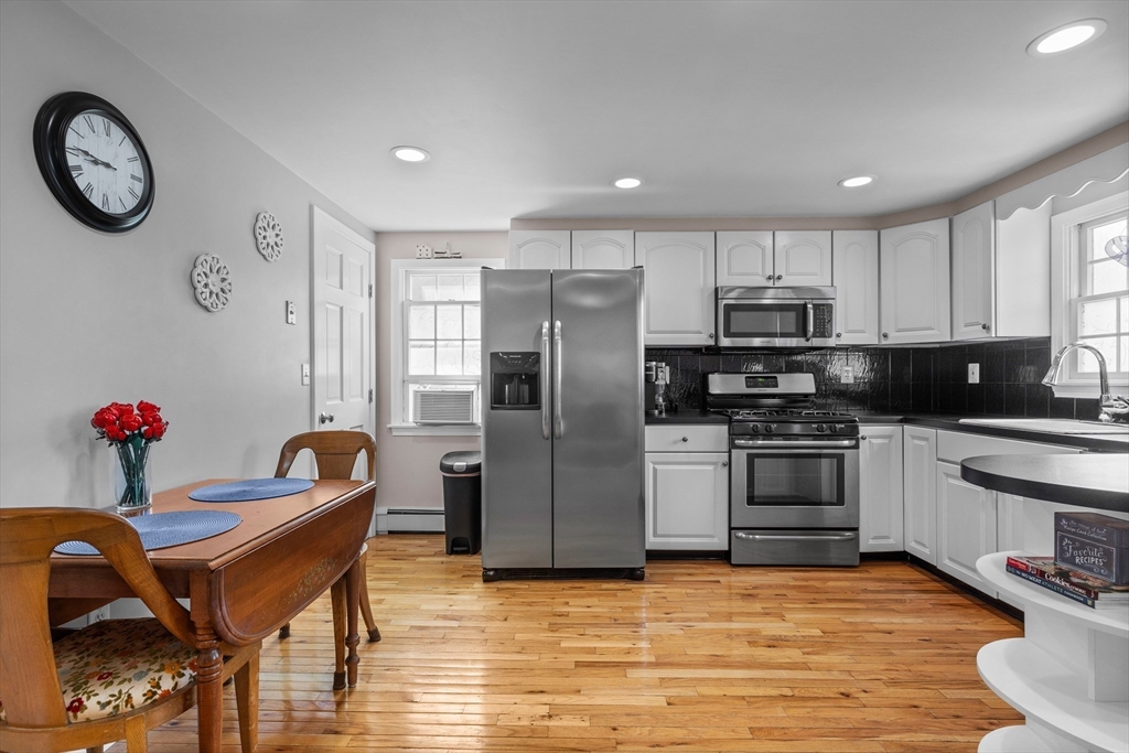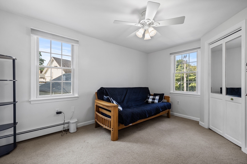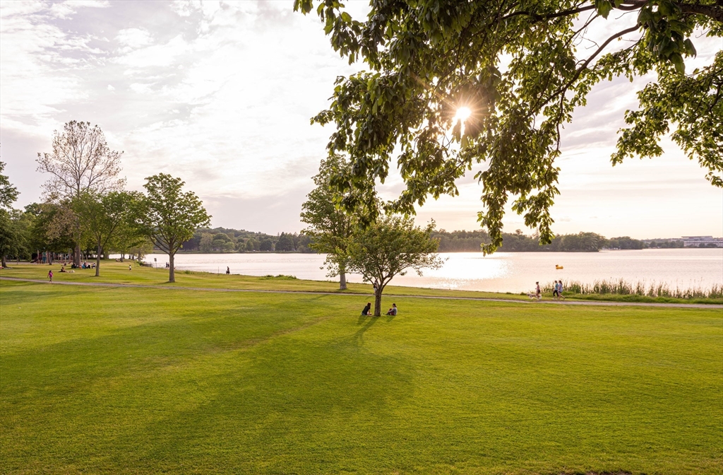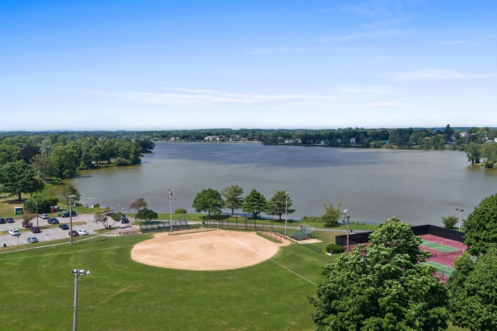 Location, Location, Location! This rare 2-bedroom, 1.5-bath townhome is perfectly situated across from beautiful Lake Quannapowitt in the heart of downtown Wakefield—just steps to shops, restaurants, and the Wakefield Commuter Rail. Only 15 miles to Boston, with easy access to major highways and just 1/4 mile to the commuter rail (5 miles to the Orange Line), this home offers unbeatable convenience. The white eat-in kitchen with stainless steel appliances opens to a spacious living/family room, ideal for relaxing or entertaining. The first floor features hardwood floors, in-unit laundry, and a half bath for guests. Upstairs, enjoy scenic lake views from the master bedroom, plus a second bedroom—both with access to a full bath. There's ample storage in the third-floor attic and shared basement, as well as two deeded parking spaces and additional off-street parking. Enjoy the outdoors with walking and bike trails around the lake and a seasonal farmers market right across the street.
