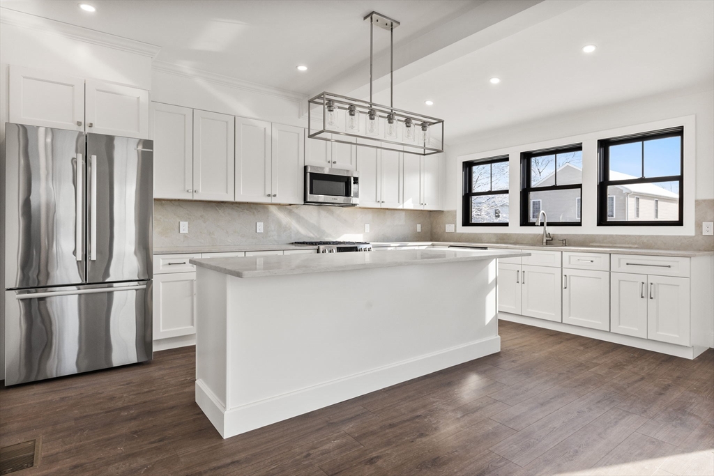 Welcome to 1864 River Street in Hyde Park. This brand new single family near the Dedham line offers over 3400 sq ft across four finished levels with modern design and premium finishes. The main level features an open layout, bright living room and custom kitchen with quartz counters and stainless appliances. Upstairs includes three bedrooms with a primary suite and walk in closet. The finished attic and basement provide extra living space. Complete with two full baths, three half baths, central air and private driveway, this home has a suburban feel while offering the convenience of living in the City.