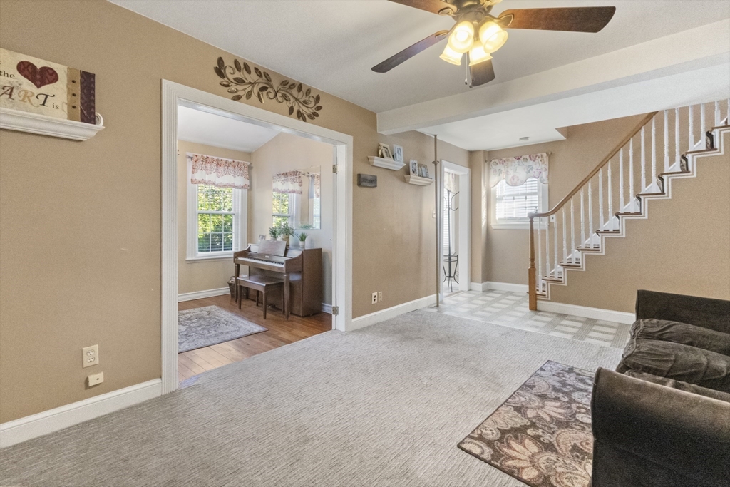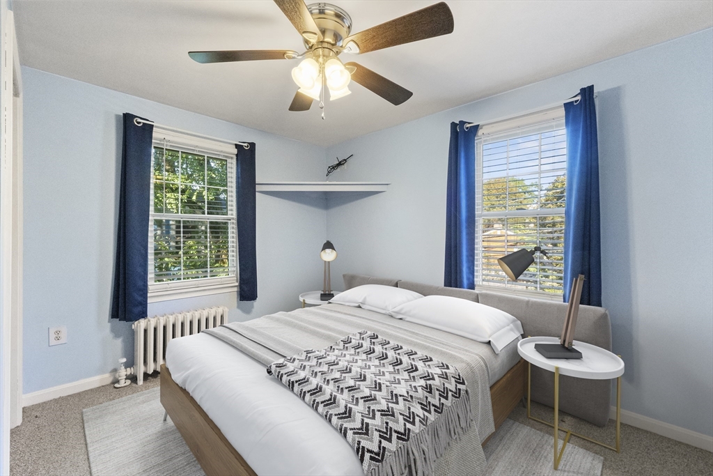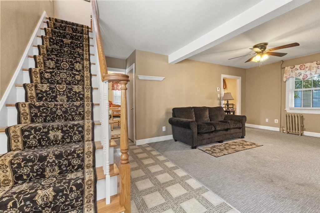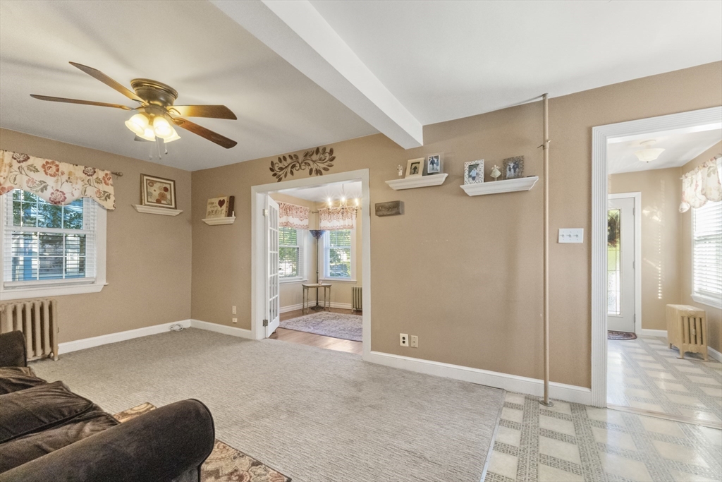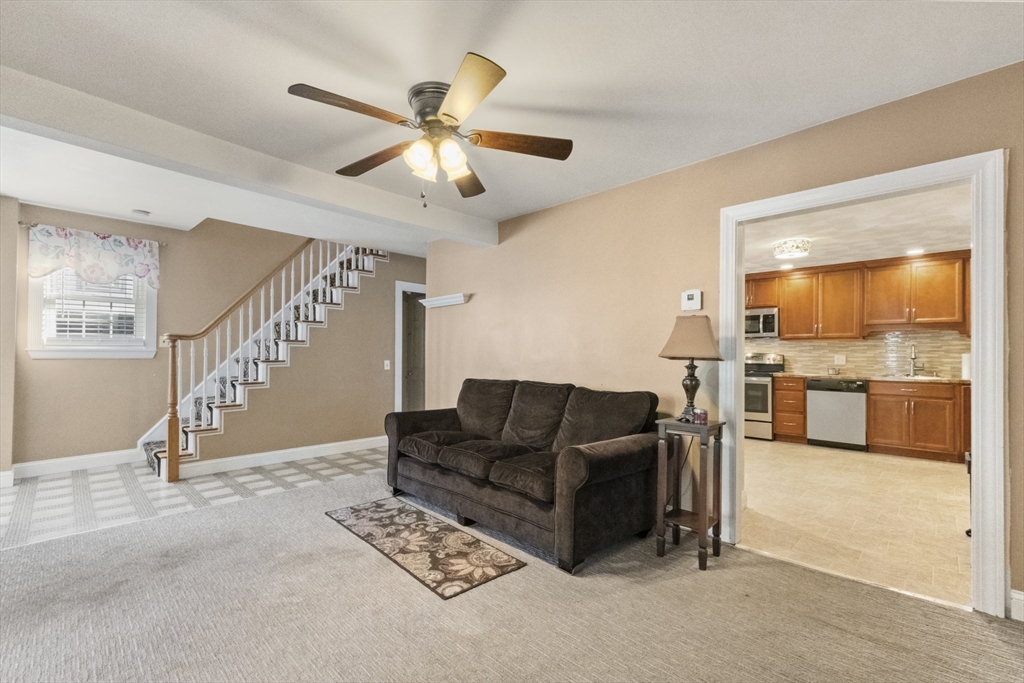 Commuter's Dream with easy access to Rt 128! Charming 3 bedroom 1 bath Colonial in desirable Peabody with reasonable taxes! Bright foyer has a large walk in closet and leads to a spacious sun-filled living room! The den / office area features hardwood floors and French doors. Oversized eat in kitchen with ample cabinets and countertops, along with stainless steel appliances! Upstairs offers 3 comfortable bedrooms and a full bath. Lower level offers two additional finished rooms! Enjoy outdoor living in the fenced in yard with a handy storage shed for all your extras. Off street parking for 4+ cars! This home combines comfort, charm & location!