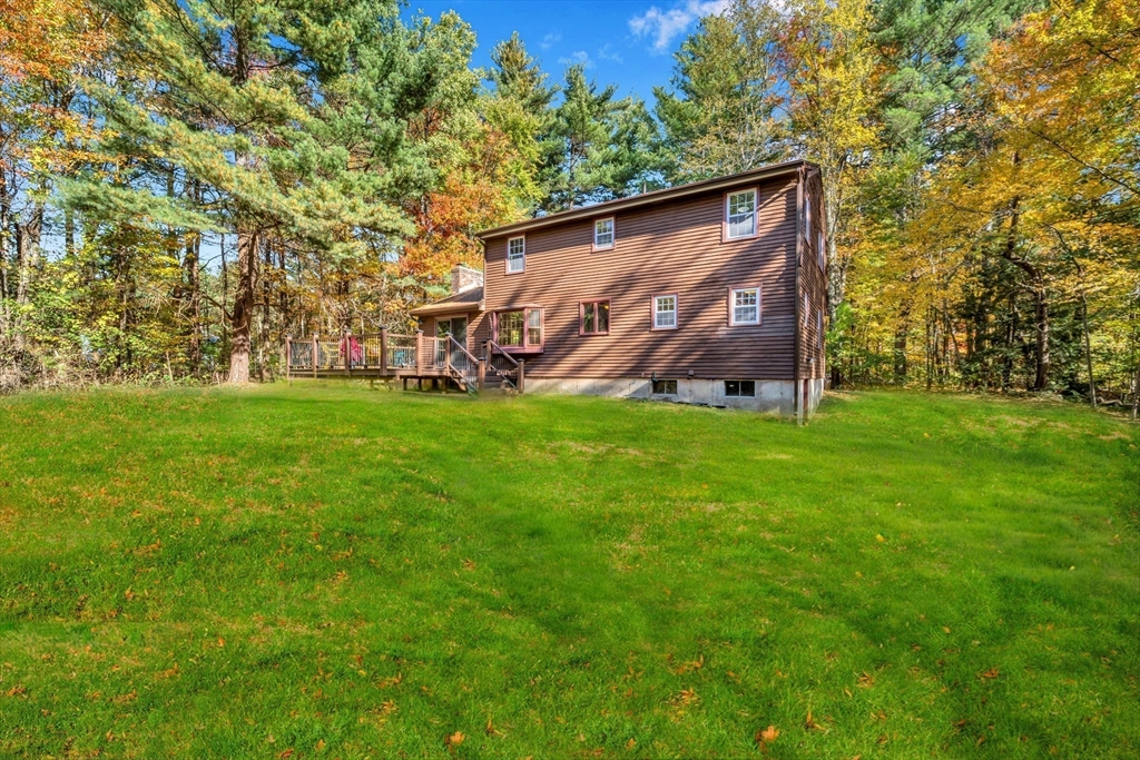 Turnkey appeal meets modern comfort. Tucked away on a serene, tree-lined street surrounded by other well-kept homes, this freshly painted 3 BR, 1.5 BA gem sits on 1.3 private acres with a brand-new septic system (in process)—all the big stuff done. Beautiful hardwood floors, new carpeting and some new windows make this move-in ready just in time for the holidays. The spacious layout offers easy flow for everyday living and entertaining, plus a flexible space perfect for a home office or study nook. Step outside to your expansive deck—ideal for morning coffee, weekend gatherings, or stargazing under the night sky. Enjoy the feel of country setting with convenient access to delicious eateries, shopping, Mass Central Rail Trail, Sterling Town Beach & Lake Waushacum, walking trails at the Wachusett Reservoir are nearby. Moments away to all the major highways and scenic roads. Comfort, privacy, and space all in one perfect package. Some rooms virtually staged for design inspiration.