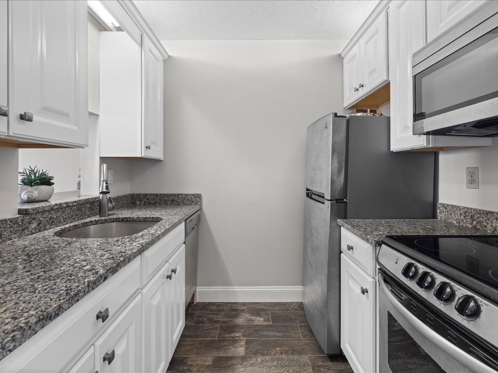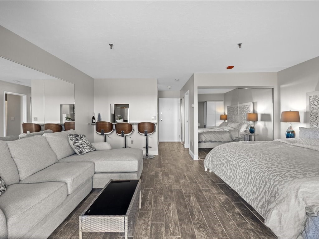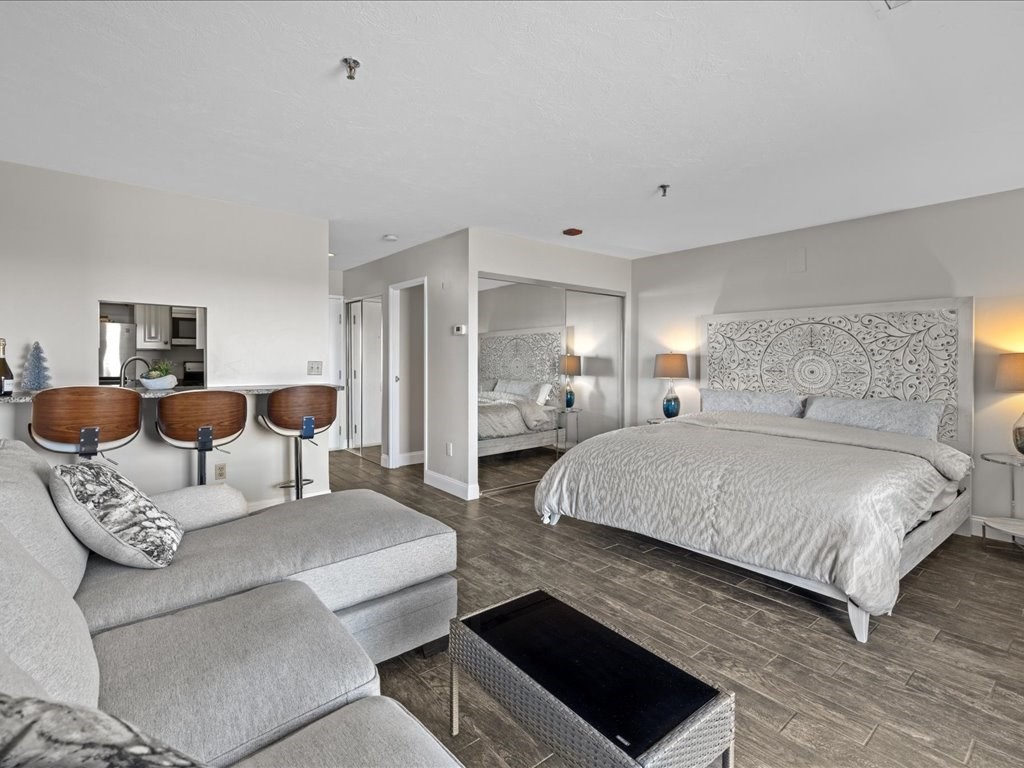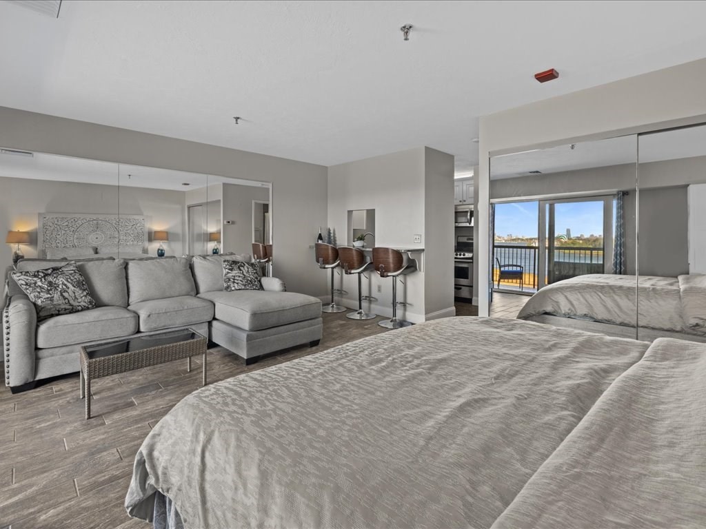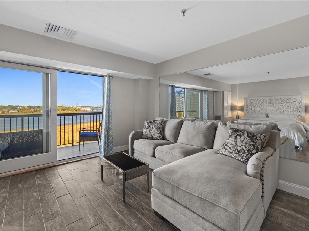 Welcome to 133 Commander Shea Blvd, Unit 609 - a stylish, move-in-ready studio perched on the sixth floor of Edgewater Place. Enjoy sweeping views of the Boston skyline and tranquil water from your private balcony. This thoughtfully updated home features ceramic tile flooring, stainless steel appliances, and a modern bathroom, offering comfort and convenience in one. Perfect as a city retreat or investment, the building includes an in-ground pool for summer relaxation and on-site laundry. Stroll just 10 minutes to North Quincy Station or hop on I-93 for a quick Boston commute. With Wollaston Beach and Marina Bay nearby, this is the ideal spot to embrace a vibrant coastal lifestyle. Furniture is included!