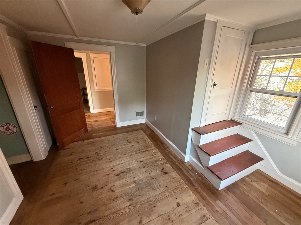 Nestled at 51 Rosemont St, Haverhill, MA, this single-family residence in Essex County presents an inviting home, ready for its next chapter. The living room is a welcoming space, highlighted by a beamed ceiling that adds character and architectural interest, while the crown molding provides an elegant finishing touch. The kitchen provides a functional space, enhanced with stone countertops that offer both durability and a pleasing aesthetic. The primary bathroom features a walk-in shower, providing a practical and easily accessible amenity. The bedroom also features crown molding, adding a touch of sophistication. Outside, the property features a deck and patio, perfect for enjoying the woods view, while the fenced backyard provides privacy and security, also including a shed and fire pit. This Haverhill residence offers a blend of comfort and practical living, awaiting your personal touch to create lasting memories.