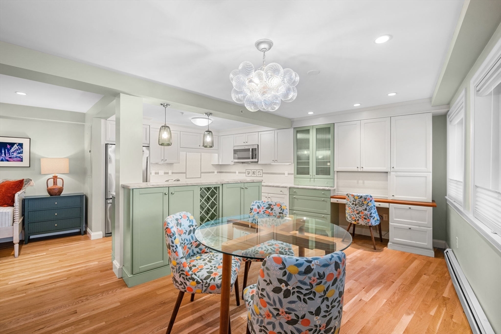 Enjoy the best of harbor-side living in this beautifully updated first-floor, one-bedroom, 1.5-bath condominium in historic Marblehead. The open layout features an updated kitchen with sleek countertops, tiled backsplash and stainless steel appliances. The dining area offers views of Marblehead Harbor and flows into a comfortable living room with a gas fireplace and just a step outside is a private deck overlooking the water. Hardwood floors, custom lighting, A/C, in-unit laundry, two parking spaces, and private separate storage room on site add comfort and convenience. At Harborside Condominiums, residents also enjoy access to two shared floating docks, kayak and paddleboard racks, and a swim ladder—everything you need to embrace life on the harbor. Perfectly situated near shops, restaurants, and parks, this home combines coastal charm with everyday ease.
