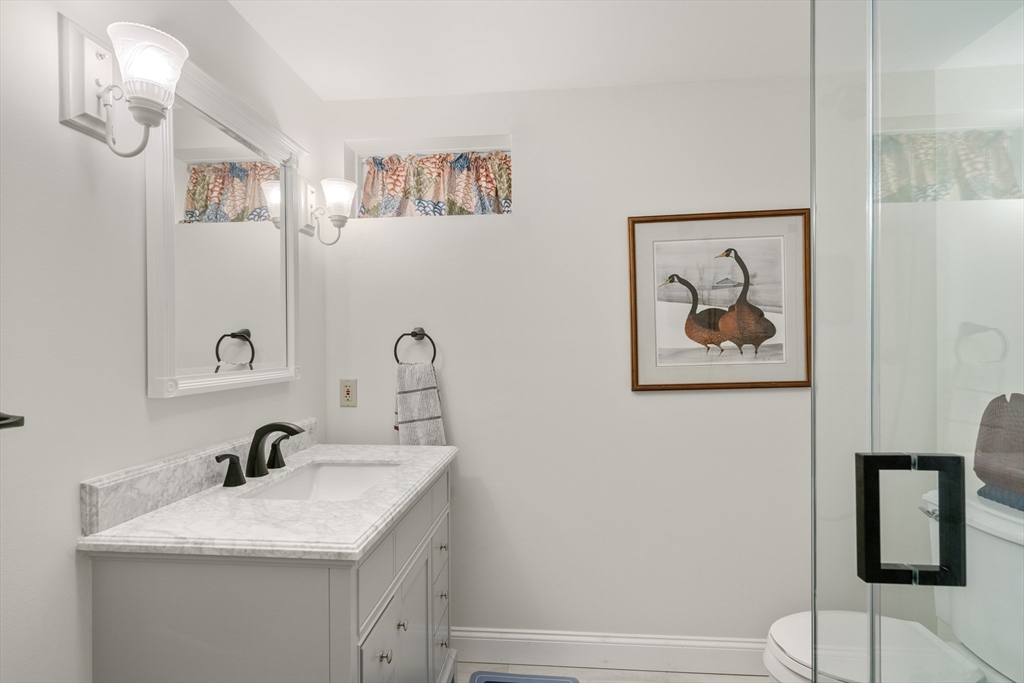Welcome to Chilmark of Falmouth! This beautiful renovated 2 bedroom, 2.5 bath condo offers style, comfort, and convenience. The updated kitchen features SS appliances, new cabinetry, and modern countertops that flows seamlessly into the dining area.. The spacious,living room includes sliders that open to a fabulous private deck and stone patio-perfect for relaxing and entertaining. Upstairs, you will find two generous bedrooms, including the primary with sliders leading to a private balcony. The finished lower level provides additional living space with a family room and a full bath. This desirable complex offers a swimming pool and is ideally located , Chilmark is close to shopping, restaurants, and beautiful local beaches.
