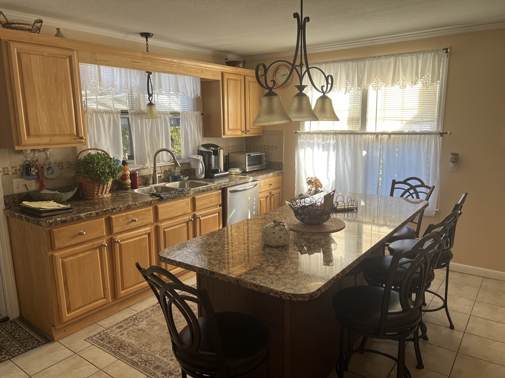 Discover the charm of 41 Orchard Street, Ludlow, MA, a single-family residence nestled in Hampden County, presented in great condition. The kitchen is a culinary dream, featuring a large kitchen island perfect for gathering, stone countertops that exude elegance, a stylish backsplash, crown molding, and a convenient kitchen bar for casual dining or entertaining. In the living room, the crown molding adds a touch of architectural sophistication. The bedroom also features crown molding. This attractive property includes a shed, offering additional storage space for tools, equipment, or hobbies. With two garage spaces, parking and storage are readily available. The expansive 10,019 square foot lot provides ample outdoor space for recreation and relaxation. This single-family residence, built in 1949, offers a blend of classic charm and modern amenities, making it an exceptional place to call home.