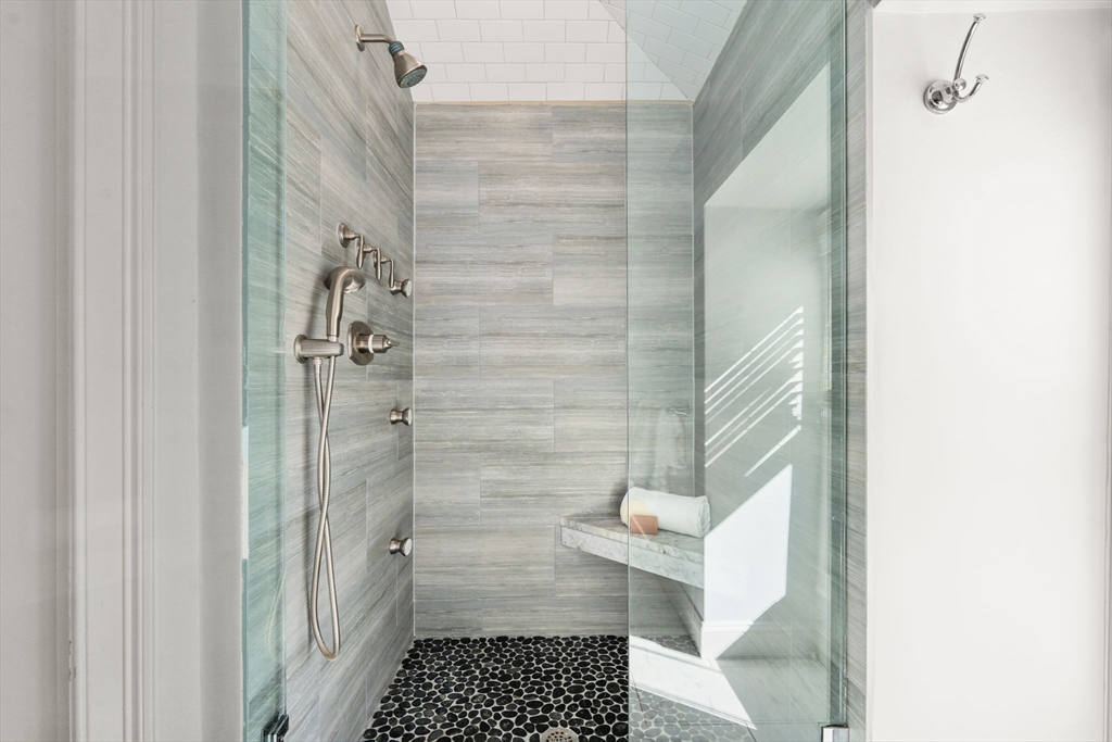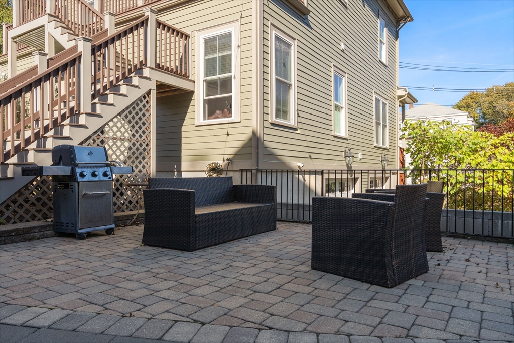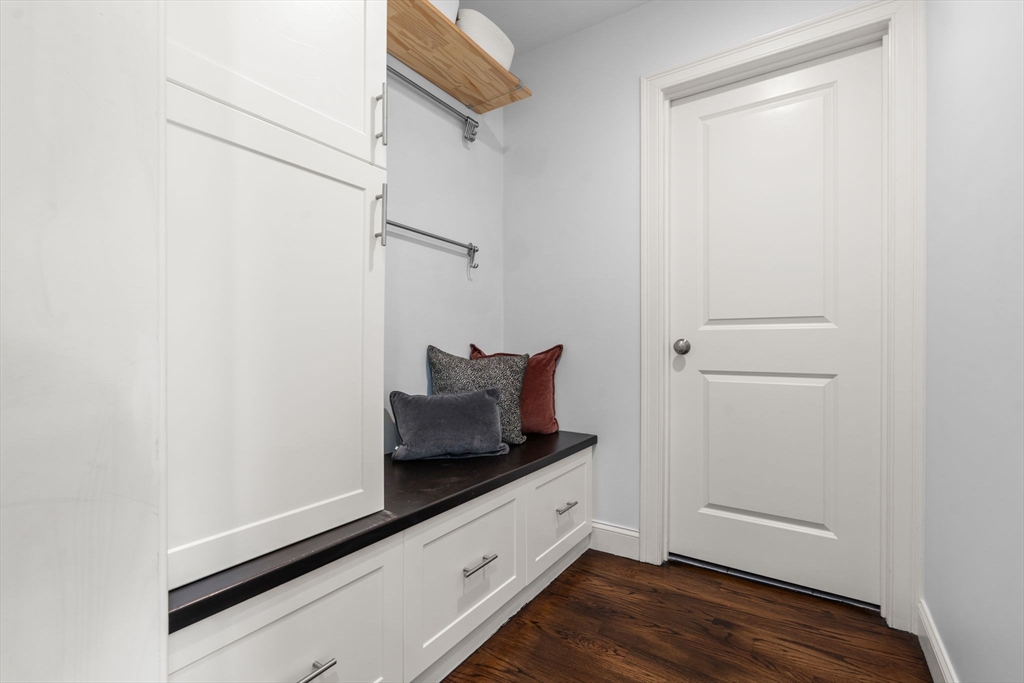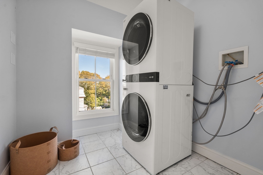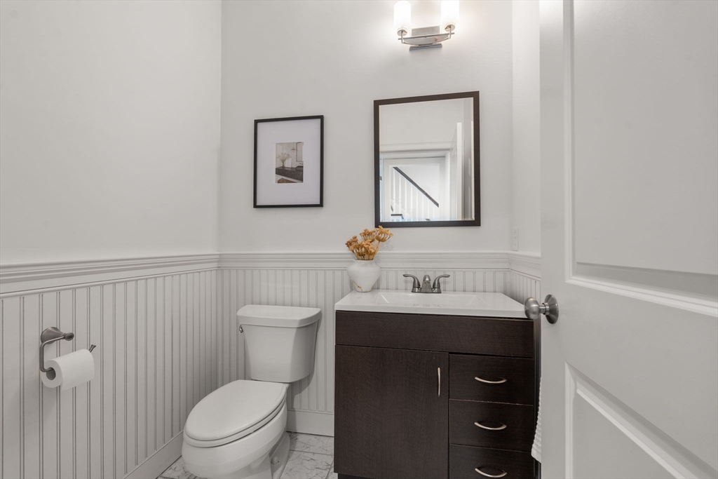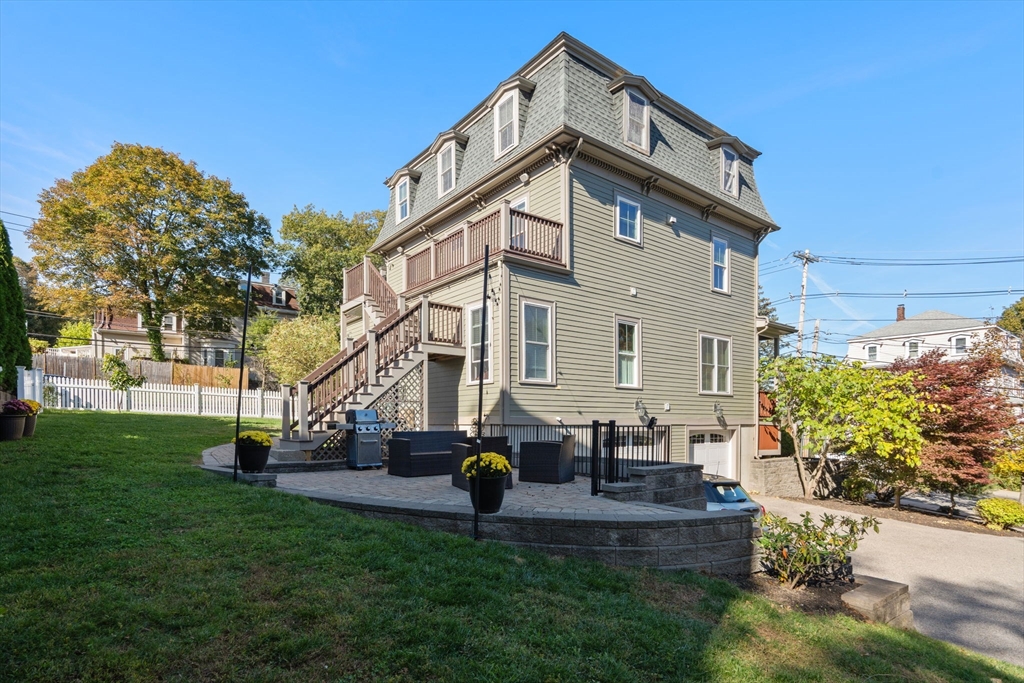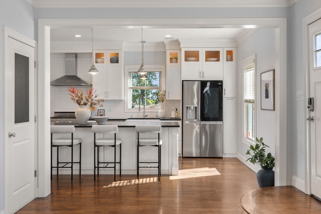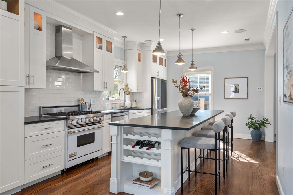 Set atop a stately Mansard Victorian, this beautifully appointed two-level home offers the perfect blend of historic elegance and contemporary comfort. Step into refined sophistication with classic crown molding, custom built-ins framing a cozy fireplace, and elegant wainscoting in the sunlit office—complete with French doors for privacy. A welcoming mudroom adds convenience and charm. At the heart of the home, the chef’s kitchen is a culinary dream, featuring a massive center island ideal for entertaining. The open and flowing main level also includes a formal dining area, bright and spacious living room, dedicated office and stylish 1/2 bath. Upstairs, unwind in the serene primary suite, w/ walk-in closet and spa-inspired en suite bath with double vanity. Two additional bedrooms, a full bathroom and a laundry room complete the top floor. 1 garage parking/ 1 outdoor. Located less than 1 mile from Roslindale Village!