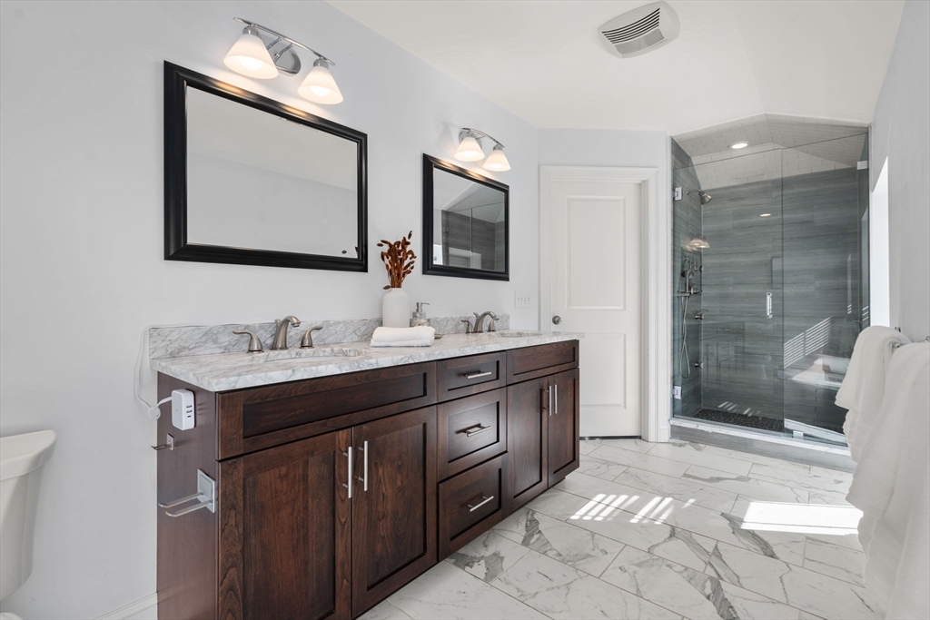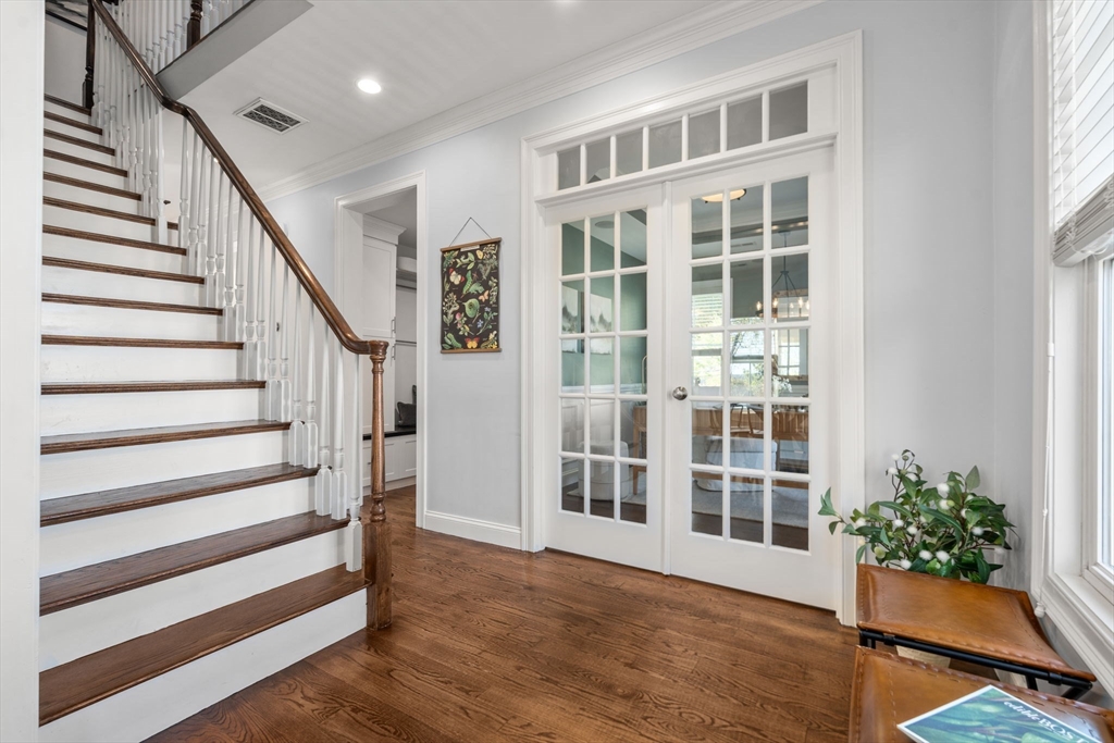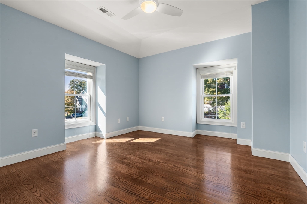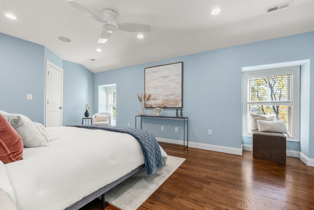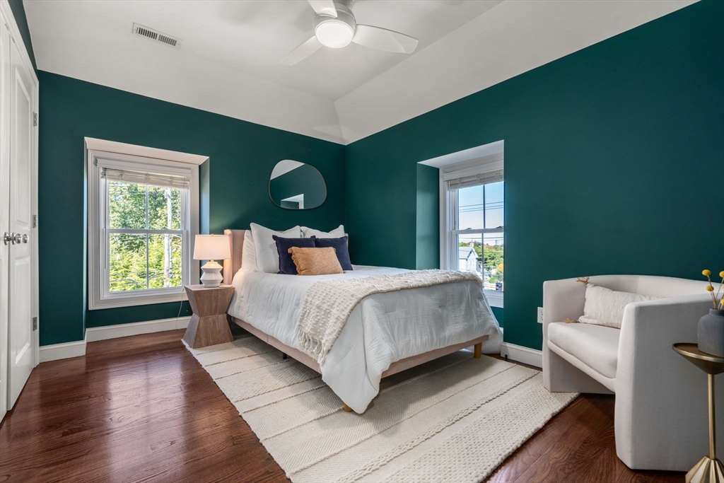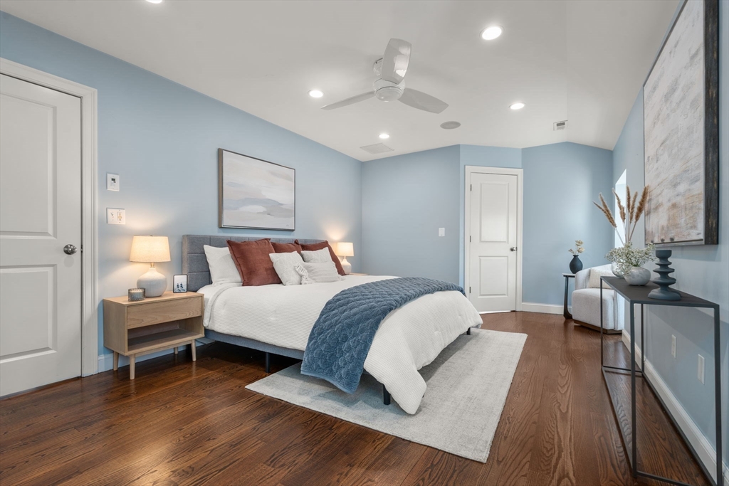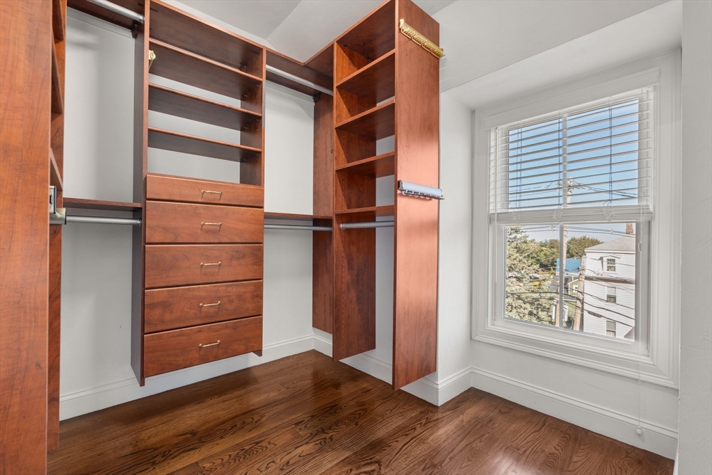 Set atop a stately Mansard Victorian, this beautifully appointed two-level home offers the perfect blend of historic elegance and contemporary comfort. Step into refined sophistication with classic crown molding, custom built-ins framing a cozy fireplace, and elegant wainscoting in the sunlit office—complete with French doors for privacy. A welcoming mudroom adds convenience and charm. At the heart of the home, the chef’s kitchen is a culinary dream, featuring a massive center island ideal for entertaining. The open and flowing main level also includes a formal dining area, bright and spacious living room, dedicated office and stylish 1/2 bath. Upstairs, unwind in the serene primary suite, w/ walk-in closet and spa-inspired en suite bath with double vanity. Two additional bedrooms, a full bathroom and a laundry room complete the top floor. 1 garage parking/ 1 outdoor. Located less than 1 mile from Roslindale Village!