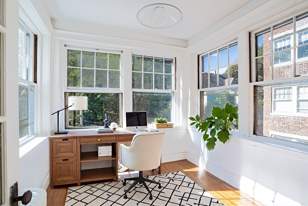 Just steps from Coolidge Corner, this spacious 3+ bedroom condo in a classic Brookline brownstone blends timeless charm with modern potential. High ceilings, original woodwork, and large bay windows fill the nearly 1,700 sq ft interior with natural light. Enjoy a flexible floor plan featuring a formal dining room, sun-filled bonus room which is perfect for a home office or play area, and thoughtful storage throughout. With garage parking and a large storage unit included, this home offers unbeatable value in one of Brookline’s most desirable locations. Walk to shops, restaurants, parks, and the C line. A rare opportunity to reimagine a well-loved home in the heart of it all!