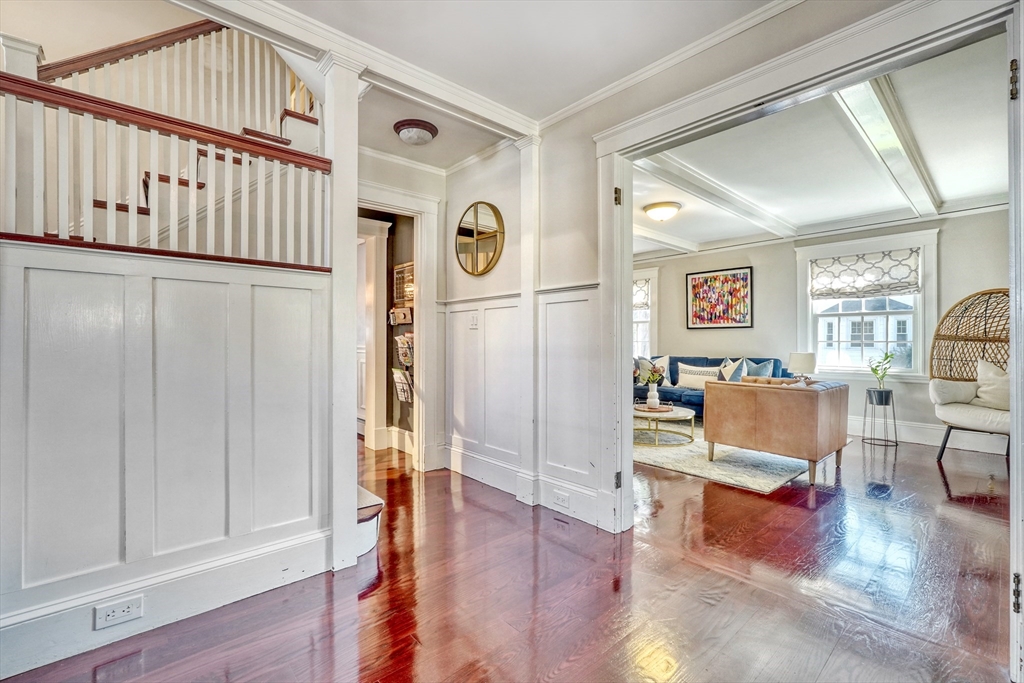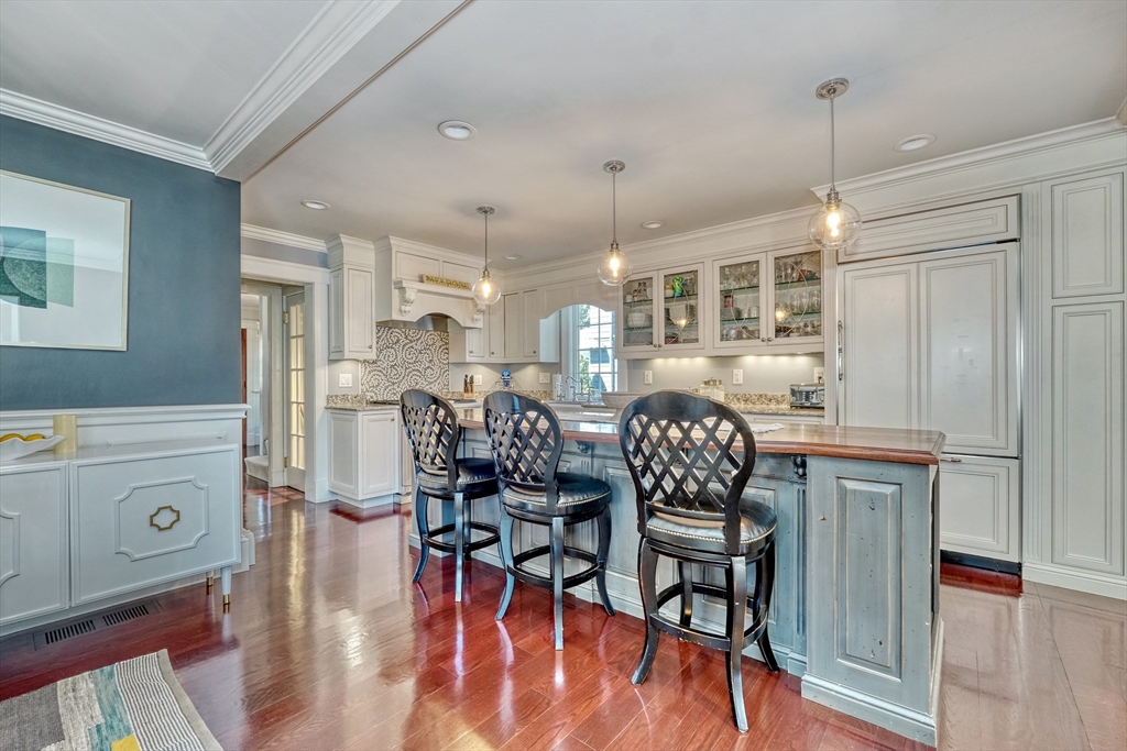 Storybook Craftsman-Colonial in the heart of Melrose’s East Side. Expansive porch, perfect place to relax, overlooking mature landscaping. Gracious open foyer leading to the formal fireplace LR and elegant DR. Renovated white kitchen is the heart of the home, a striking island ideal for entertaining. Spacious FR anchored by custom built-ins and fireplace. A convenient half bath and a mudroom complete the first floor. Four generous bedrooms, including a primary suite tucked privately at the back of the home. The suite features a boutique-style walk-in closet, and a luxurious bath with marble-tiled oversized shower, and abundant natural light. The LL continues the home’s quality and charm with a dedicated office or gym, a FR with custom moldings and built-ins, ideal for movie nights. Fenced-in backyard offers a stone patio, built-in fireplace perfect for fall evenings. Two-car spacious garage completes this exceptional home. Move right in and start entertaining from day one.
