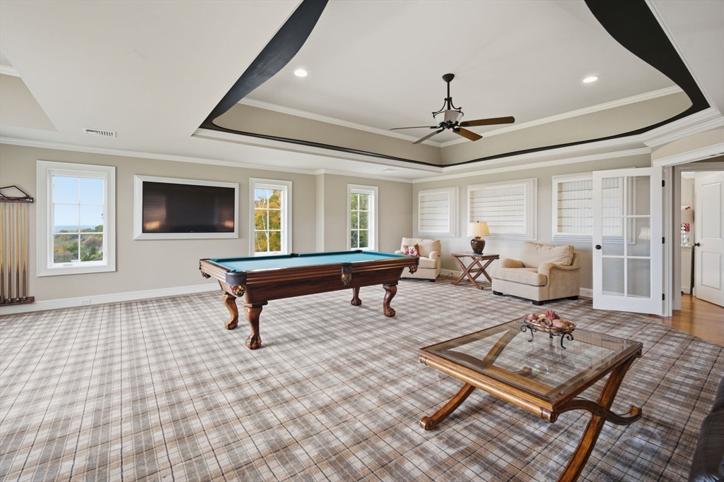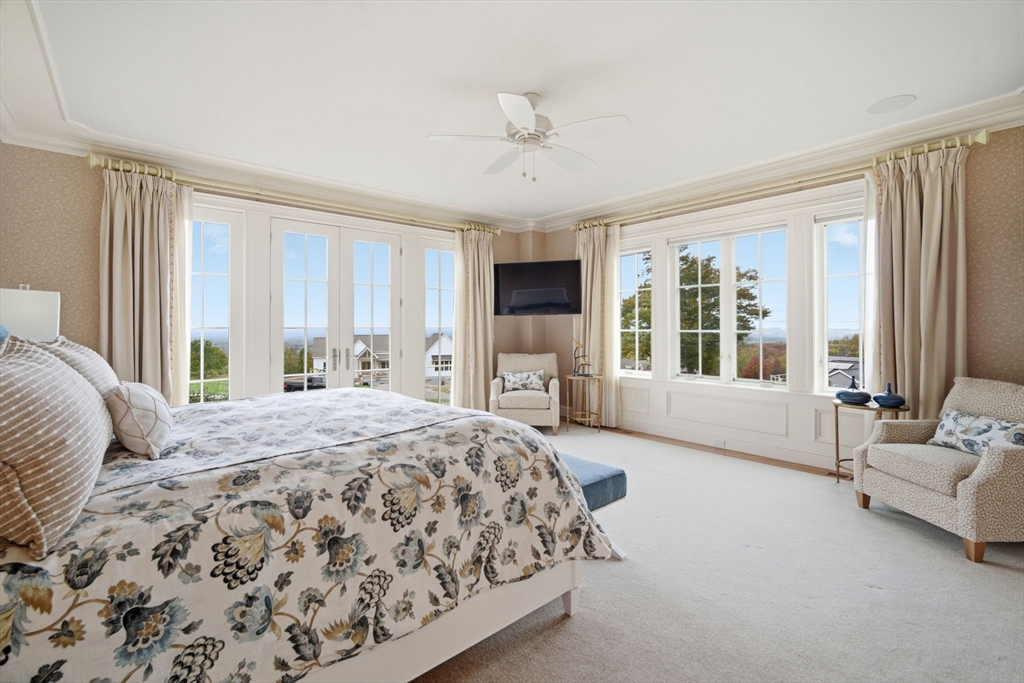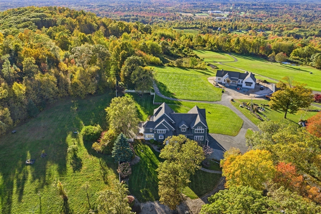 Experience luxury living at its peak in this prestigious 5,000 sq. ft. custom-built estate atop Wilbraham Mountain. Set on several private acres, the home is crafted with exceptional detail—from a black walnut pub with full bar to an outdoor retreat featuring a gourmet kitchen, Wolf grill, and a resort-style in-ground pool. The living room stuns with coffered ceilings and floor to ceiling windows, flowing into a chef’s kitchen with high-end appliances and an expansive island. A glass-wrapped dining room offers immersive views and abundant natural light. The main-level primary suite includes a private office, spa-inspired bath with steam shower, and dual walk-in closets. The second floor hosts a guest en-suite, a balcony room with sweeping views, additional bedroom and a dramatic game room. Finished with professional landscaping, a barn, and a shed, this rare offering seamlessly combines privacy, sophistication, and mountain-top elegance.