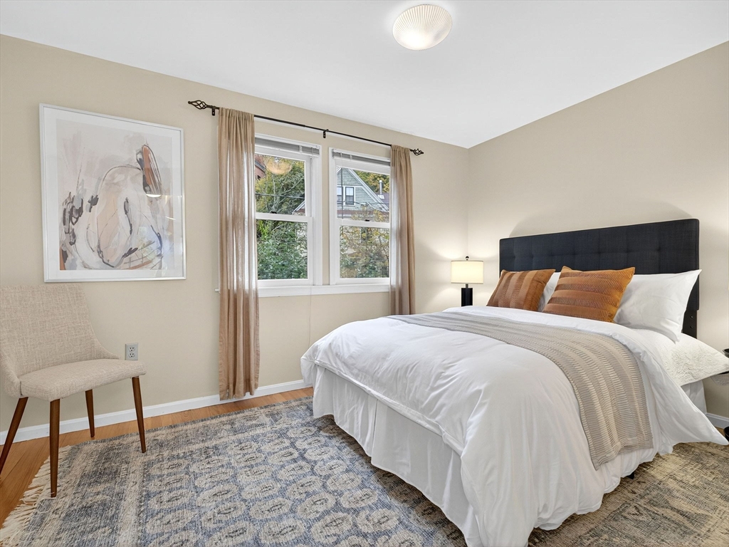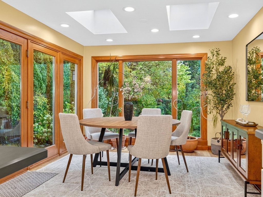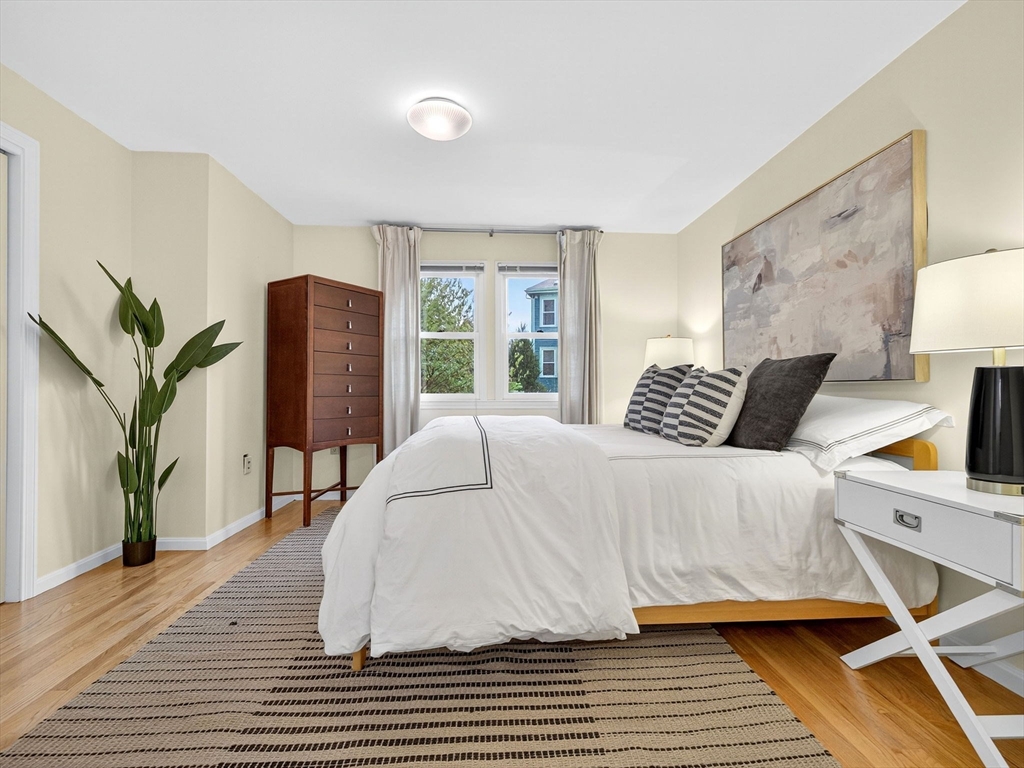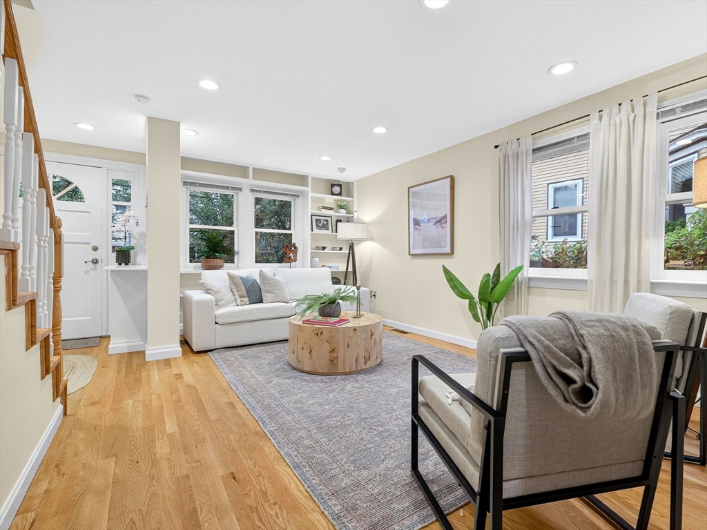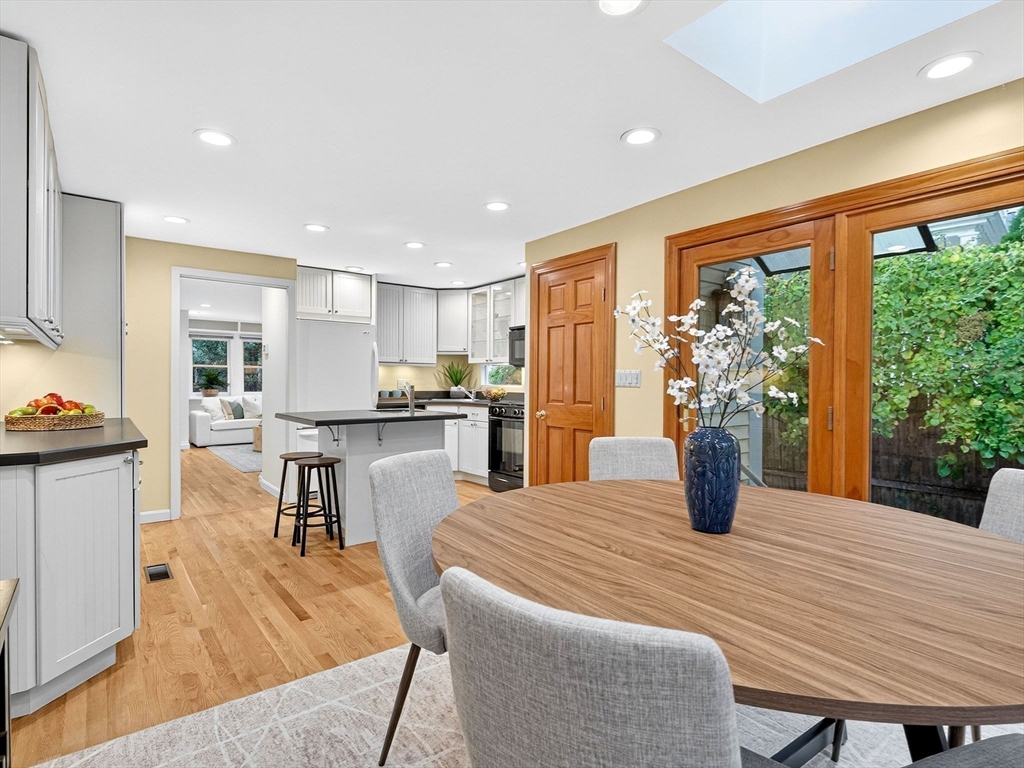 This is the one that checks all of the search boxes—AND MORE! Bright and efficient three-level townhouse built in 1990 with many recent updates throughout. Features 3 bedrooms, 2½ baths, including a large primary suite and beautifully updated bathrooms. The open kitchen to dining area showcases large glass windows overlooking a private garden. Lots of extras include renovated baths with heated floors, newer roof (2023), a comfortable living room with custom built-in bookshelves, a large top floor bedroom/family room with Cathedral ceiling, and a full private basement offering excellent storage and bonus usable space. Private outdoor space and garden, off-street parking, and central A/C add to the comfort and convenience. Fantastic Jamaica Plain location just blocks from the Orange Line, shops, and restaurants—this home truly combines city living with a touch of tranquility!