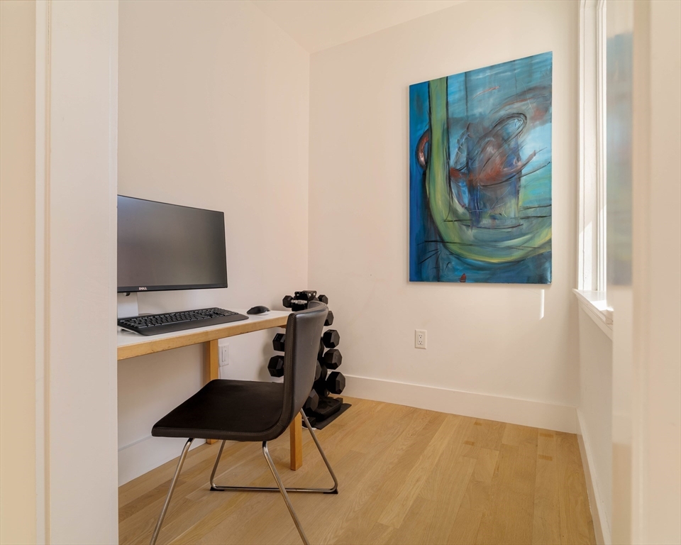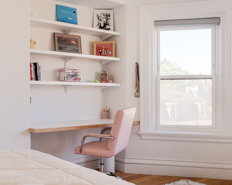 It’s the Cambridge of your imagination: red-brick turn-of-the-century façade, with a capacious, well-tended shared garden with organic planting beds, and open green space for barbecues and frisbee. Set on a wide beauty of a classic tree-lined street in historic Mid-Cambridge, just a block from Whole Foods and two from the Central Square T. Inside, you’ll find an architecturally designed space, extensively renovated in 2023, with high ceilings, oversized windows, new white oak floors, and tiled ornamental fireplace. Multiple exposures offer a light, airy atmosphere, and the custom built-ins throughout, office nook, mudroom, and abundant cupboards and custom closets combine to offer utility and efficiency. Additional amenities include in-unit laundry, parking, and private storage. Long-established, well-run condo association ensures building remains in great shape, both physically and fiscally. Close to Harvard, Inman and MIT/Kendall Square, as well as shops, restaurants, playgrounds.