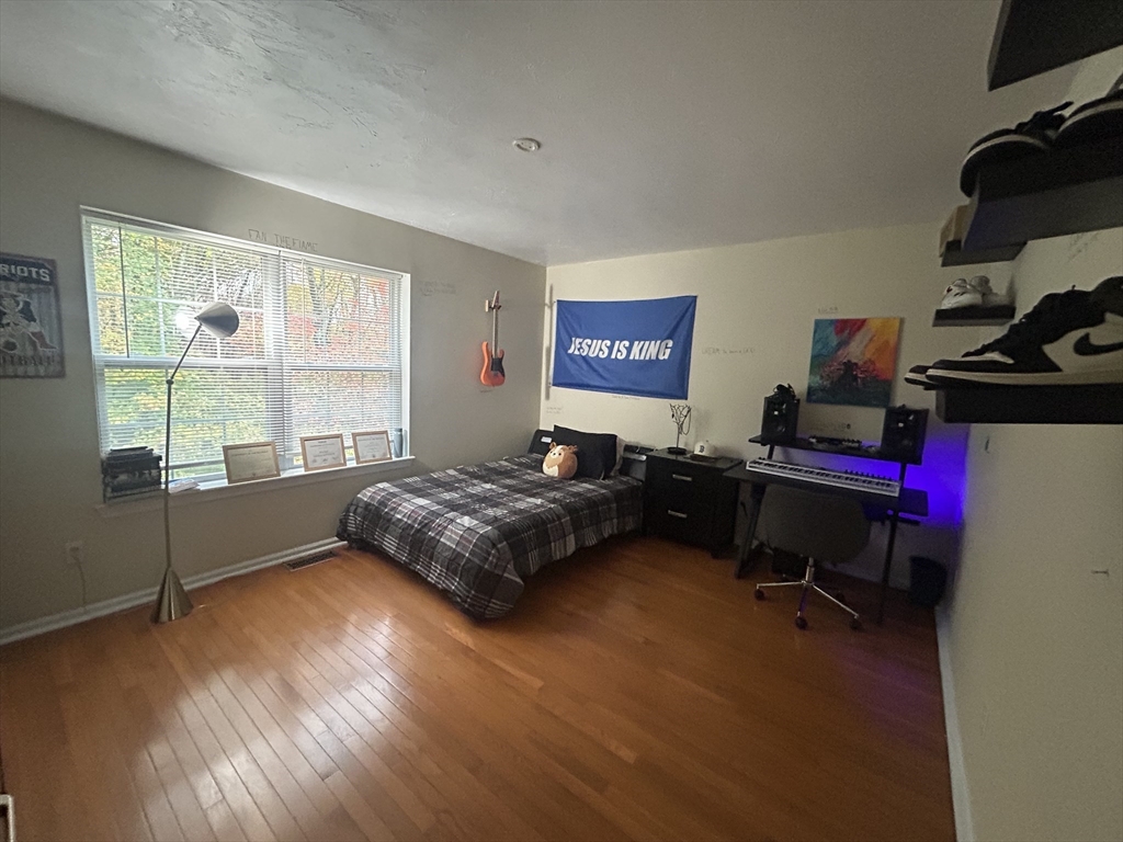 Attention Boston commuters - 1.4mi to MBTA train! Neighborhood Cul-de-sac setting, walking distance to Mary Finn Elementary school & ball fields. Beautiful colonial, freshly painted, with high ceilings, vaulted foyer, and hardwood floors throughout. King-sized primary suite, 2 spacious guest rooms and a loft complete the upper floor. The walkout (slider) lower level finished basement features laundry, 2 office rooms, and family room (currently used as a gym) with bar. Private level back yard, with gravel patio area. Available 12/1/25. Pets are considered on a case/case basis.