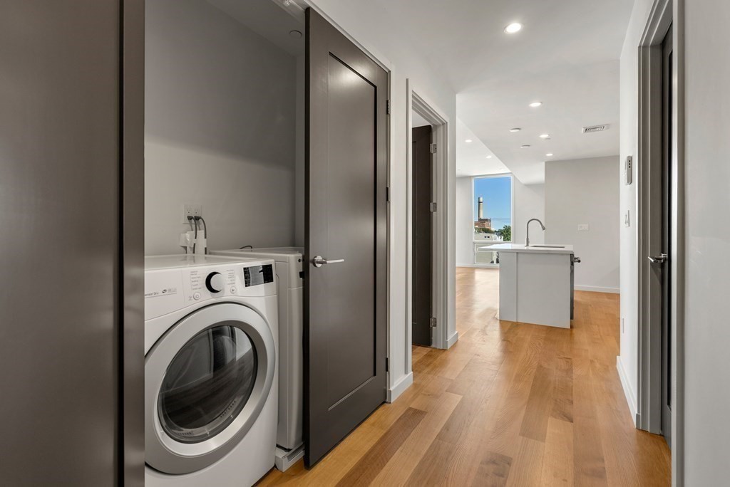 Newly constructed in 2020 this stunning home offers 2 bedrooms PLUS a den/office, 2 full bathrooms, approx. 1,256 Sq. Ft of open concept living space and soaring 9'+ celings. The kitchen features white quartz counters, sleek two-tone Europeans style cabinets and stainless steel appliances! Off the living room, through two sets of sliding glass doors you will find an expansive covered deck with recessed lighting. The spacious primary suite is complete with multiple large closets and a beautiful spa like en-suite bathroom. The large guest bedroom has a huge custom built out closet and access to the second full bathroom just outside the door. Additional features include in unit washer/dryer, garage parking, elevator and high efficiency Navien On-Demand system. The building is located directly between East and West Broadway so you are just steps to everything the neighborhood has to offer!