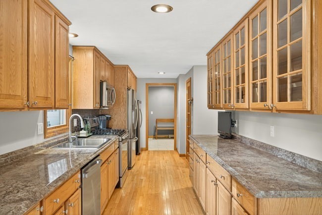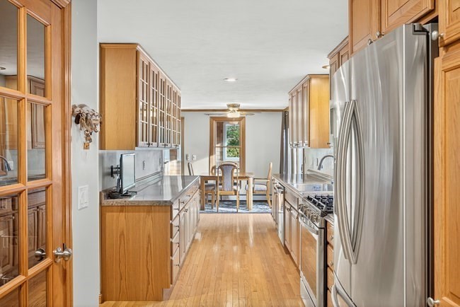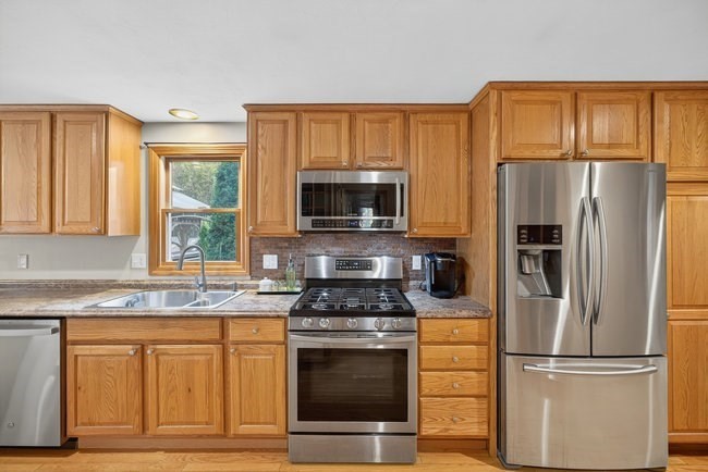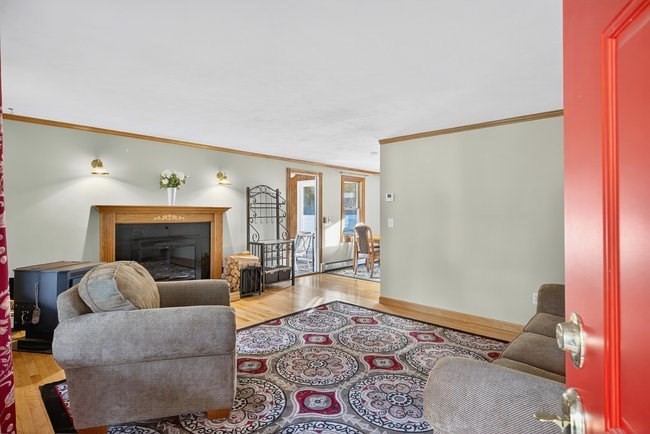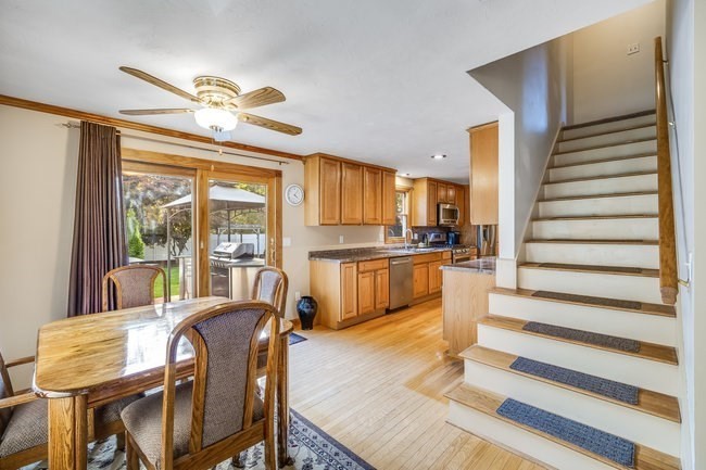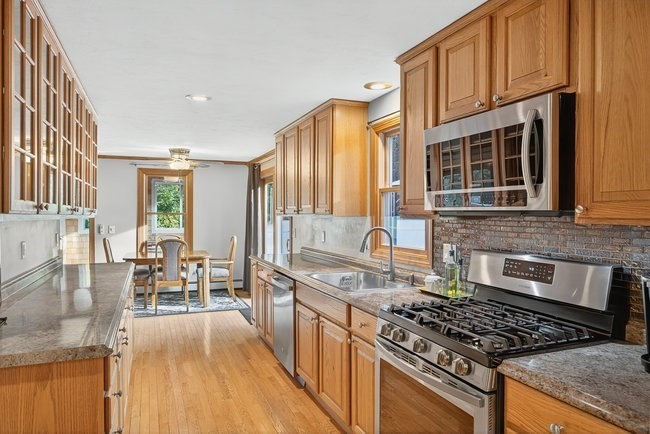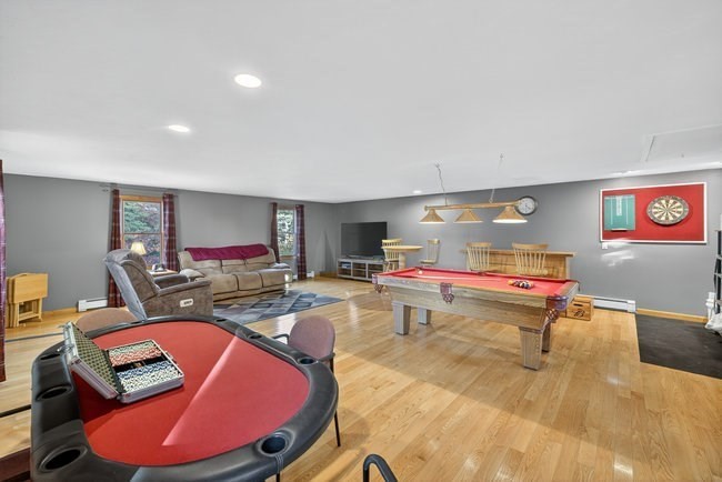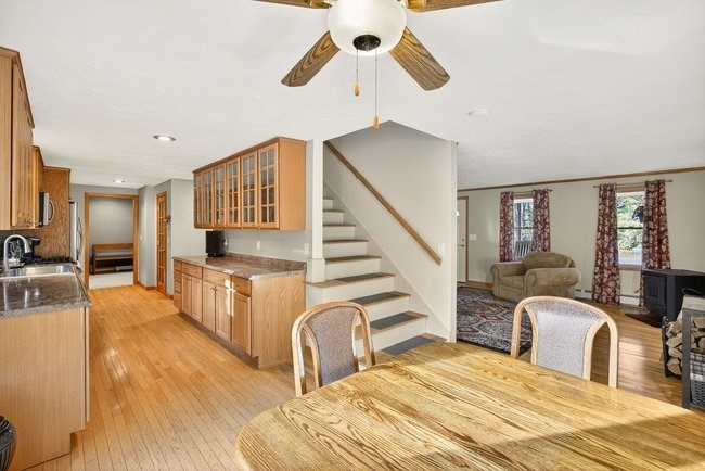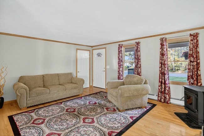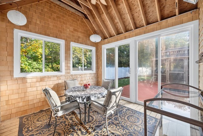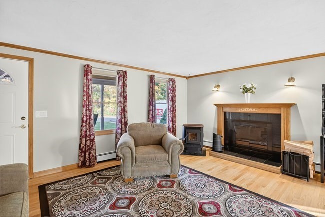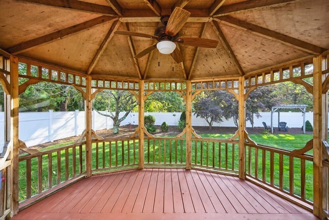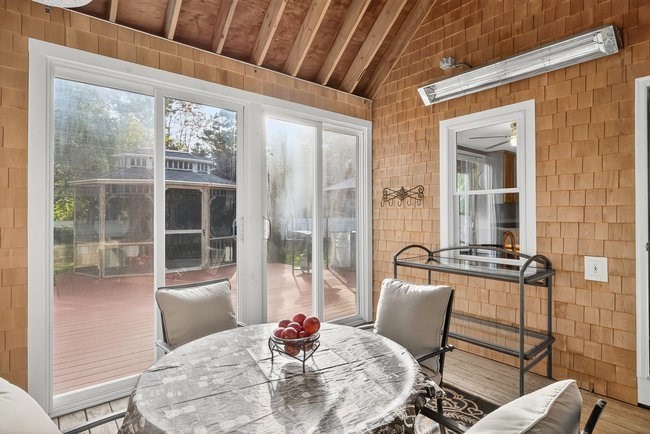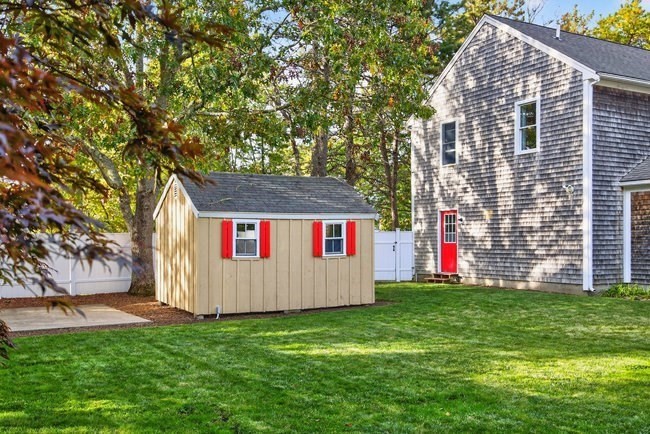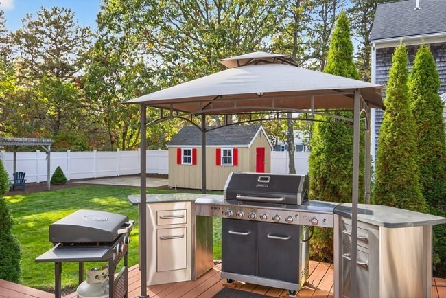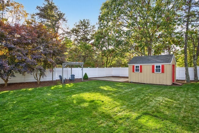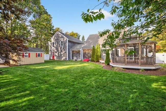 Welcome to this beautifully maintained 3-bedroom, 2.5-bath home on a corner lot in the sought-after Greenwood neighborhood, offering a perfect blend of comfort, space, and versatility. Step inside to discover an inviting layout ideal for gatherings or relaxing at home. The living room features a cozy wood-burning fireplace for chilly Cape Cod evenings, while a 3-season room provides a relaxing area to enjoy the outdoors. A bright kitchen opens to the dining area and leads to a spacious deck with a gazebo, built-in gas grill, and picturesque landscaping, perfect for entertaining. Enjoy first-floor laundry and a finished basement for extra living space or a home gym. Above the two-car garage is a large room with a bathroom, adding flexible space for recreation or a home office. Additional features include a pellet stove, extra gravel driveway, fully fenced backyard with a storage shed, and a full irrigation system. Greenwood residents enjoy amenities like a large pool, playground, tennis