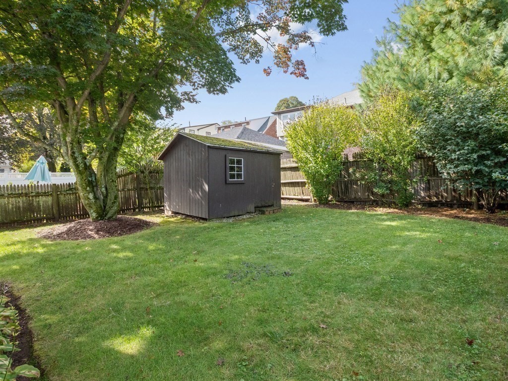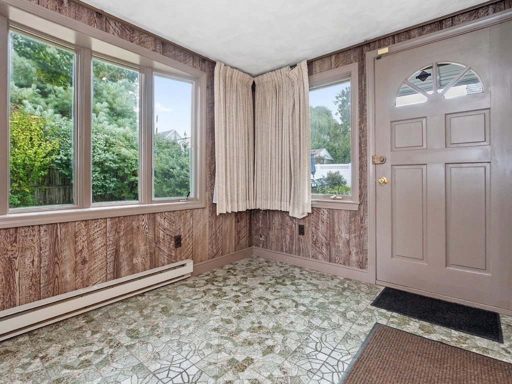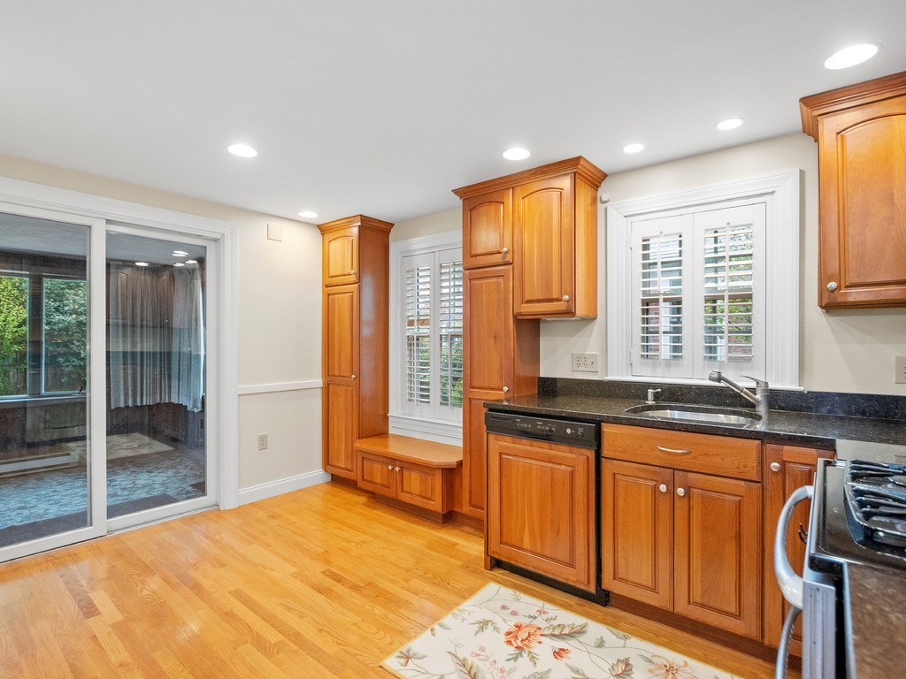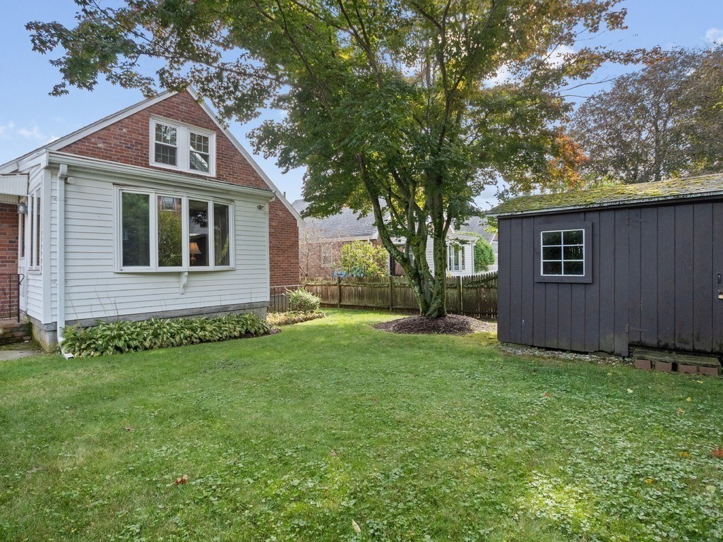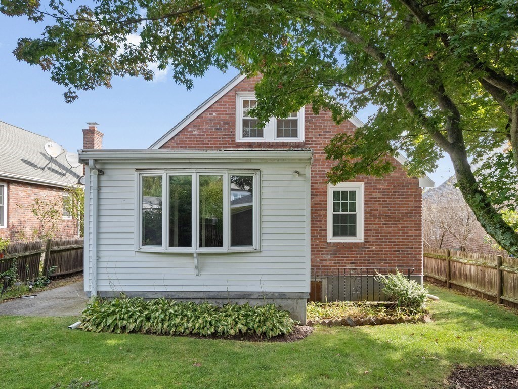 Sought-after West Side Watertown! This charming renovated Cape/Bungalow offers a perfect blend of character and modern updates. The bright fireplaced living room welcomes you with warmth and gleaming hardwood floors. Enjoy a newer cherry kitchen with granite countertops, stainless steel appliances, and recessed lighting, along with sliders leading to a sunny rear den with a bay window—ideal for relaxing or entertaining. The newer designer tile bath adds a touch of elegance, while the skylit primary bedroom with a walk-in closet provides a comfortable retreat. The finished basement features a spacious family room with a wet bar and tiled half bath, great for gatherings or guests. Additional highlights include a 2020 heating system, 2009 windows, and a private fenced rear yard for outdoor enjoyment. Conveniently located near Watertown Square, parks, shops, and public transportation, this home combines timeless charm with thoughtful updates.