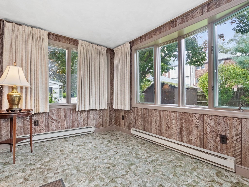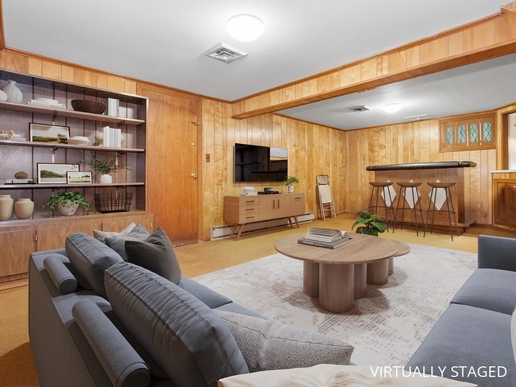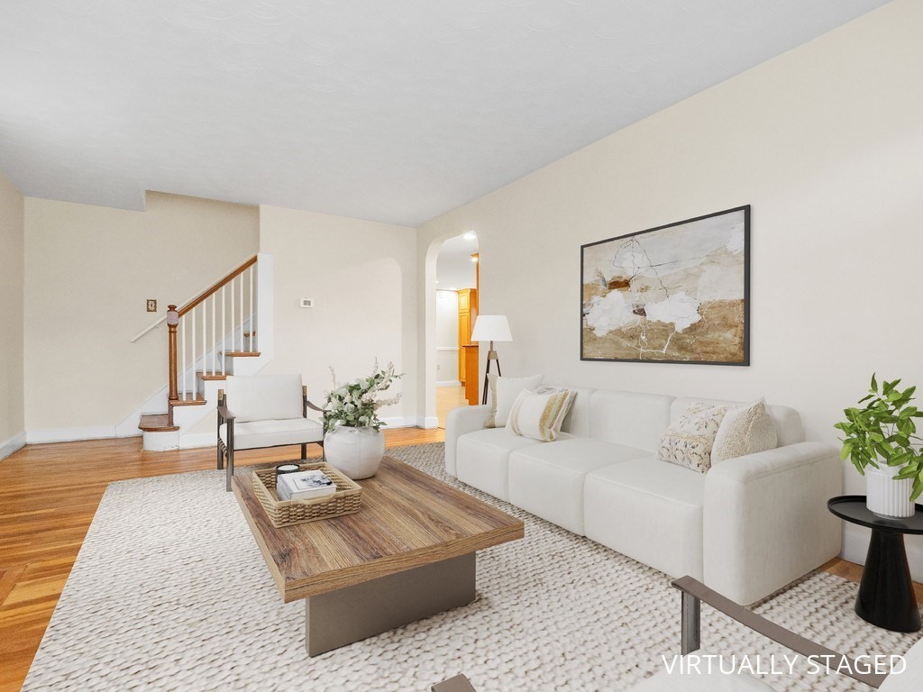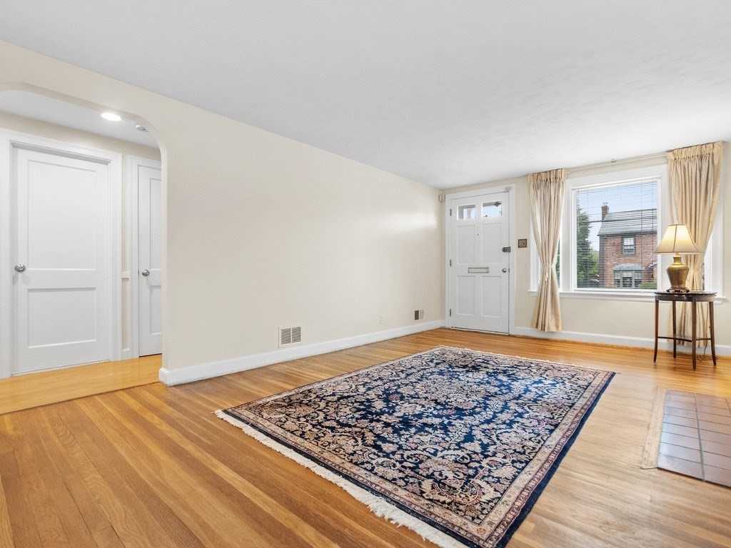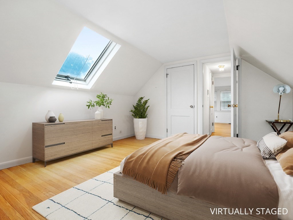 Sought-after West Side Watertown! This charming renovated Cape/Bungalow offers a perfect blend of character and modern updates. The bright fireplaced living room welcomes you with warmth and gleaming hardwood floors. Enjoy a newer cherry kitchen with granite countertops, stainless steel appliances, and recessed lighting, along with sliders leading to a sunny rear den with a bay window—ideal for relaxing or entertaining. The newer designer tile bath adds a touch of elegance, while the skylit primary bedroom with a walk-in closet provides a comfortable retreat. The finished basement features a spacious family room with a wet bar and tiled half bath, great for gatherings or guests. Additional highlights include a 2020 heating system, 2009 windows, and a private fenced rear yard for outdoor enjoyment. Conveniently located near Watertown Square, parks, shops, and public transportation, this home combines timeless charm with thoughtful updates.