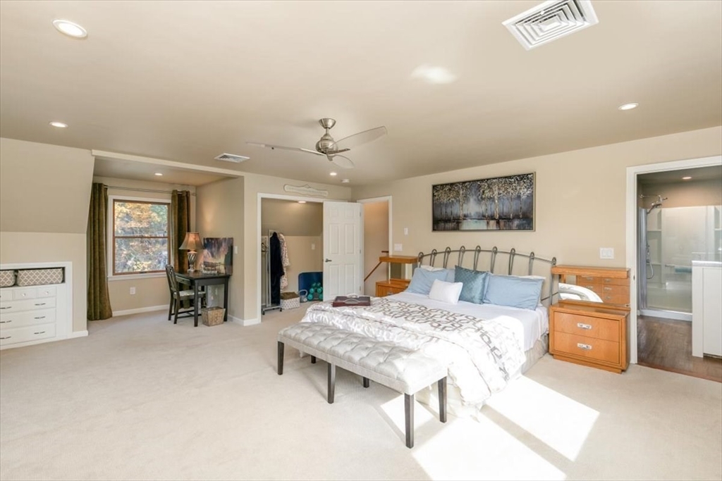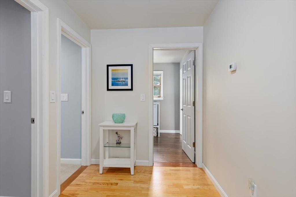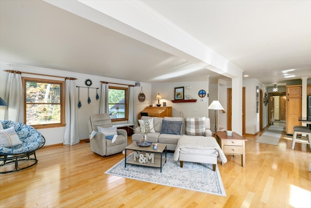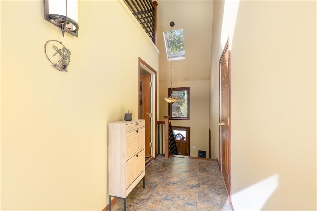 Welcome to 3 Useadoor Street, a haven of Comfort, Craftsmanship, and Charm. The open-concept main living area features a spacious kitchen, dining, and living room with a fireplace and direct access to the back deck—perfect for everyday living and entertaining. A first-floor bedroom and laundry add convenience. Upstairs, the expansive primary suite offers built-in cabinetry and a double-vanity bath, joined by a second bedroom and versatile office or dressing room. The partially finished lower level includes a living space with walk-out access to your backyard through the charming “Use-a-door” sunroom, a workshop, and oversized garage bay. Opportunity for expansion flows in unfinished areas of the lower level and above the garages. Your serene backyard space includes a patio, fish pond, and plenty of room for relaxation. Recent updates include: well water system (2025) and hot water system (2022)
