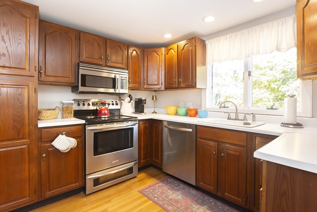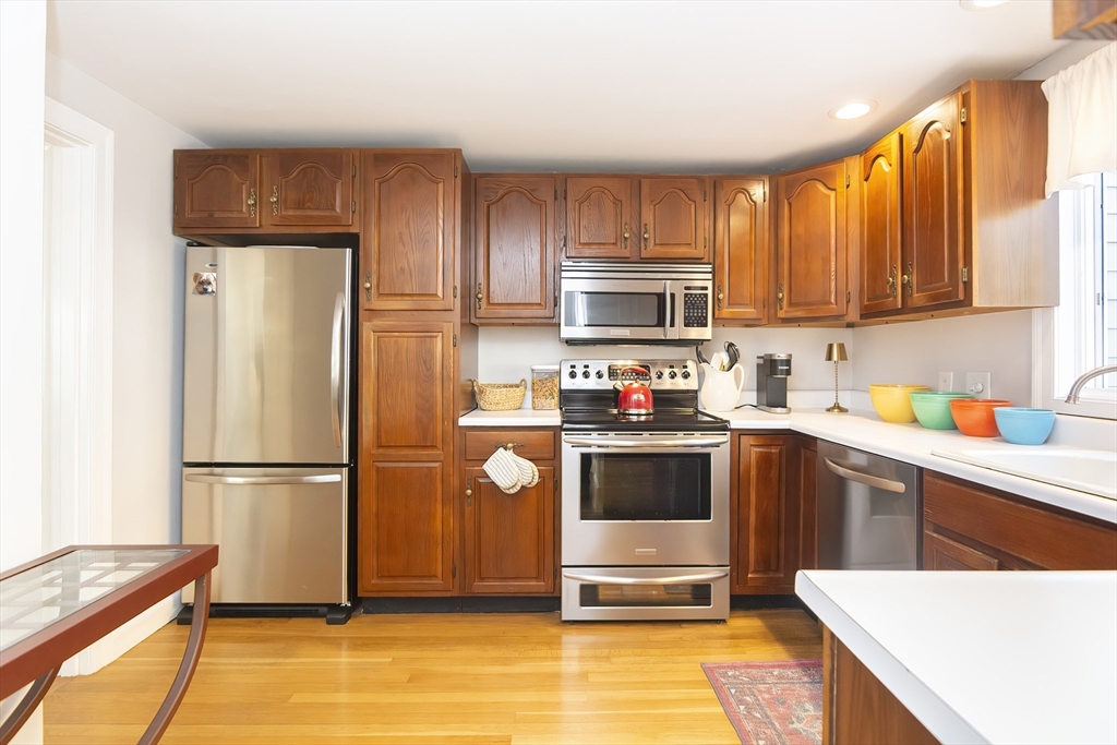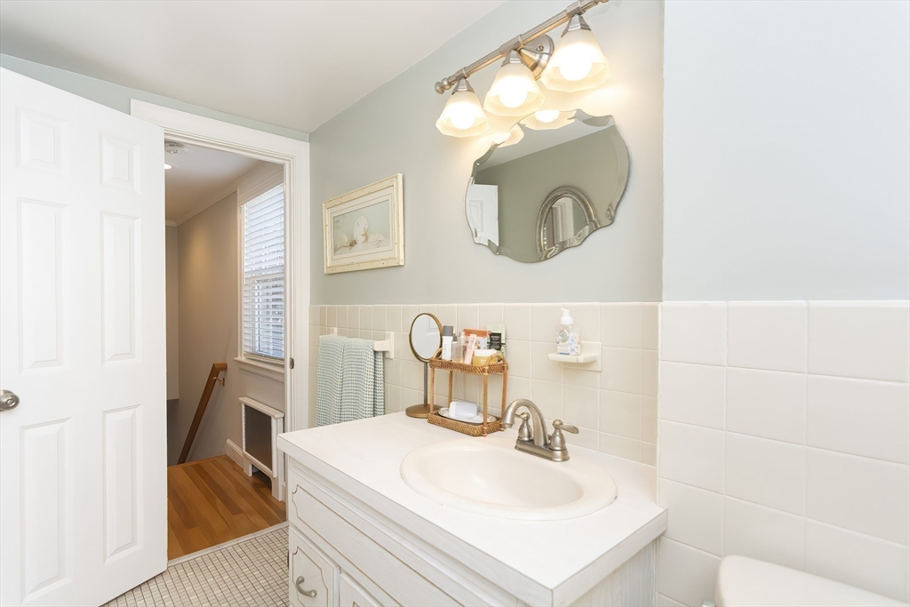 Welcome to this lovingly maintained and cared for Colonial in desirable West Medford neighborhood. As you enter you are greeted by a cozy fireplaced living room that flows into formal dining room with mini split unit, kitchen with stainless steel appliances, half bath and hardwood flooring throughout. Slider off dining room leads to expansive, freshly painted deck overlooking the generously sized fenced in backyard. 2nd level features 3 bedrooms and a full bath. Main bedrooms features 2 closets one of which is a walk in, mini split and hardwood floors. Downstairs you'll find a bonus room with vinyl flooring that can be flexibly used as a family room or playroom. Paver driveway allows for 2 car off street parking and attached garage for convenience. Close to Brooks Estate Reserve, shopping, public transportation and Mystic lakes. Heating system and oil tank (2013) vinyl siding, windows and roof (2008).