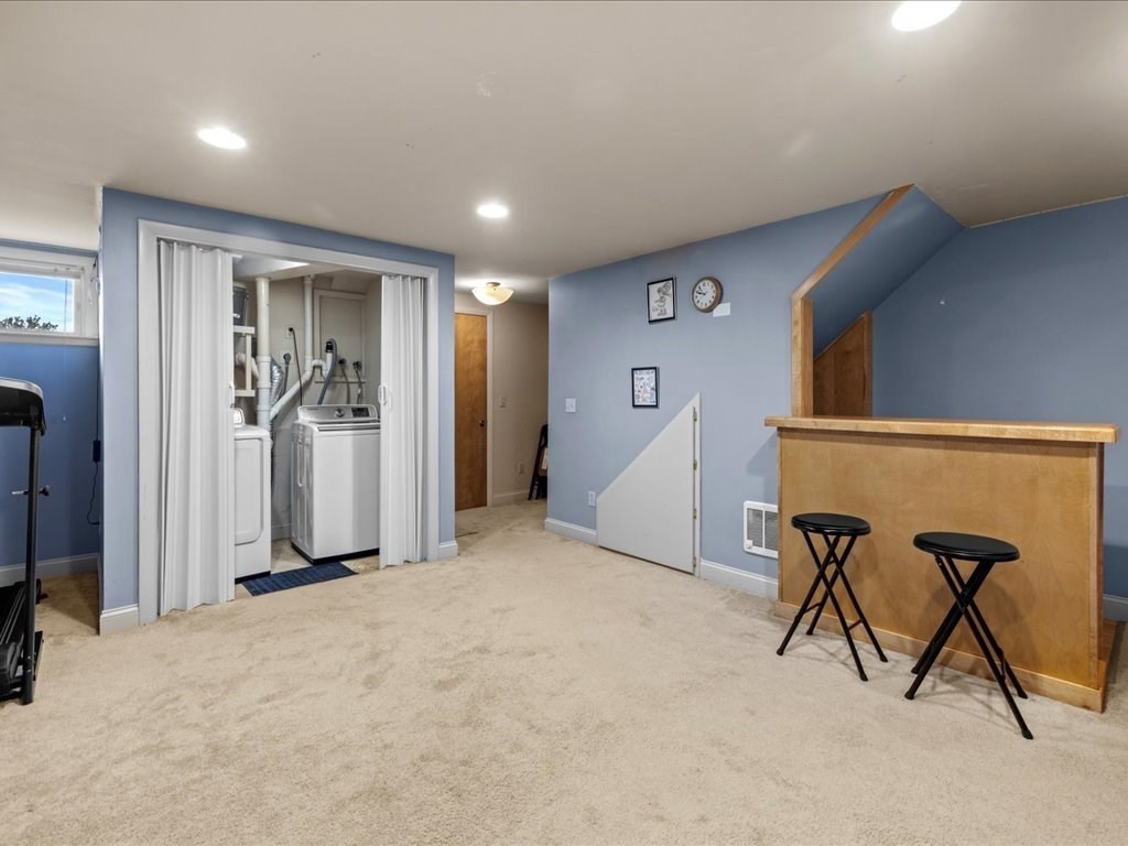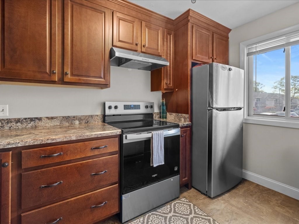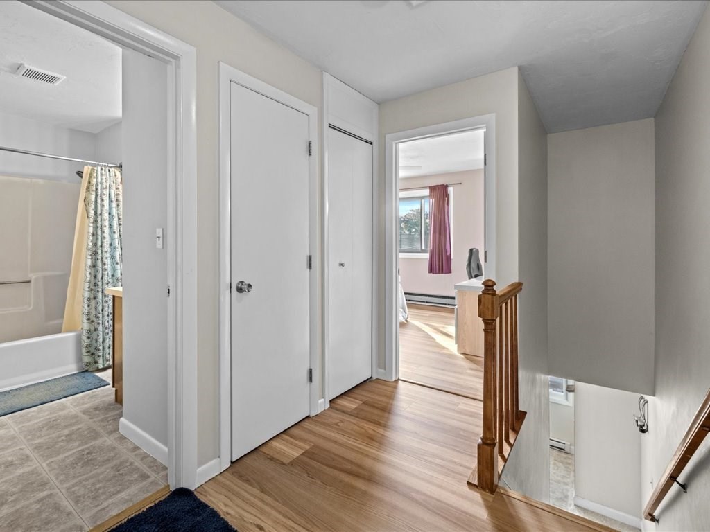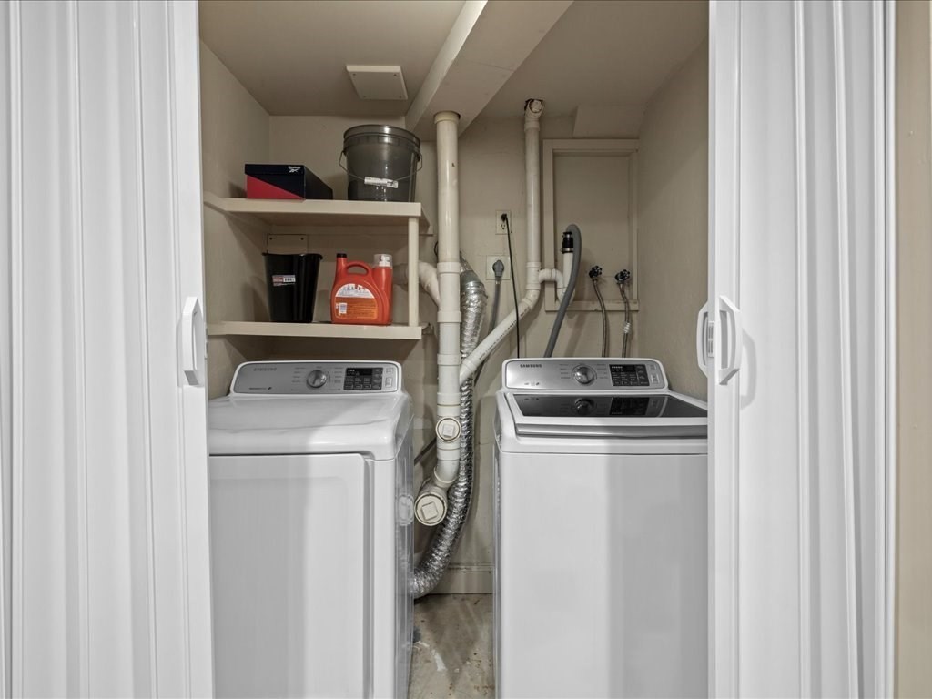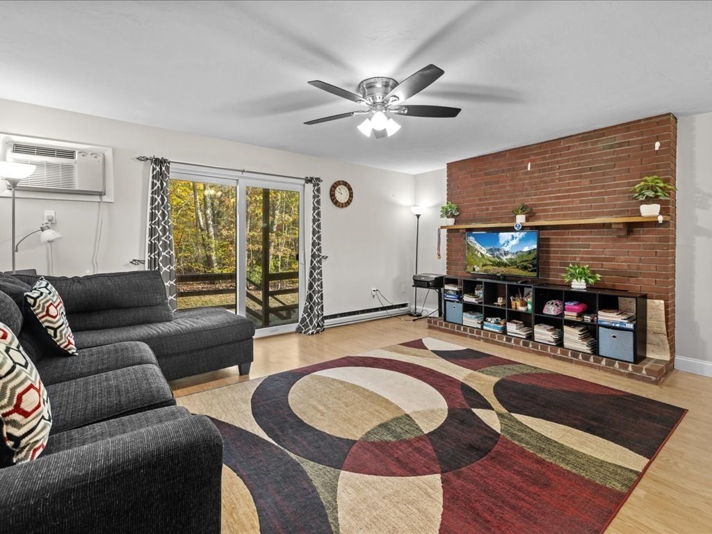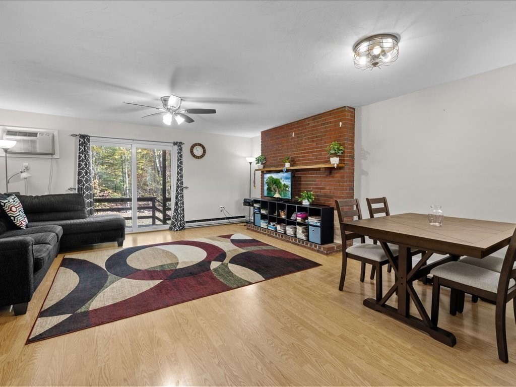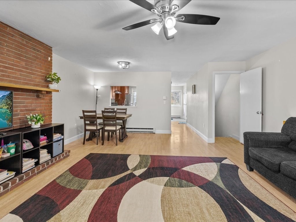 *SHOWINGS TO BEGIN AT OPEN HOUSE SAT 10/25 11AM-1PM.* Move right in to this beautifully maintained two-bedroom townhouse in the highly sought-after town of Franklin! Enjoy peaceful wooded views from your private deck and balcony, and a bright, open layout ideal for both relaxing and entertaining. One of the few units in the complex with a basement, offering extra finished space, storage, and in-unit laundry. The updated kitchen flows into a spacious living room with a fireplace, sliders to the back deck, and room for dining. Upstairs, the primary suite features double closets, direct access to a full bath, and its own balcony retreat. Updates include newer flooring, refrigerator, stove, water heater, and more. With two assigned parking spaces in front, ample visitor parking, and a prime location near shopping, dining, commuter rail, and major highways, this Franklin gem blends comfort, convenience, and charm!