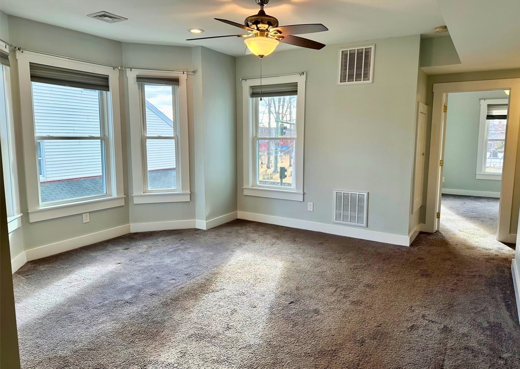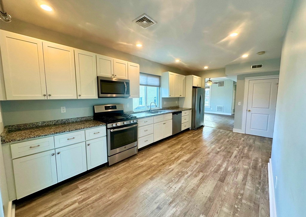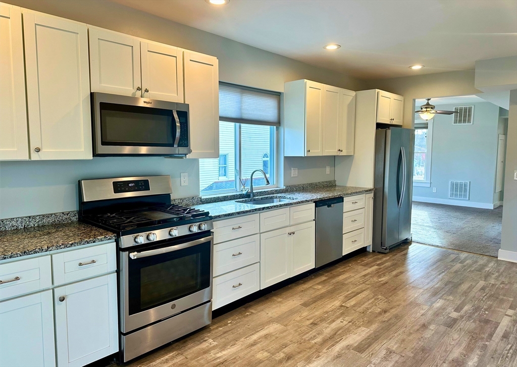 Step into this second-floor unit in a charming fully renovated 3-family home. This spacious 3-bedroom, 1.5-bathroom residence features a modern kitchen with granite countertops, stainless steel appliances, including a gas stove, refrigerator, dishwasher, and microwave. The primary bedroom includes a convenient half bath. Enjoy the outdoors on your deck, or take advantage of the large, shared yard. Energy efficient gas heat, hot water and central air and extra storage in basement. The property offers ample parking and is located just minutes from downtown Amesbury’s vibrant shops and restaurants, with easy access to both Route 95 and 495 for commuters. A perfect blend of modern updates and convenient living awaits!