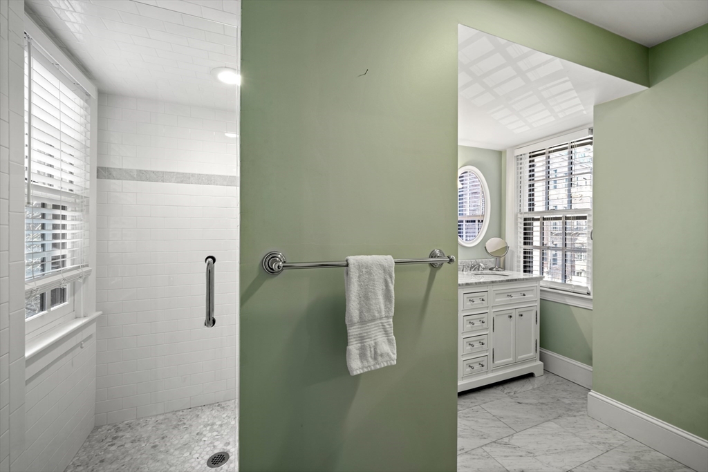 Experience the elegance of this 3-bed plus den, 2.5-bath home with a coveted full parking space. Nestled on Mount Vernon Square in the Flat of Beacon Hill, this duplex residence offers park views and lives like a home. The 30' wide parlor level features a welcoming foyer, expansive living and dining area, and custom-designed kitchen with a double oven, stainless steel range, pot filler, bespoke hood, wine cooler, microwave drawer, and ample storage. 1st floor includes a study area and a half bath. Upstairs, the renovated master suite offers a sitting area, completely renovated marble bathroom with glass-enclosed shower, dual vanities, water closet, walk-in closet, and private deck. The two additional bedrooms have serene square views. Bedroom level includes a laundry room and full bathroom with tiled shower. Parking for one car is located at the front door. Other features include 4 fireplaces, C/A, & excellent storage. Available for furnished short term rental, inquire for details.