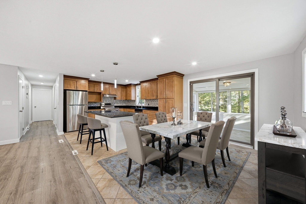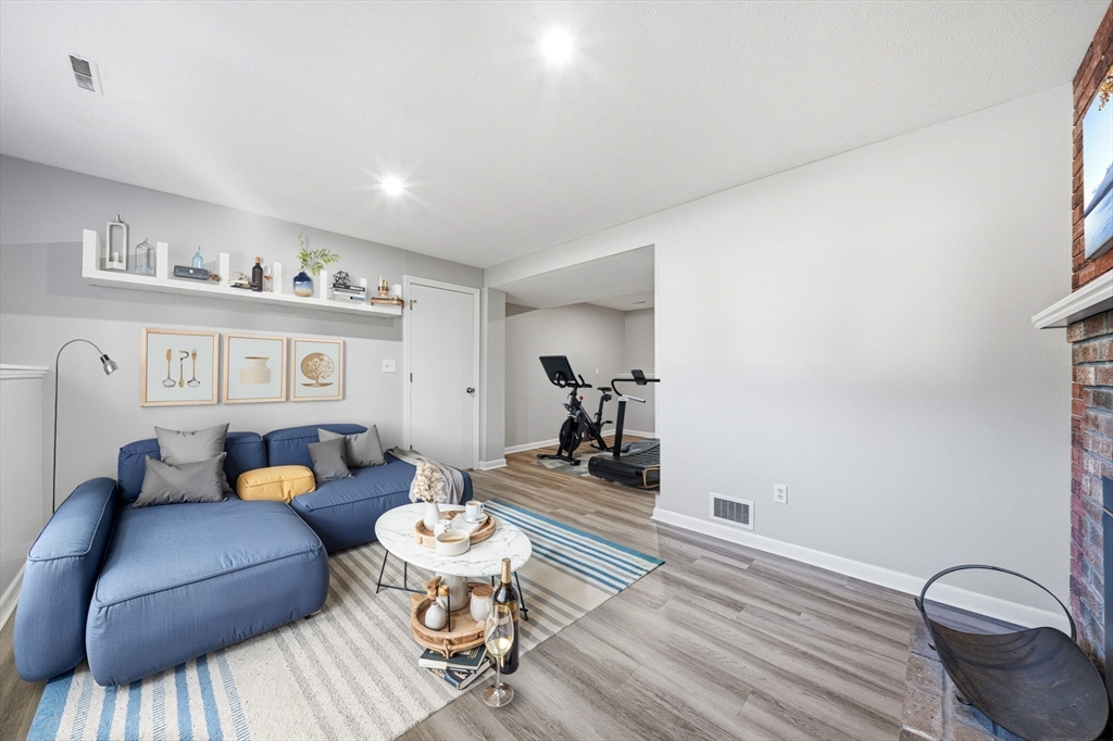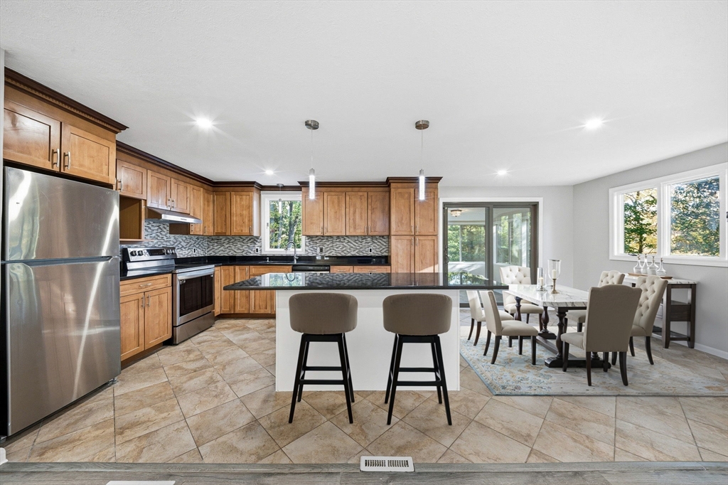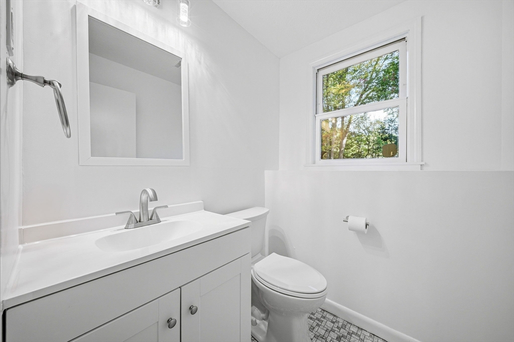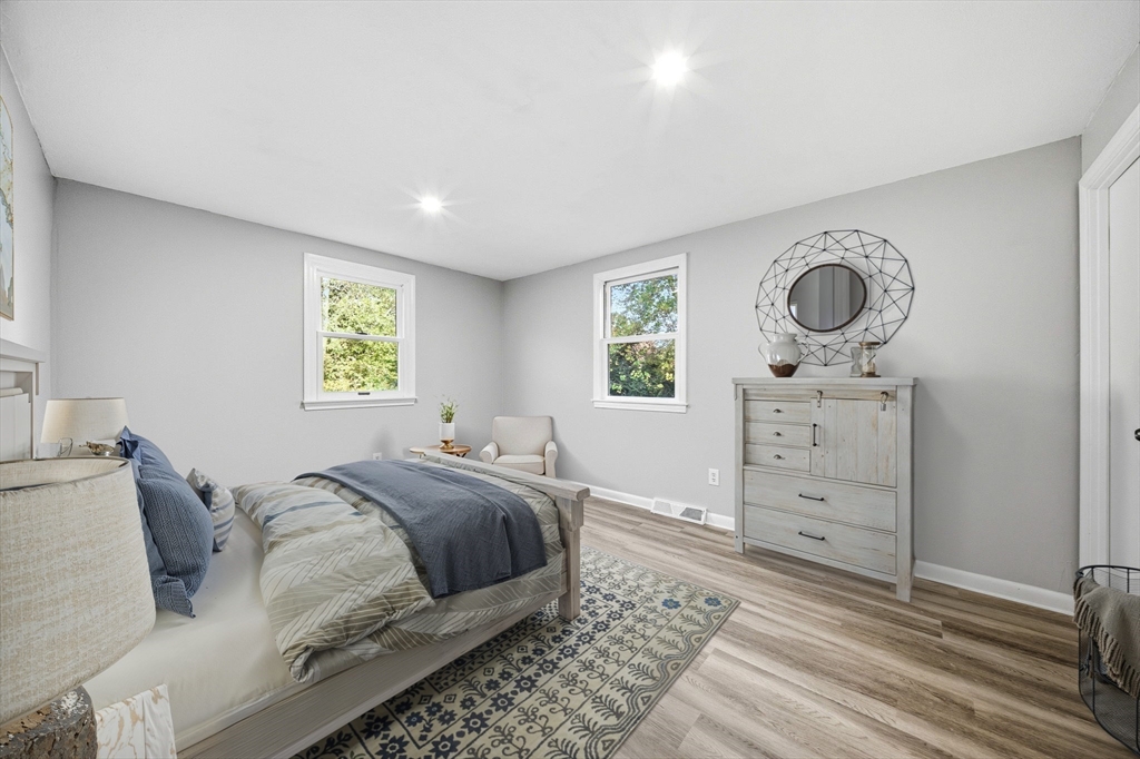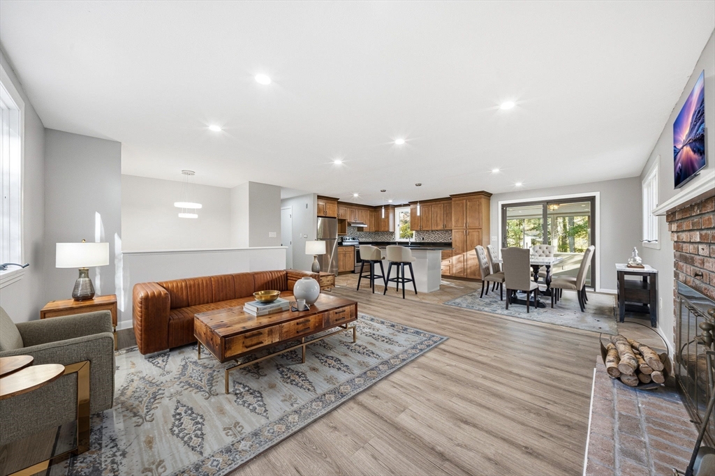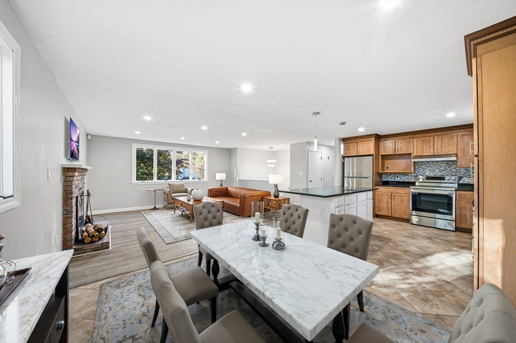 Gorgeous newly-renovated single family sitting on a near one-acre flat lot at a quiet cul-de-sac neighborhood. This raised ranch home offers 3 beds, 1.5 baths (new tiolets/vanities), brand new vinyl flooring, recessed lightings, 2 fireplaces, finished lower level, 1 car garage and 5 off-street parking! It has an open concept layout perfect for entertainment where the kitchen is tastefully designed w/ brand new stainless steel appliances, backsplash, kitchen island (seats 3), dining area, and double doors leading to the 3-season enclosed porch and direct access to the backyard. Upper floor also includes 3 good size bedrooms, 1 full bath w/ tub and new glass shower doors which can also be turned into an en-suite bath from the primary bedroom. Garage has direct access to the lower finished level where there is additional cozy living space plus another office, in addition to another half bath, laundry room and utility area. Conveniently short drive to RT-24 and 10 minutes to I-93/I-495.