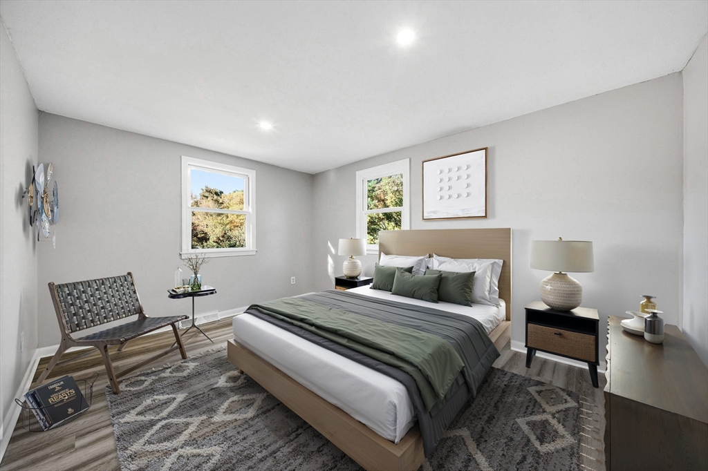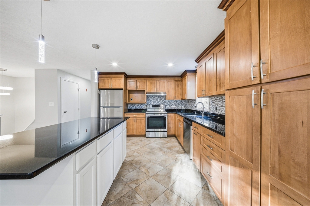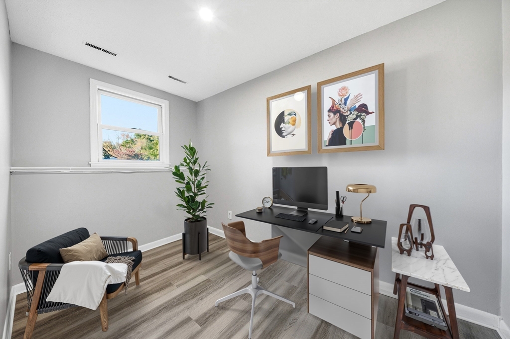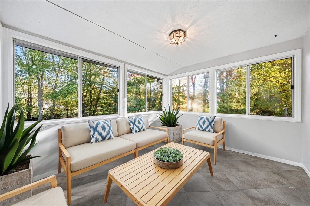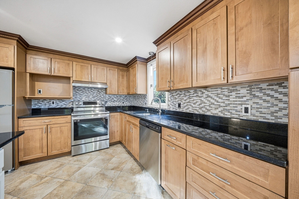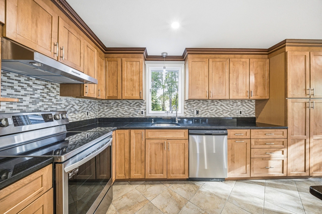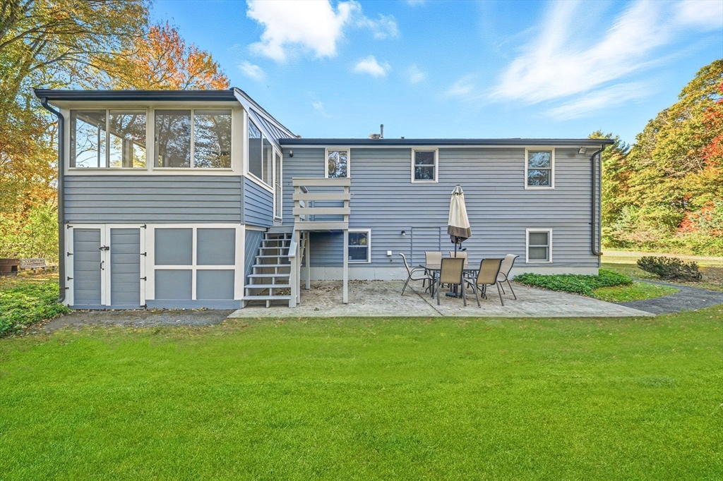 Gorgeous newly-renovated single family sitting on a near one-acre flat lot at a quiet cul-de-sac neighborhood. This raised ranch home offers 3 beds, 1.5 baths (new tiolets/vanities), brand new vinyl flooring, recessed lightings, 2 fireplaces, finished lower level, 1 car garage and 5 off-street parking! It has an open concept layout perfect for entertainment where the kitchen is tastefully designed w/ brand new stainless steel appliances, backsplash, kitchen island (seats 3), dining area, and double doors leading to the 3-season enclosed porch and direct access to the backyard. Upper floor also includes 3 good size bedrooms, 1 full bath w/ tub and new glass shower doors which can also be turned into an en-suite bath from the primary bedroom. Garage has direct access to the lower finished level where there is additional cozy living space plus another office, in addition to another half bath, laundry room and utility area. Conveniently short drive to RT-24 and 10 minutes to I-93/I-495.