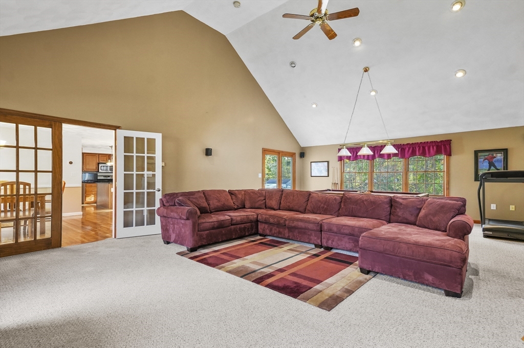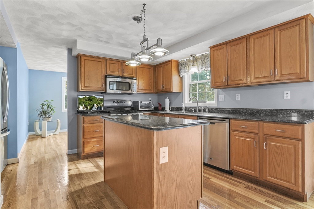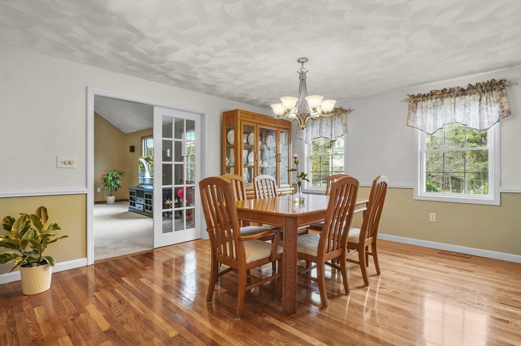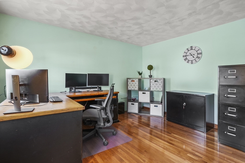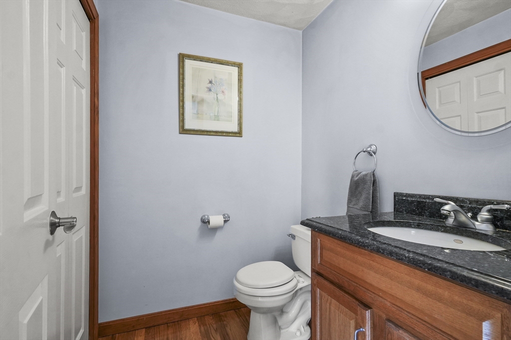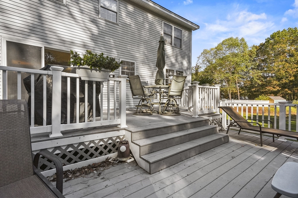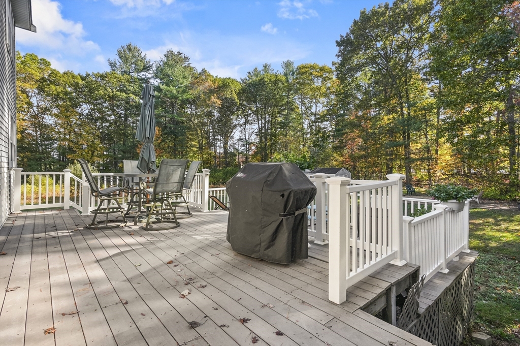 This beautiful 3/4 bedroom, 2.5-bath Colonial is waiting for YOU! Upon entering you're greeted with gleaming hardwood floors that create a warm & inviting atmosphere. The spacious kitchen features upgraded granite countertops, SS appliances, & a casual dining area w/sliders to deck. French doors from the formal dinrm open to a sun-drenched great room w/soaring vaulted ceilings, a cozy gas fireplace, surround sound speakers, pool table & direct access to the multi-level deck and huge backyard—ideal for entertaining. The 1st floor also includes a bright office or den, a convenient half bath w/laundry plus a 1st floor bedroom or office, your choice! Upstairs, the primary suite is a peaceful retreat w/walk-in closet & private ensuite bath. Two additional generously sized bedrooms share a full bath. Additional highlights include a walk-up 3rd floor for potential expansion, 2-car garage & a desirable location all on a tranquil dead-end street. Enjoy close proximity to local amenities & more!
