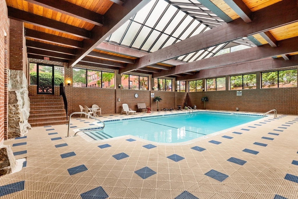 Exciting opportunity at the highly coveted Old Medford High Condominiums! Boasting over 800 square feet of open-concept living, this charming home features soaring ceilings and oversized windows that fill the space with natural light and character. Recent updates during current ownership include high-efficiency windows (2016), a fully renovated kitchen with granite countertops, stainless steel appliances, and abundant cabinet storage (2018), as well as replacement hot water tank (2022) and HVAC system (2023). Additional perks include GARAGE parking, extra storage, and access to exceptional building amenities, such as an indoor swimming pool, sauna, tennis courts, and a communal patio with BBQs. Ideally located just steps from vibrant Medford Square with direct access to Route 93, this home offers both comfort and convenience in a truly unique setting.