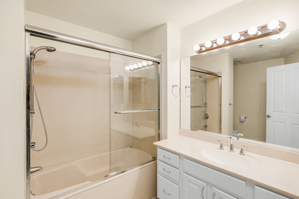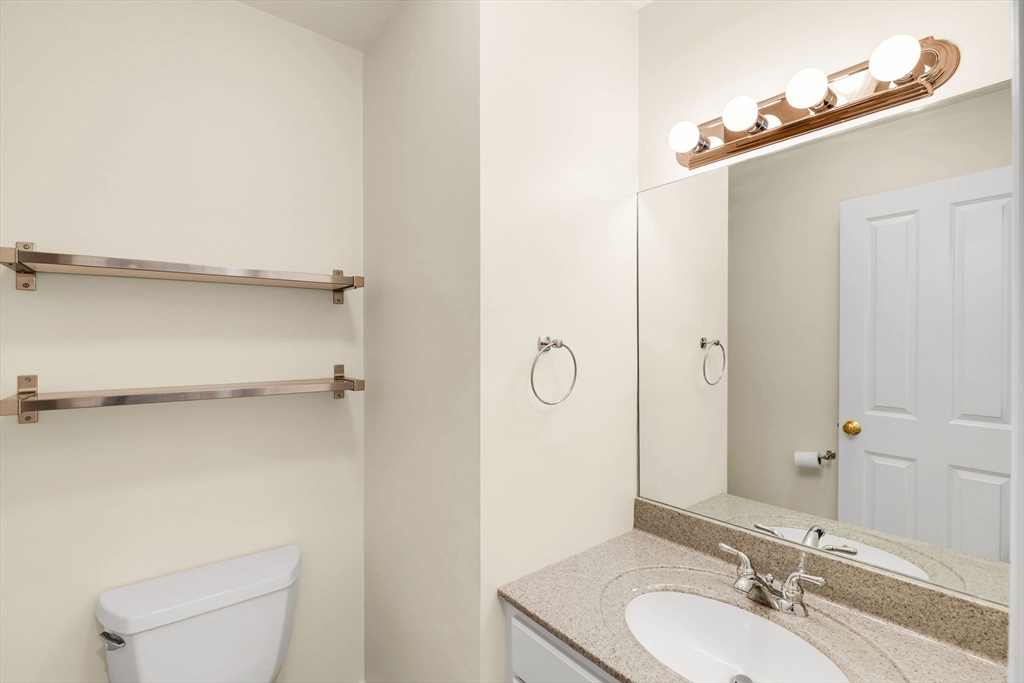 Offering an exceptional living experience within an attractive property. Flexibility is at the heart of this condominium. First floor family room can be used as an in law or teen suite. Open concept living room, dining room & kitchen highlighted by a breakfast bar & fireplace, invites relaxation & creates a warm & inviting atmosphere. The kitchen is equipped with solid countertops, stainless appliances & a wall range hood, which will be sure to impress. The kitchen peninsula & kitchen bar offer additional seating & prep space. There are two bedroom & an additional room. One full bathroom, along w/ two half bathrooms, garage, patio, deck and onsite laundry. Natural gas heat & central air all in a gorgeous setting all on well over 2000 sq. ft of living space. Walk to downtown & common while less than 2 miles to the commuter rail stop. Showings begin at Open House on Friday, Oct. 24th from 4:30-6:00pm. Private showings on Saturday & Open House on Sun Oct. 26th 11-12:30pm. Come See!