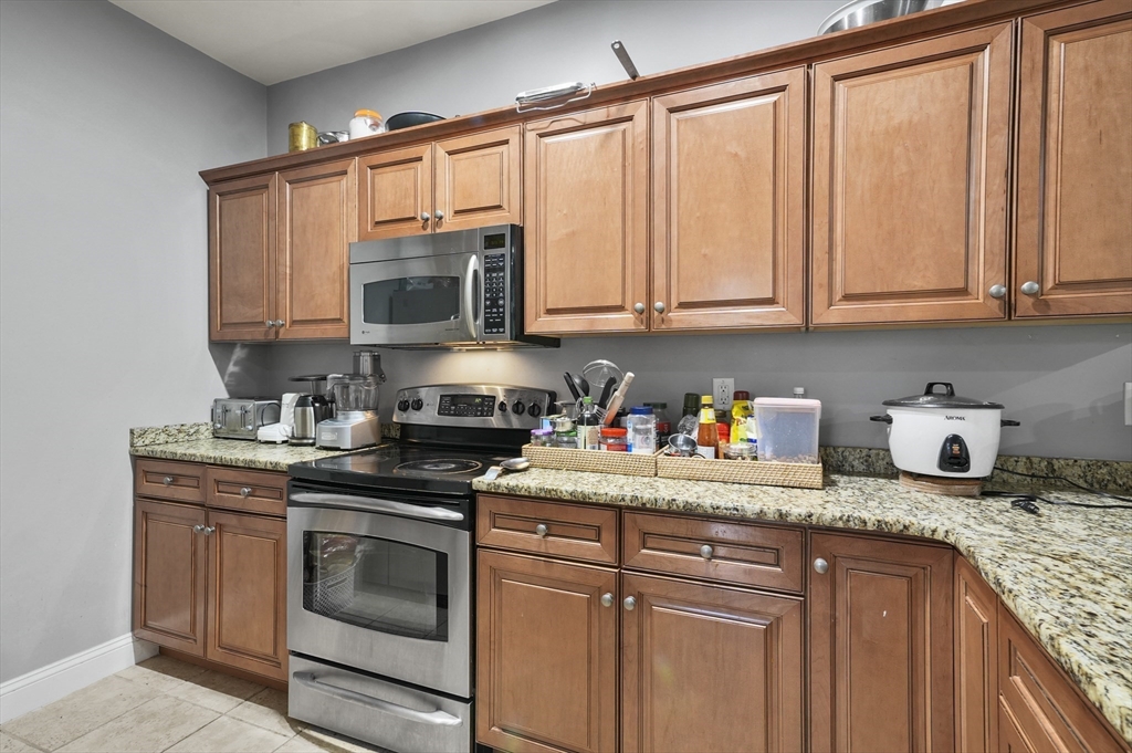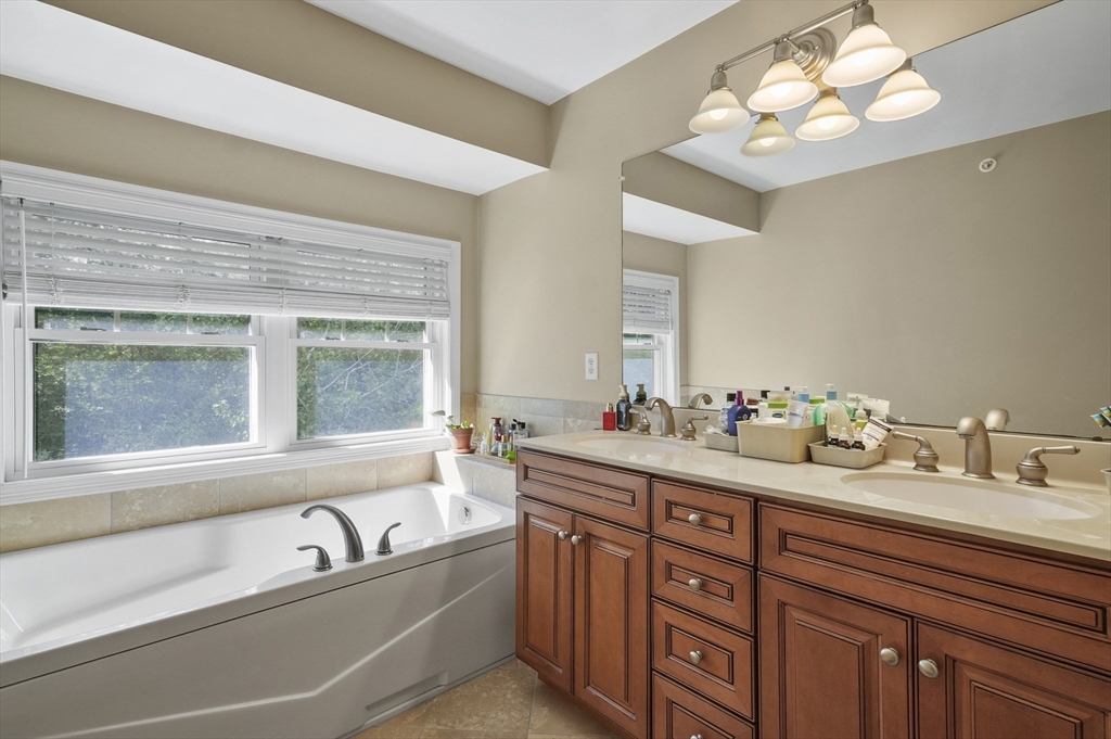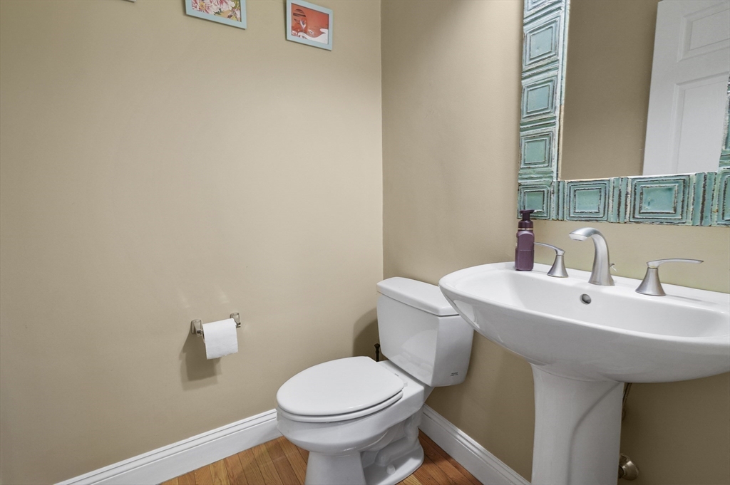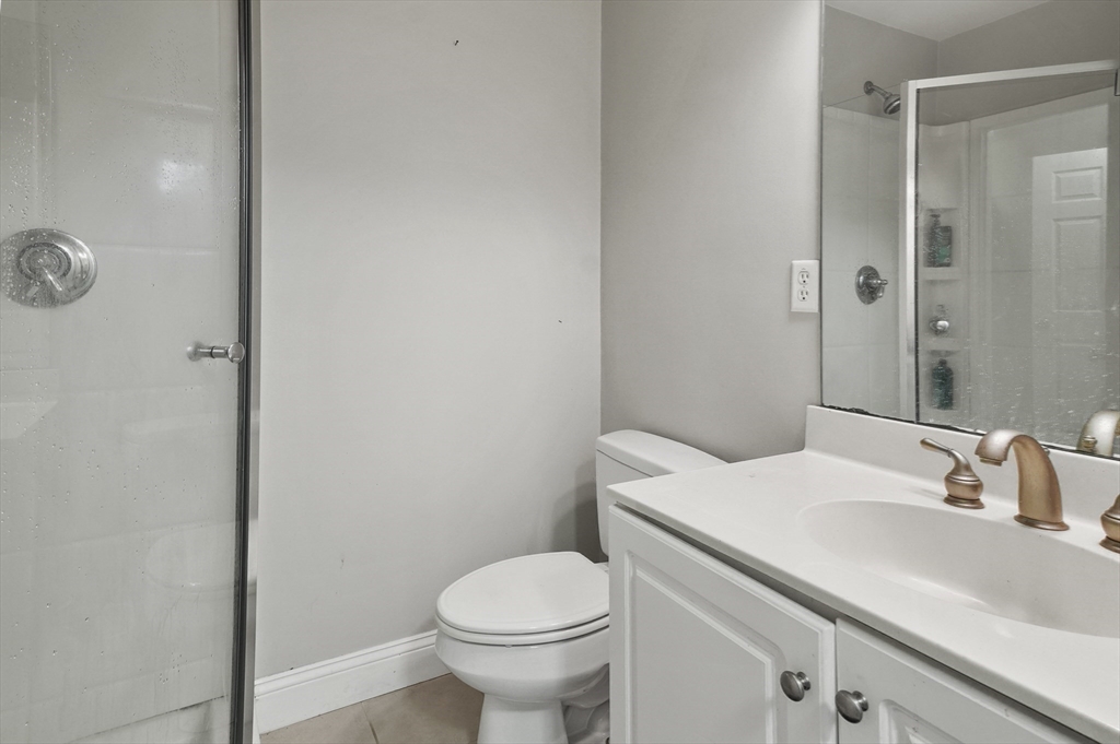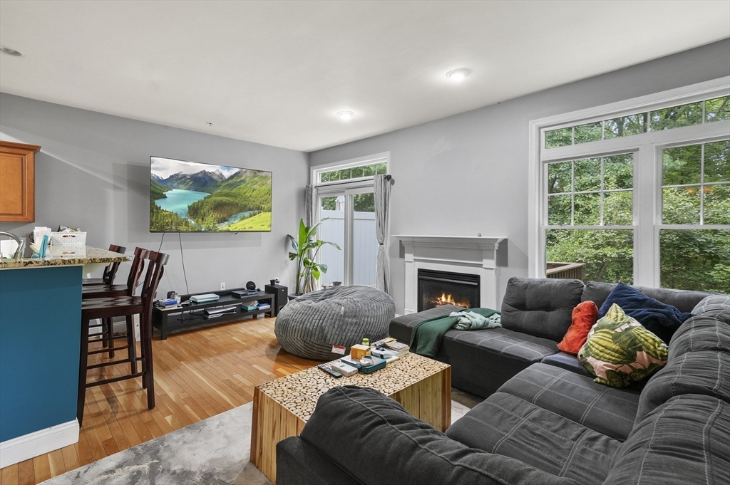 This Forest Hills end unit boasts unparalleled privacy with an exclusive-use yard, deck, and patio. The sunny, open floor plan is perfect for entertaining, featuring hardwood floors, an open-concept living area, and a cozy gas fireplace. Updated kitchen features a breakfast bar, stainless steel appliances, granite countertops, and access to formal dining room. Office/sitting room is conveniently tucked away on the first floor. The primary bedroom suite includes two spacious closets, an ensuite bathroom with a dual vanity, a soaking tub, and a separate shower! Washer and dryer INCLUDED, on the second floor. Hot Water Tank replaced in 2022 and AC in 2023. The private, finished walkout lower level adds even more living space, with two bonus rooms and a full bathroom, ideal for guests or additional living space. Conveniently located just minutes from the MASS PIKE and T STATION, this home combines comfort, style, and accessibility in one unbeatable package!